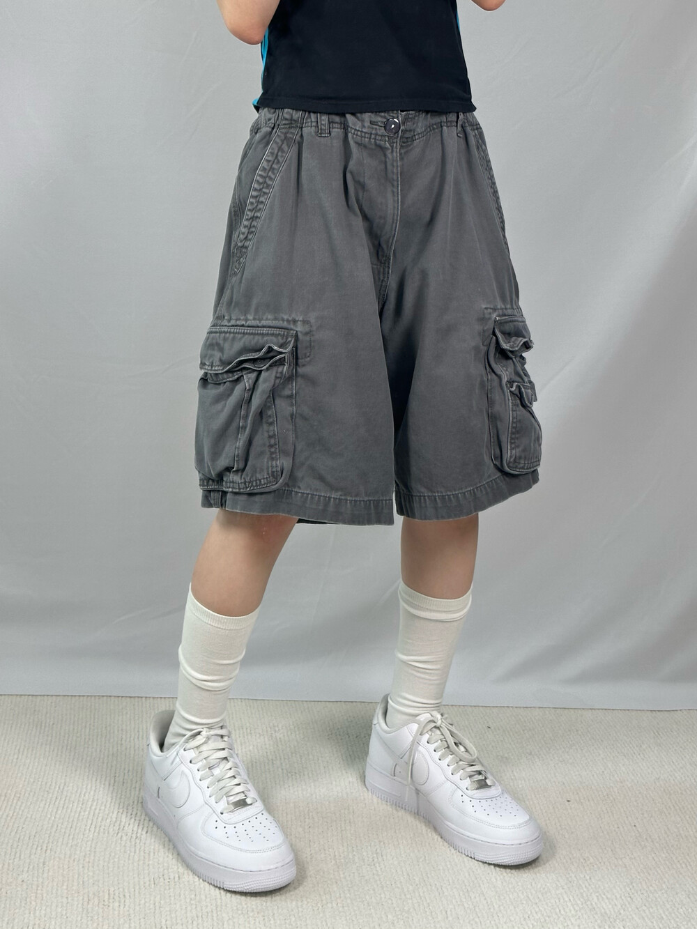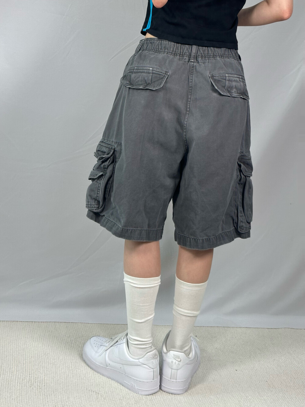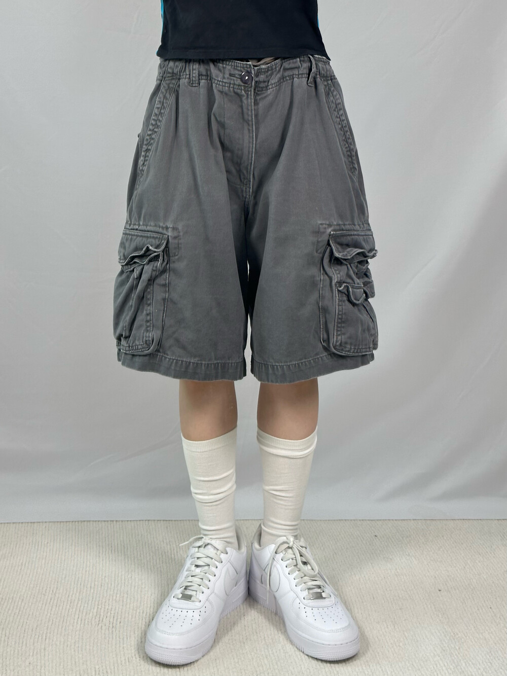 •그레이 컬러의 루즈핏 반바지 카고에요! 무릎을 덮는 낭낭한 기장에 포켓 디자인도 빈티지스러워서 더욱 멋스러운 제픔이라 추천드리고파요🤍