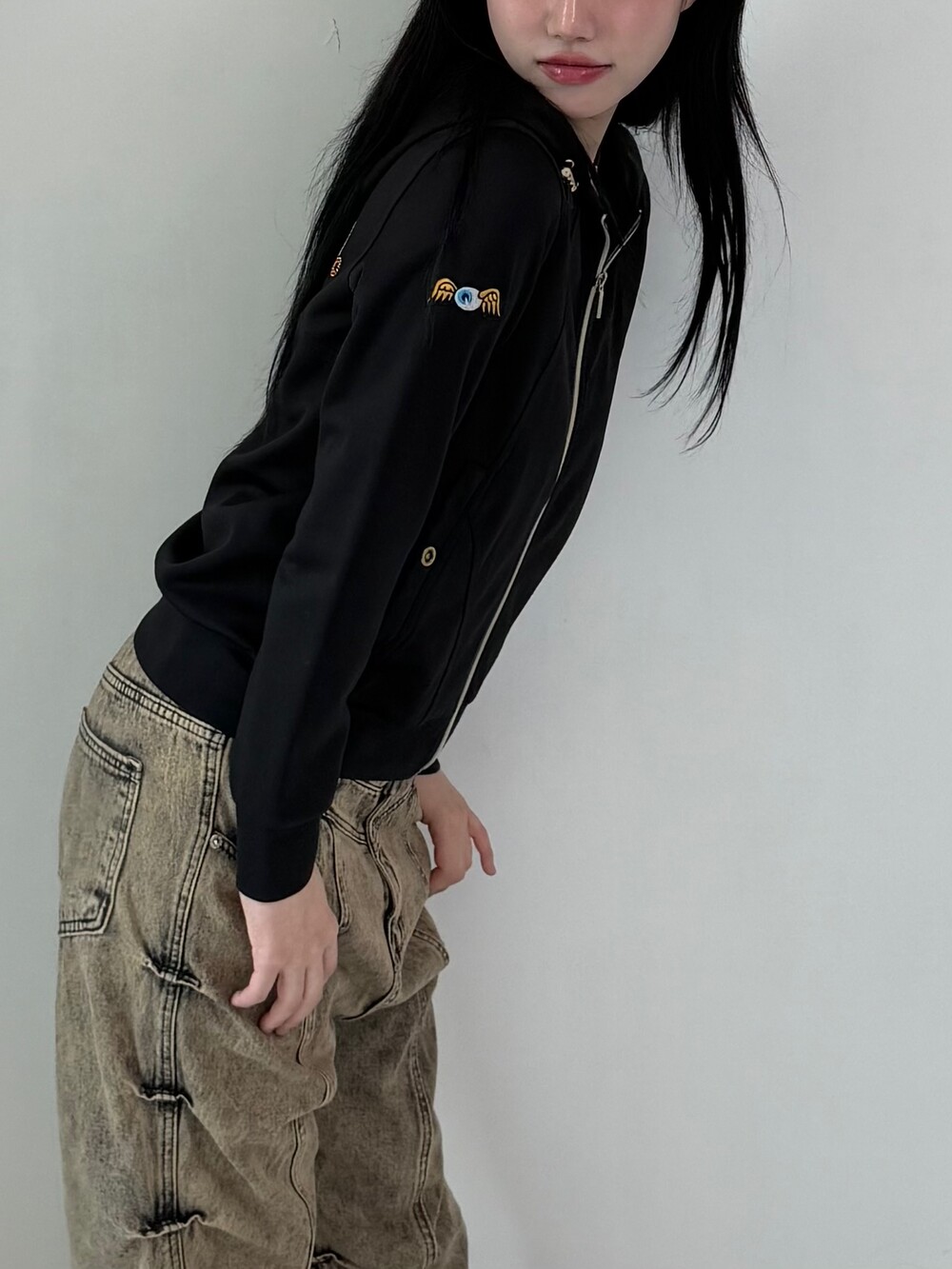 •본더치 후드 져지에요! 골반에 걸쳐지는 기장감에 정핏으로 떨어지는 아이템이라 완전 와이투케이깔 낭낭 합니다..🖤 이효리(님) 커몬 막이래