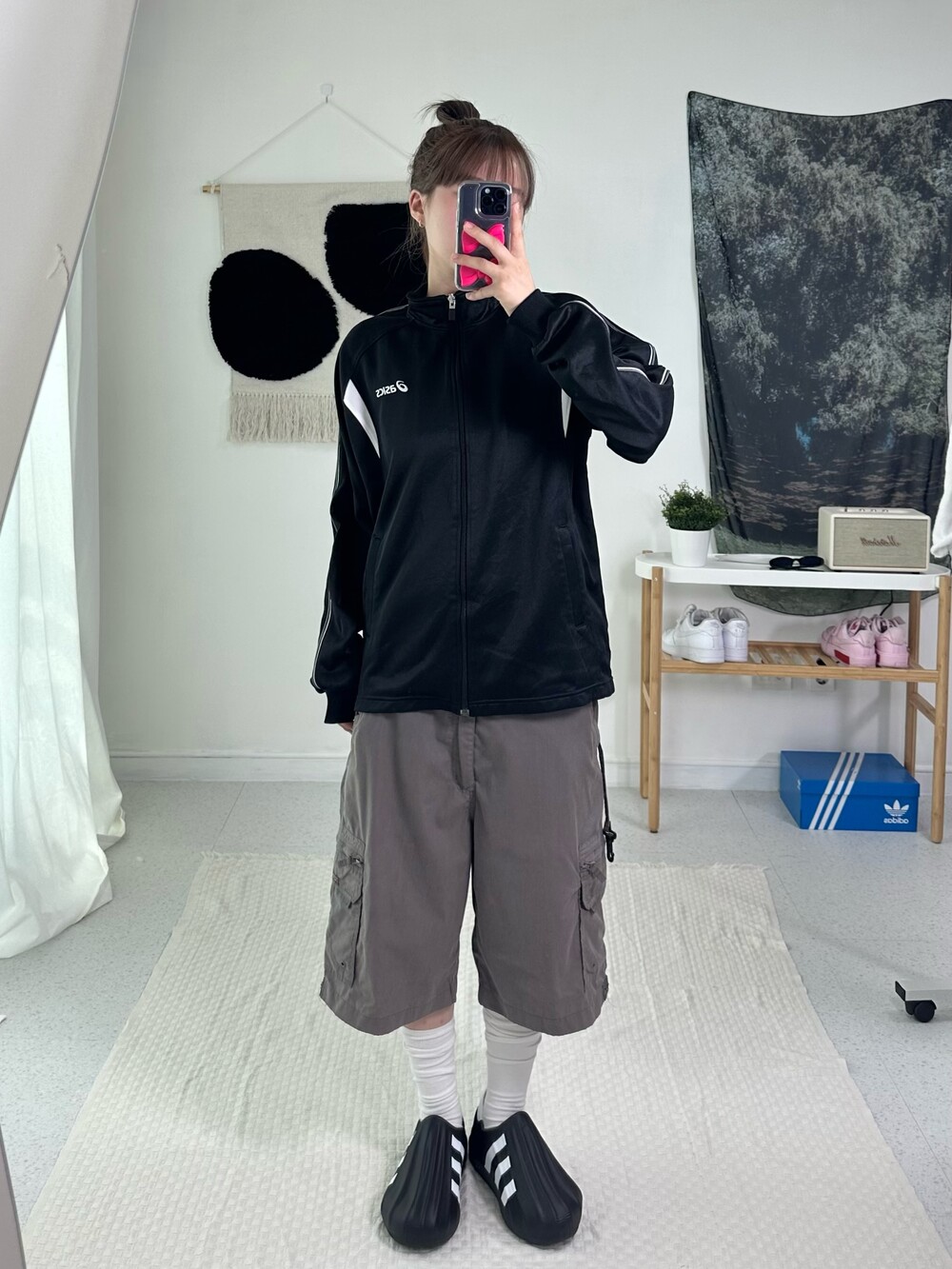 •핏 정말 예쁜 카고반바지에요! 착샷이랑 동일한 핏이라고 보시면 되구, 사이드 빅포켓 디자인과 깔꼼한 느낌이 같이 있어 더 마음에 들었던 팬츠에요🖤