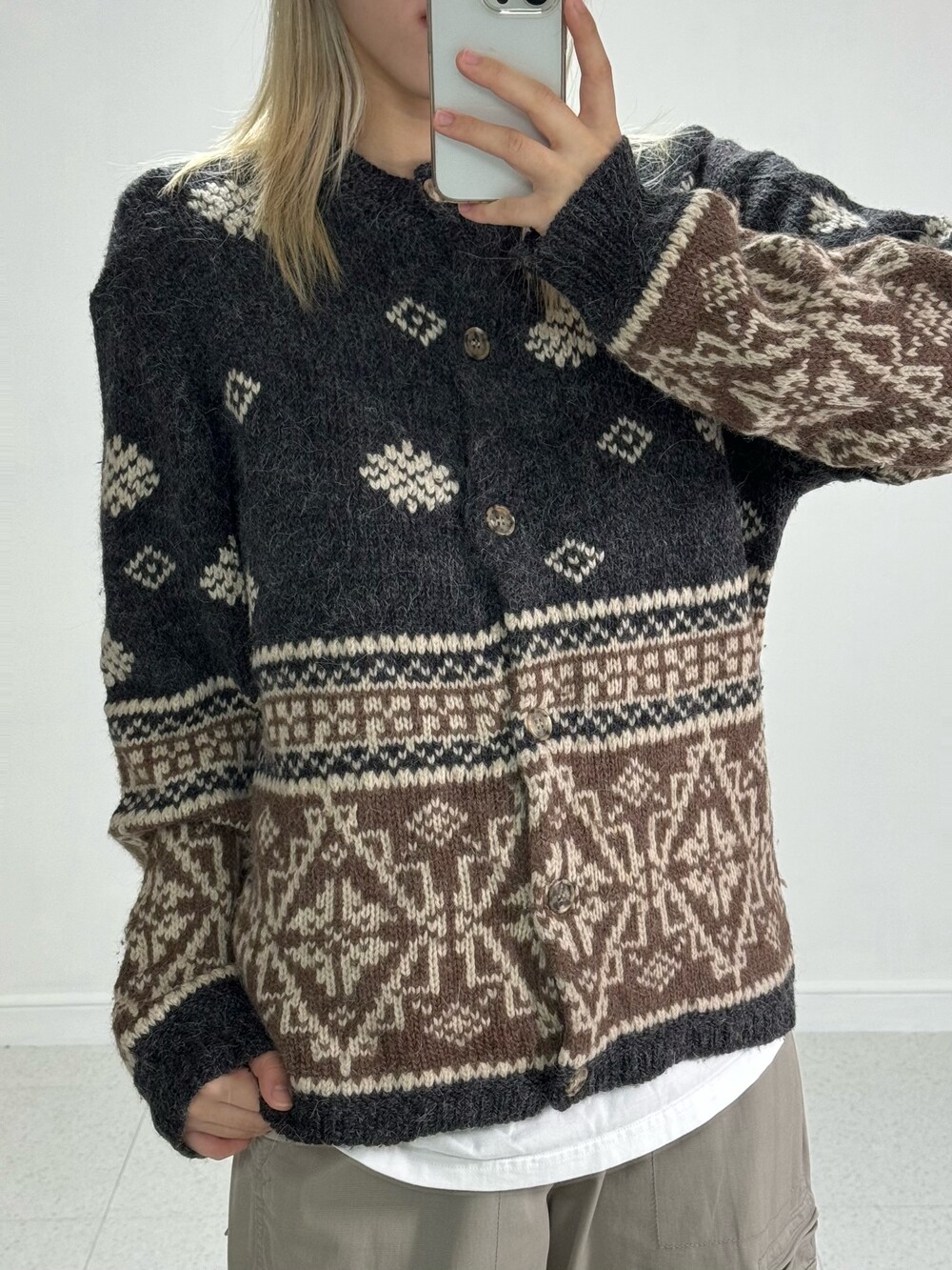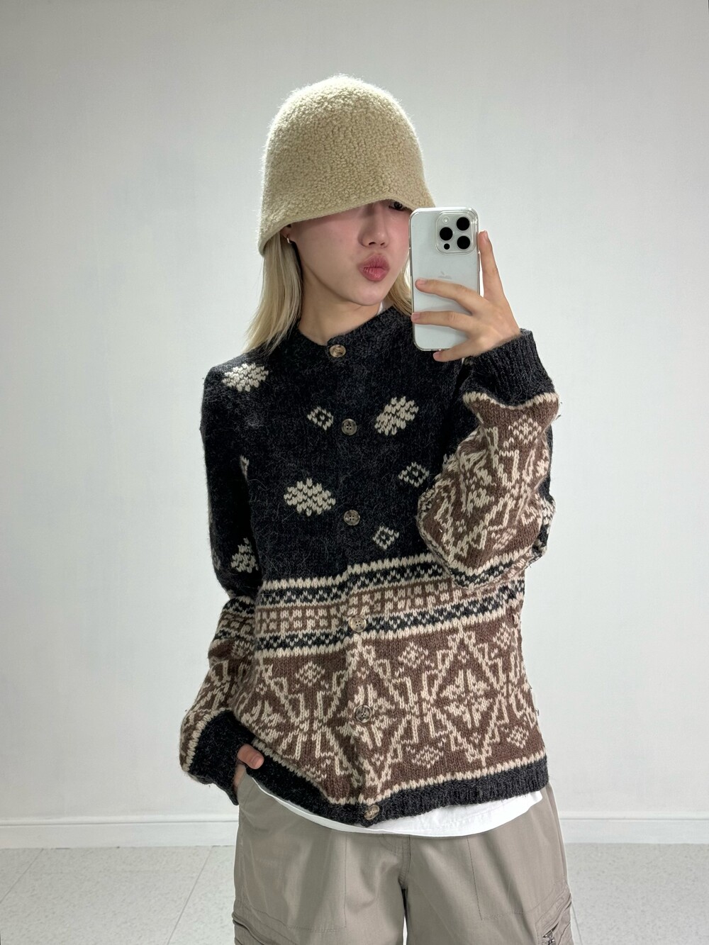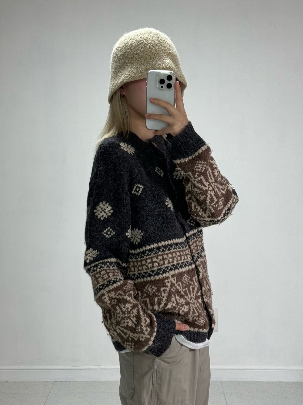 •노르딕 가디건이에요! 모리걸,빈티지한 무드가 낭낭한 제품이라 휘뚤마뚤 착용해주시기 좋아요ㅎㅎ 요론 귀여우면서 따뜻한 가디건은 겨울 필수템👍🏻