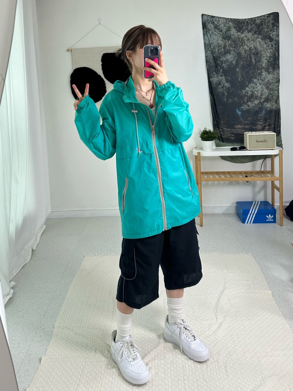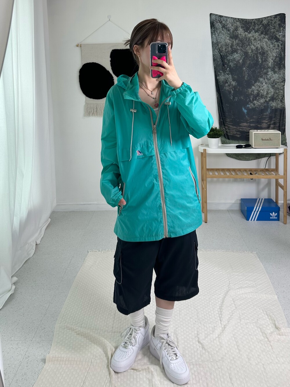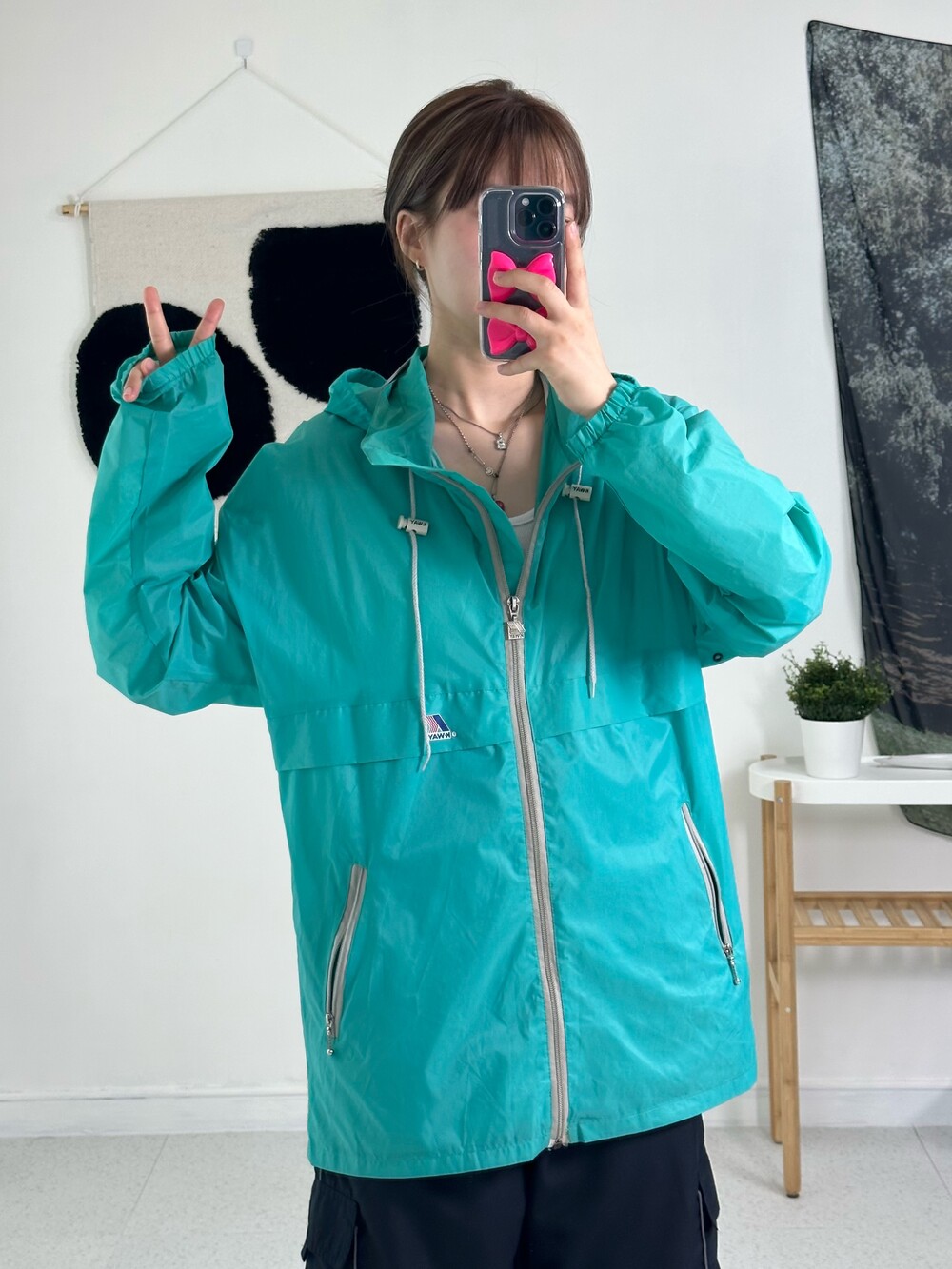 •유채색 러버들 모여! 민트 컬러의 사랑스러운 케이웨이 바람막이에요! 색감도 넘 예쁘지만 아방방 루즈핏의 완벽한 핏, 모자를 넣었다가 꺼낼 수 있는 다양한 연출, 더우면 벗고 민트색 힙색으로 만들어 들고다닐 수 있는 연출, 정말 사랑할 수 밖에 없는 제품이라는거,, 브랜드 자랑은 인스타에 잔뜩 적어두었구요? 70-80s바람막이를 구매해서 입는 저희는 시간과 추억을 사는 사람들이라는거..😏