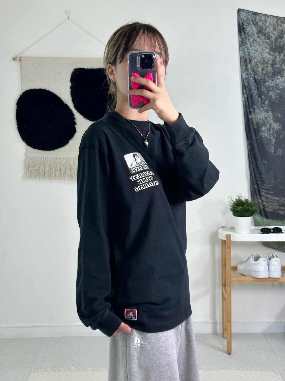 •앞뒤 프린팅이 너무 귀여운 벤데이비스 제품이에요! 전체적으로 몸에 예쁘게 떨어지는 핏이고 상태도 좋아서 더욱 추천드리고 싶어요ㅎㅎ무난해보여도 옷장에 두면 손이 자주가는 아이템중 하나 입니다?🖤