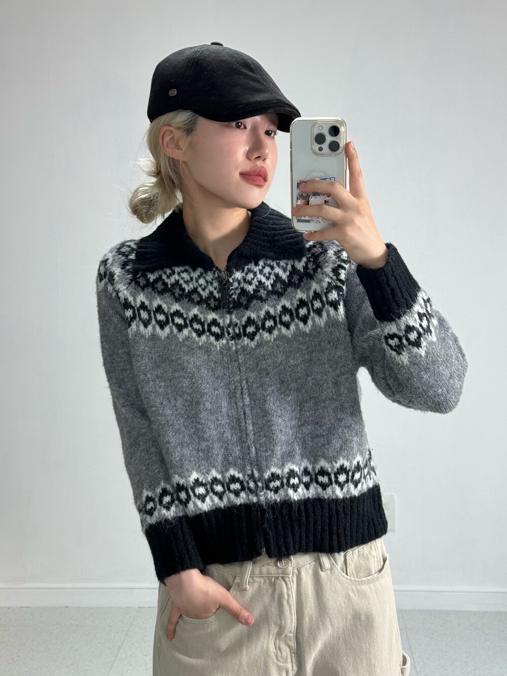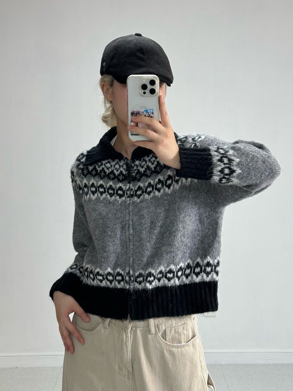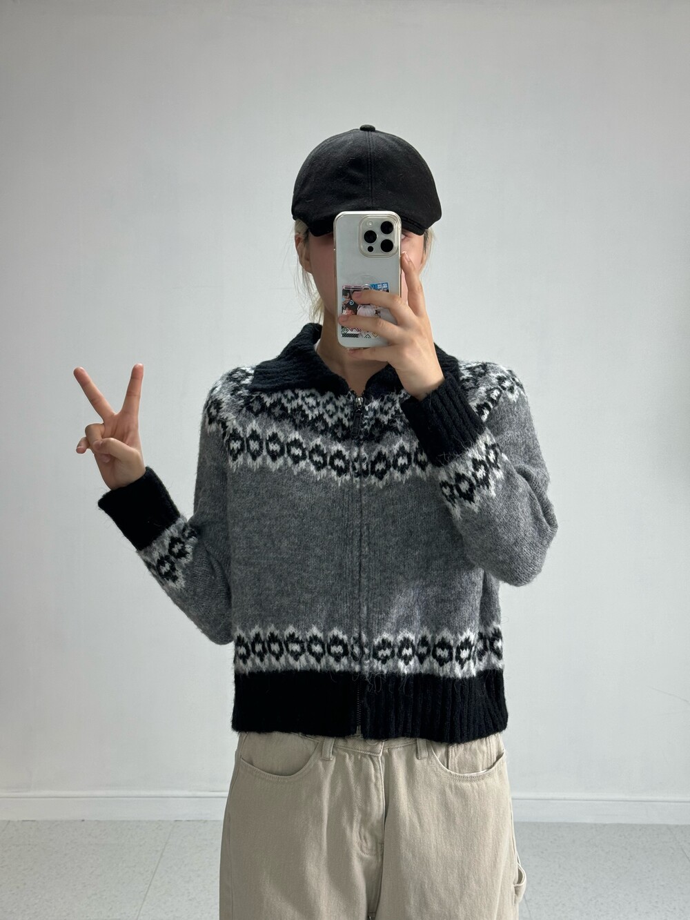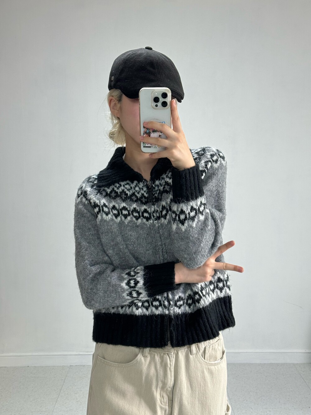 •살짝 크롭한 기장의 노르딕 집업이에요! 입자마자 부드러운 원단이 마음에 들었구요-