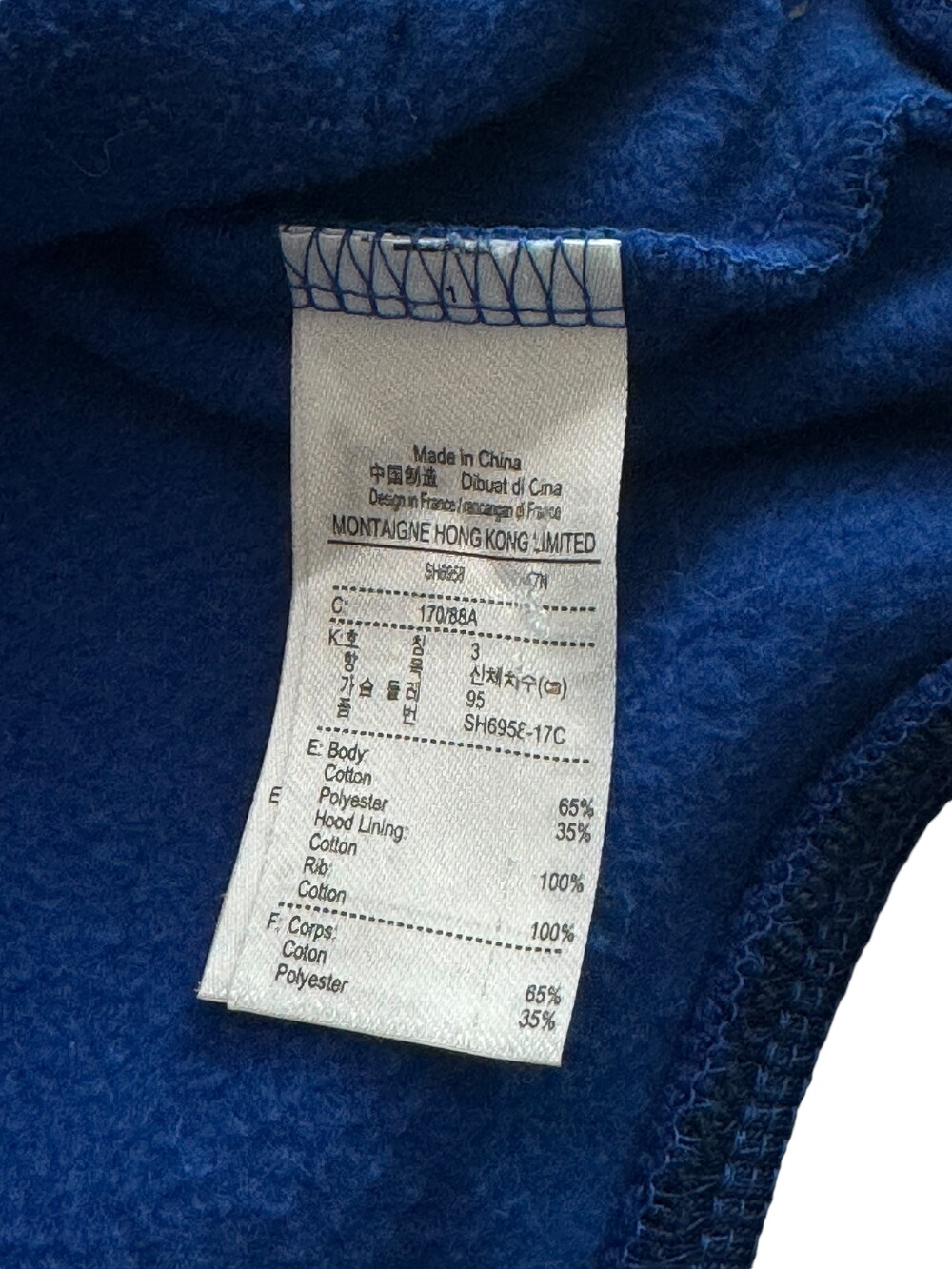 어깨/가슴단면/소매/총장