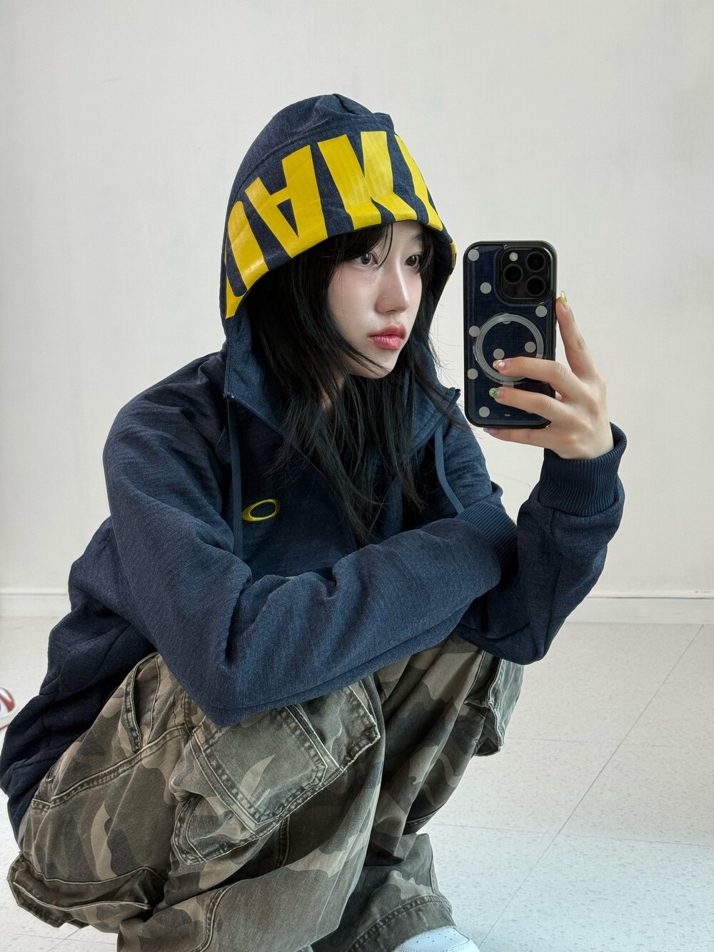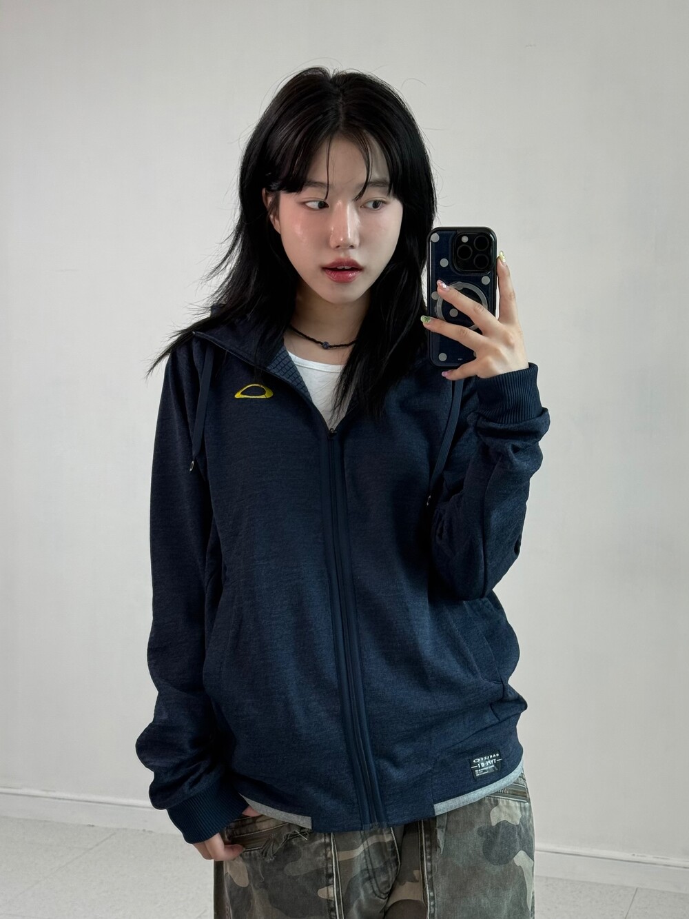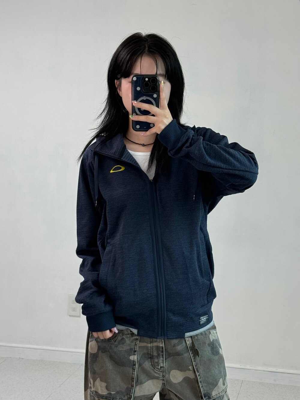 •네이비+옐로우 조합이 귀여운 오클리 후드집업이에요! 모자 써줘도 기욥ㅎㅎ