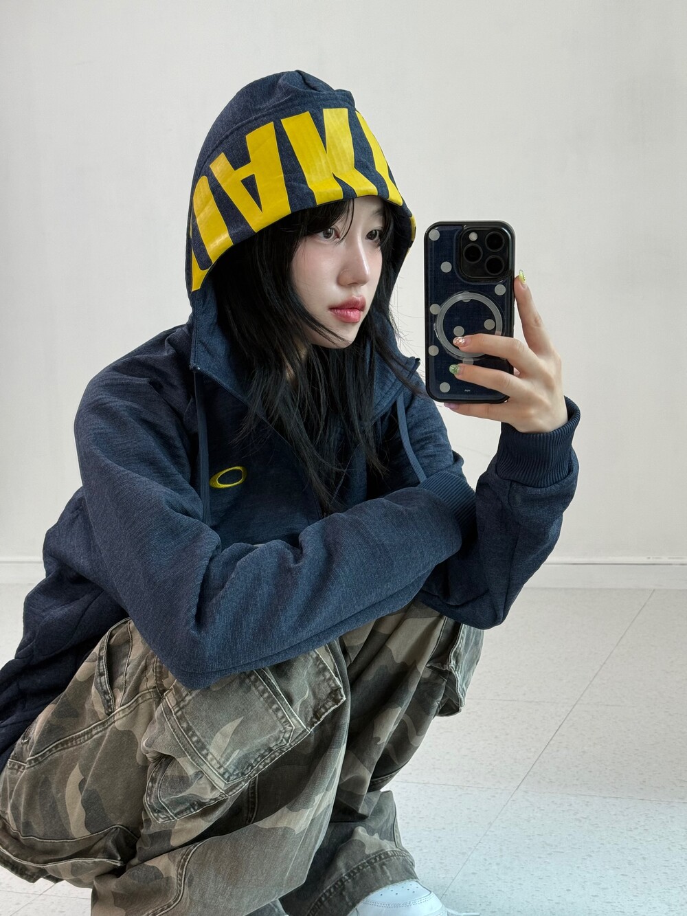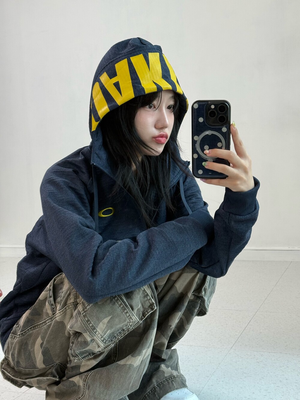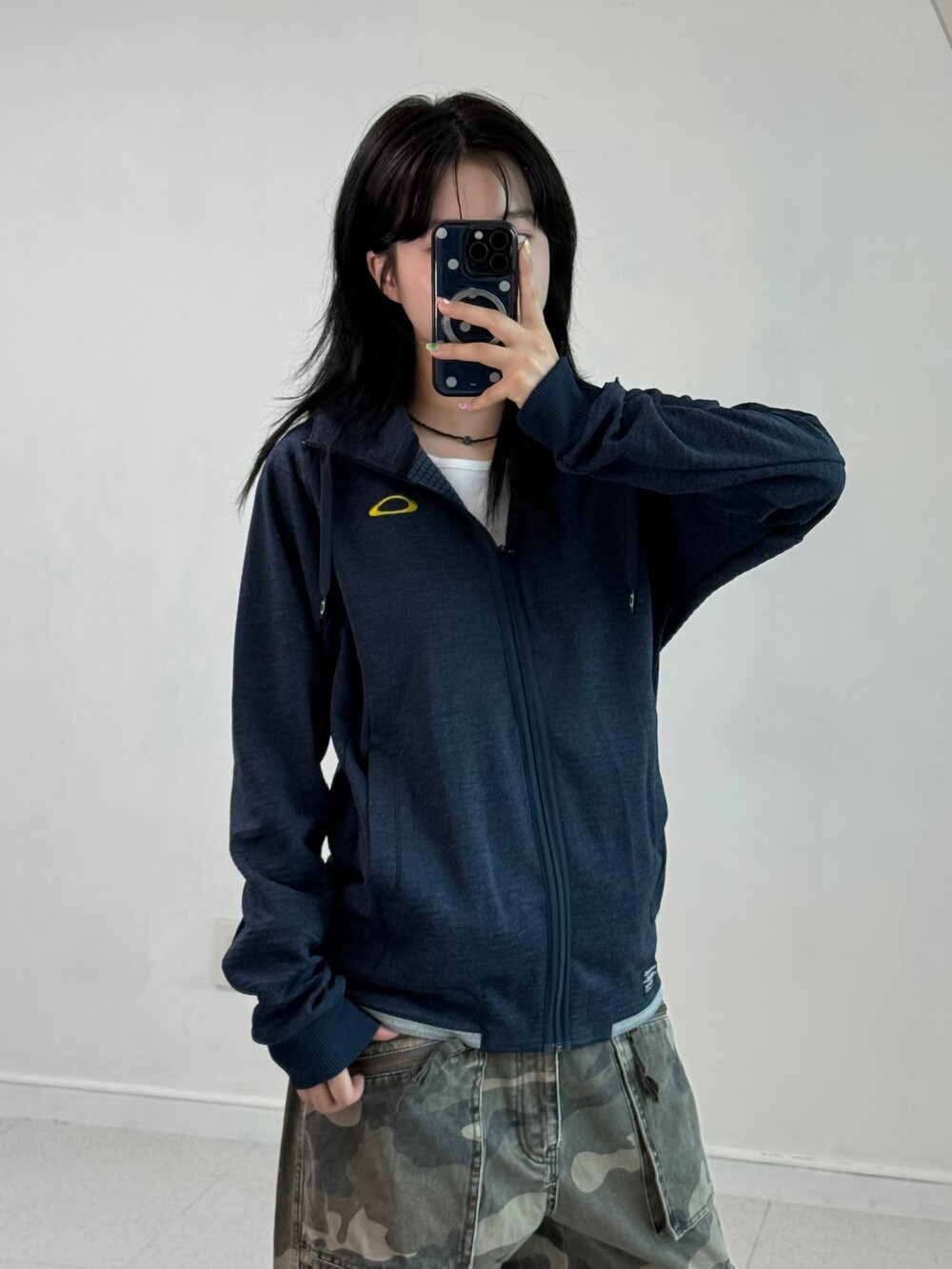 •네이비+옐로우 조합이 귀여운 오클리 후드집업이에요! 모자 써줘도 기욥ㅎㅎ