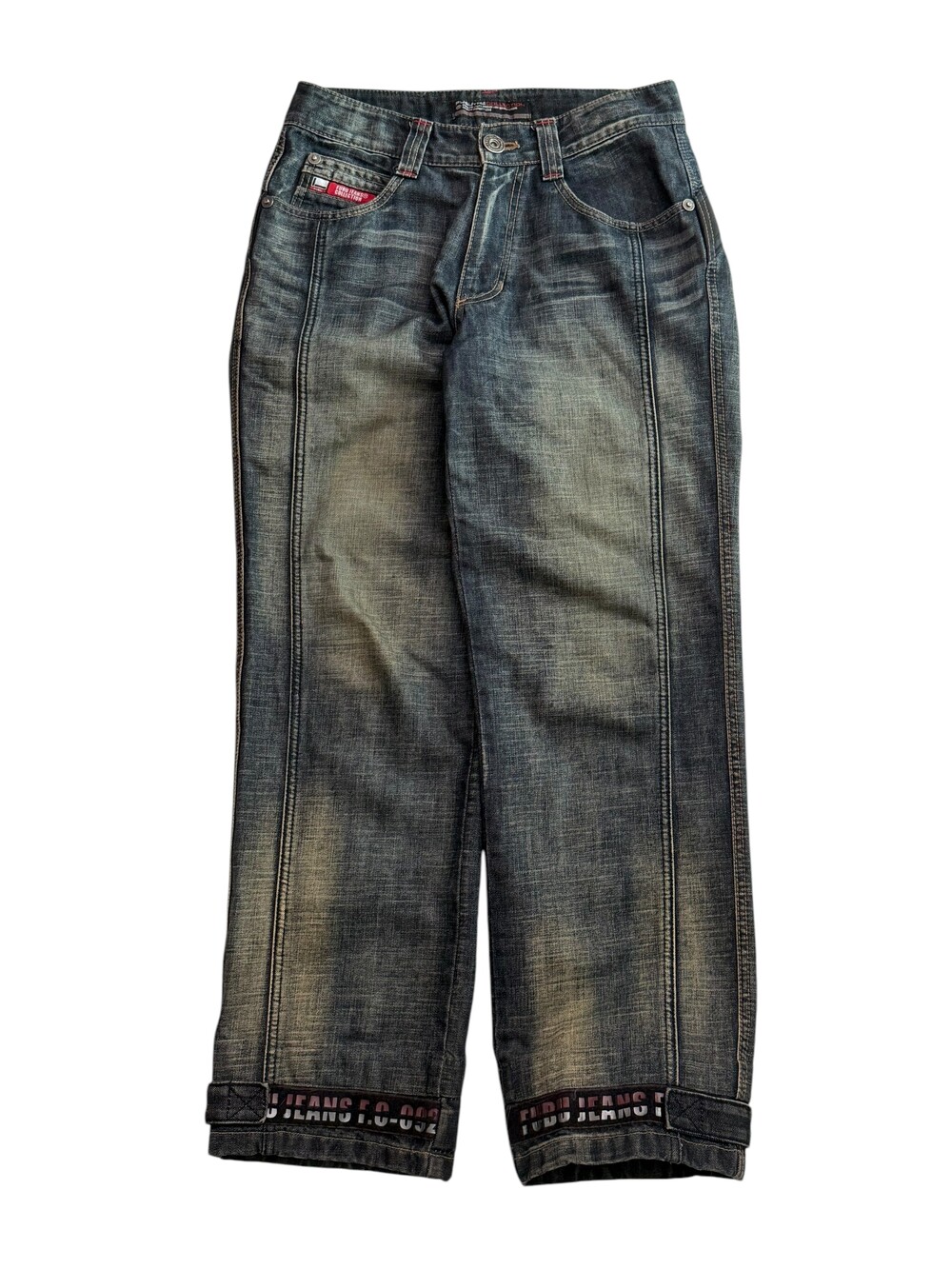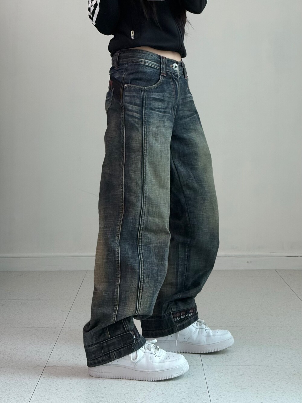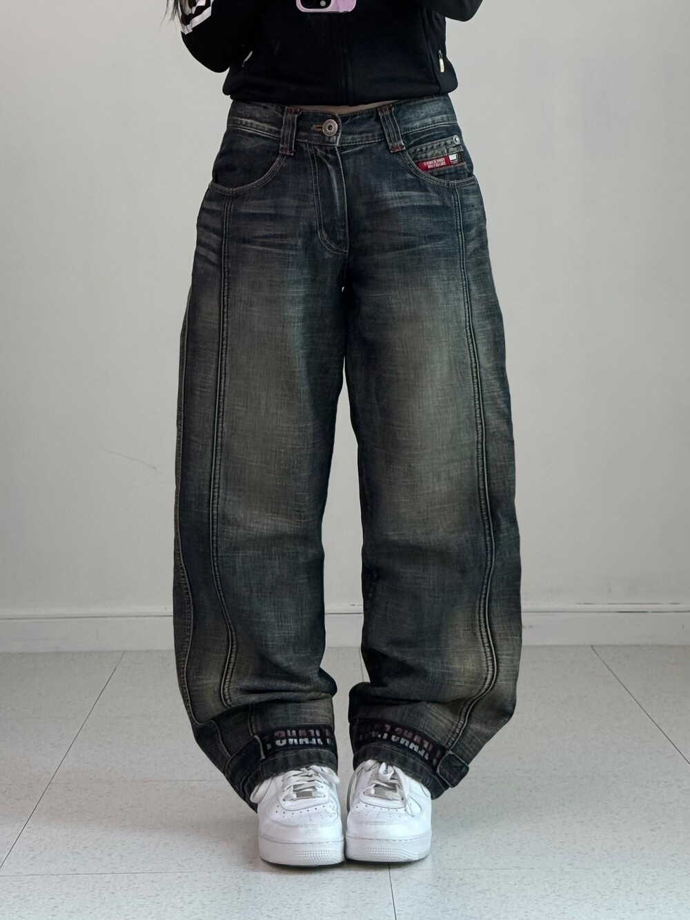 •워싱감이 멋스럽게 들어가있는 FUBU! 밑단에도 로고 디테일 엉덩이에도 로고가 들어가있어 숏한 기장감에 엉덩이가 잘보이는 상의와 함께 입어주세효-