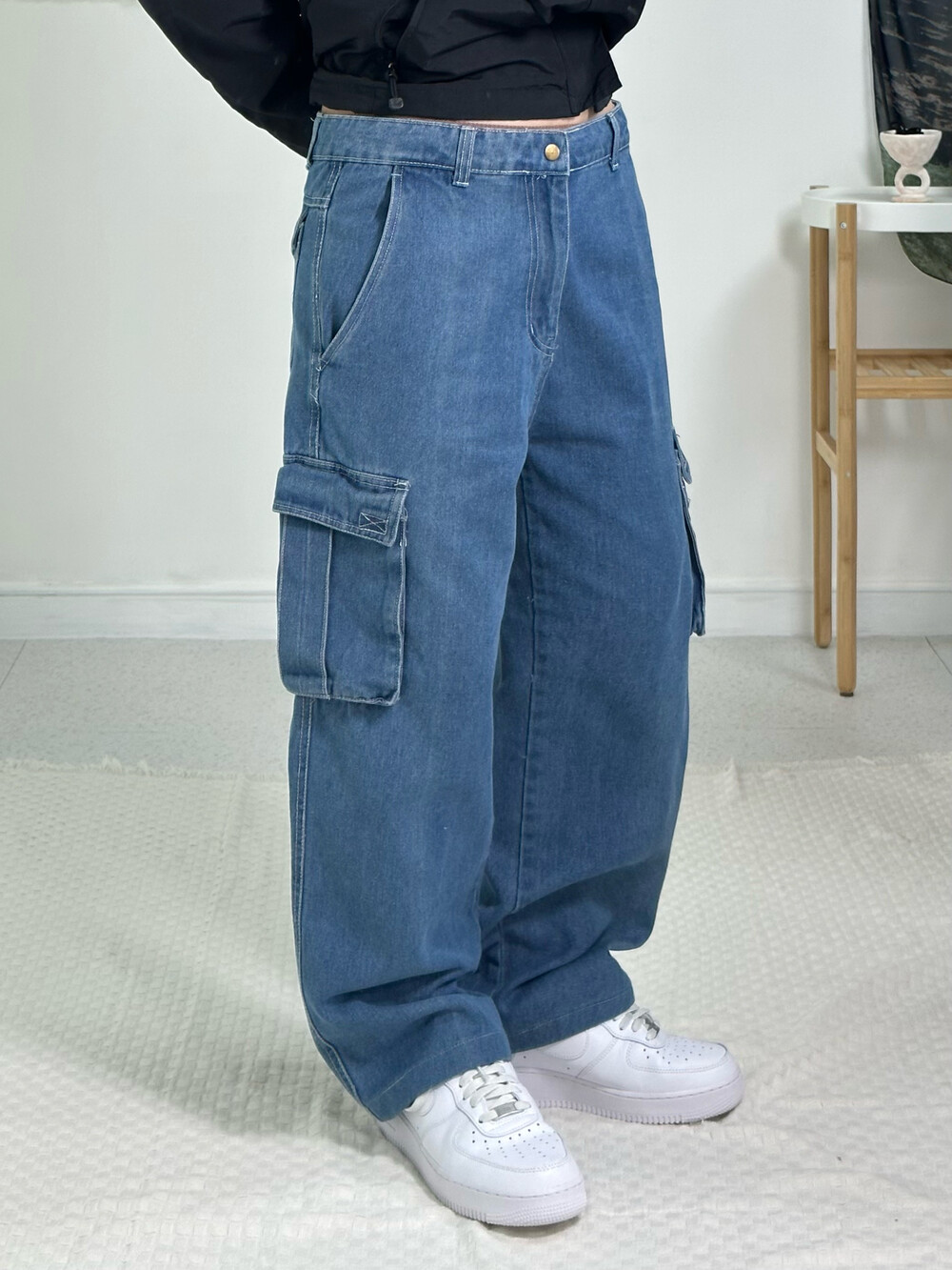 Space denim cargo pants