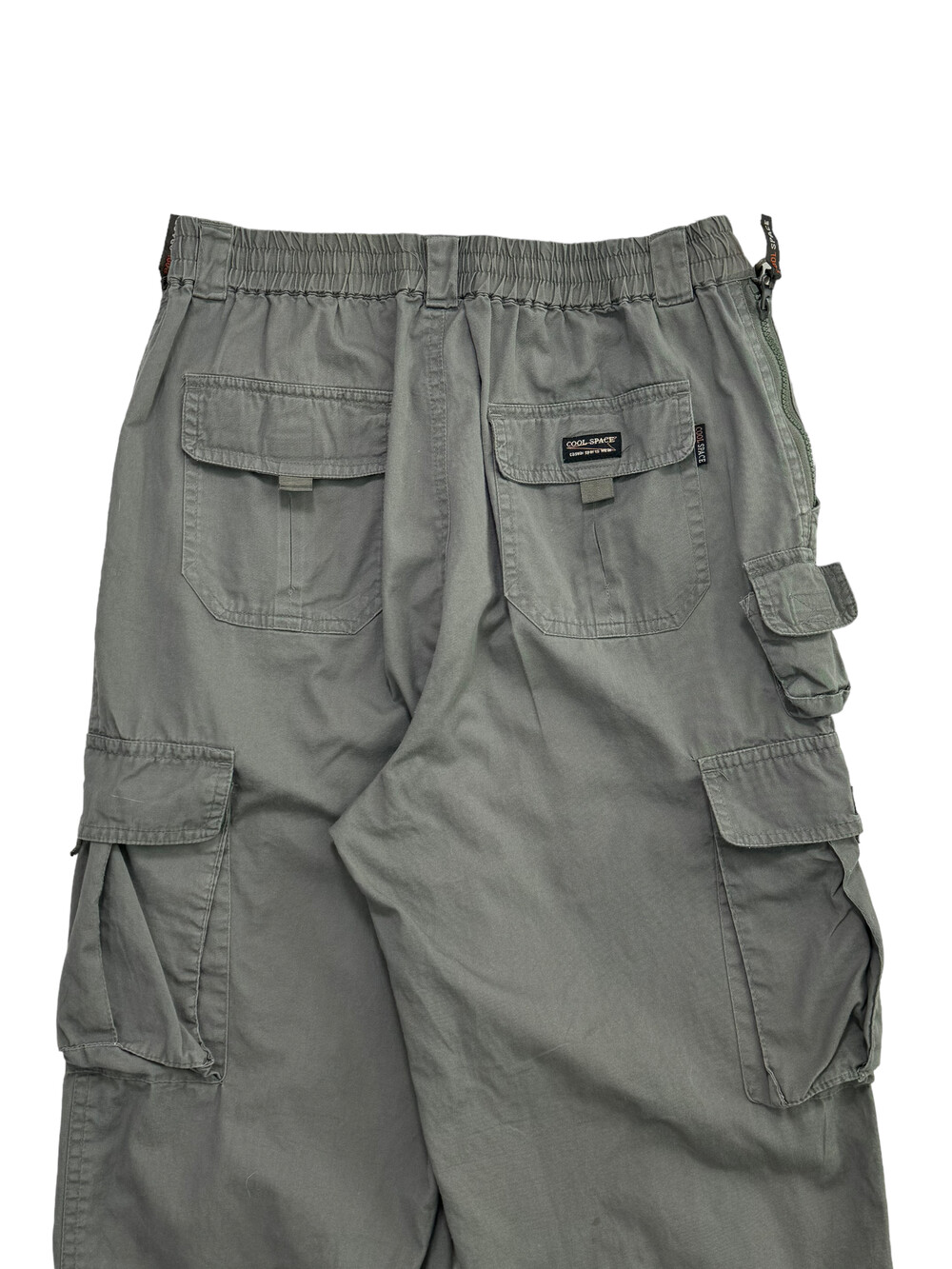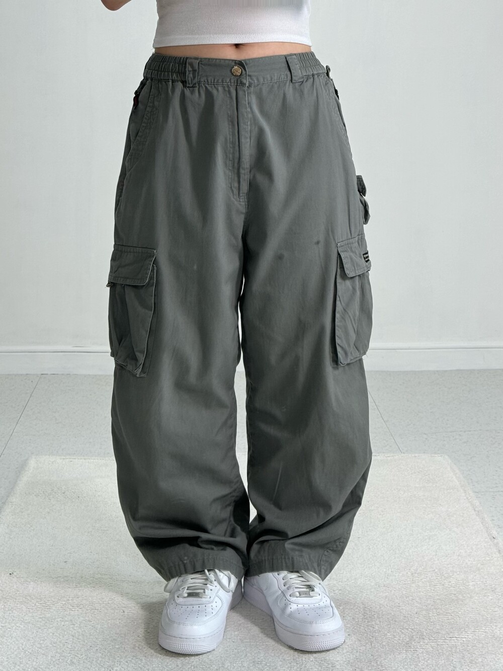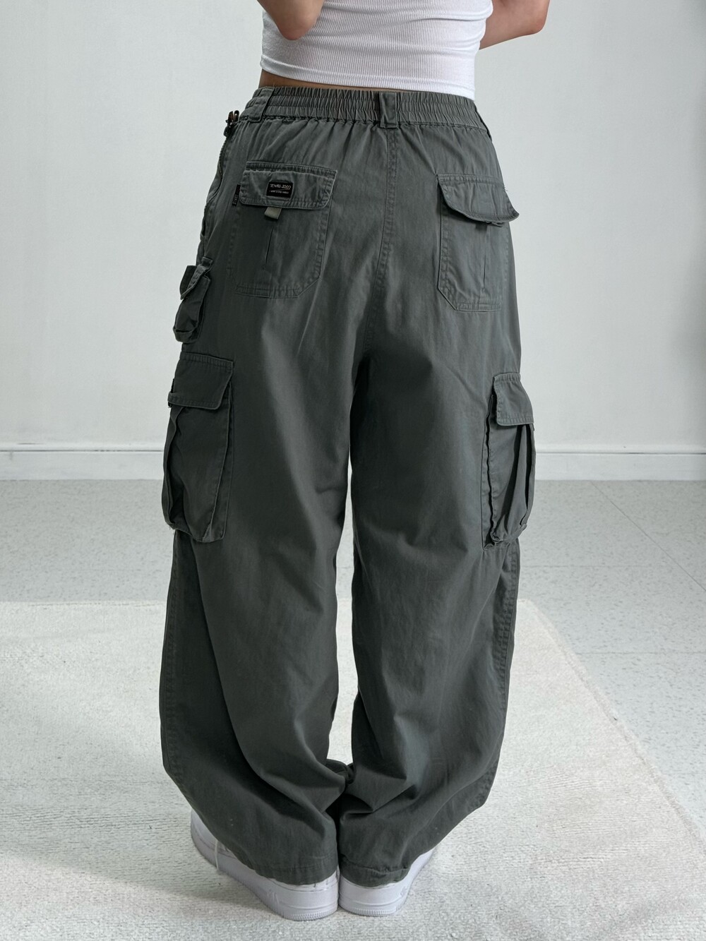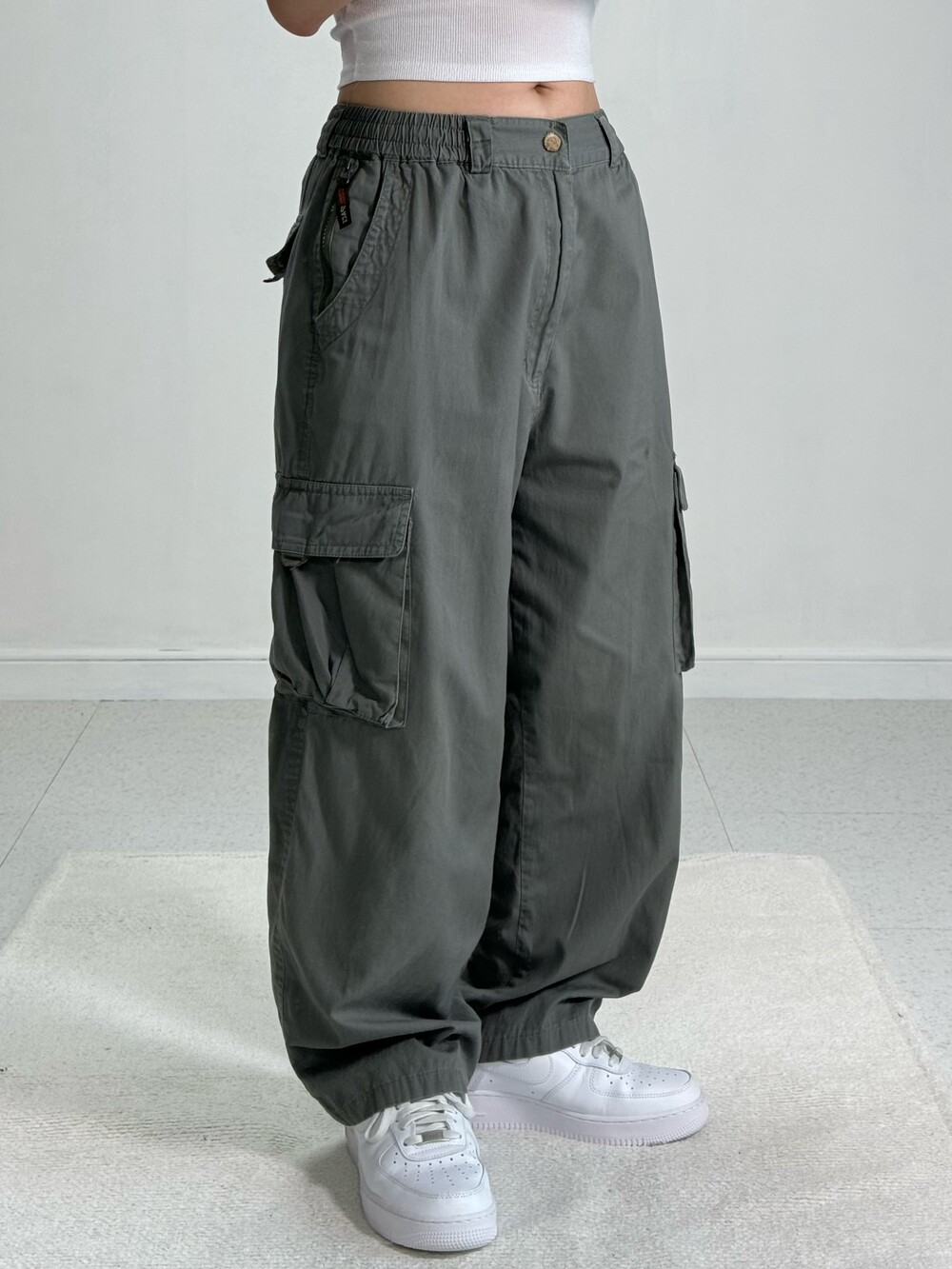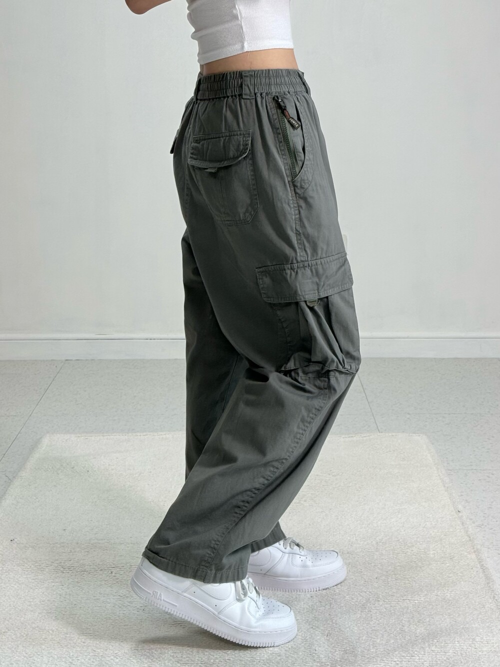 •카키그레이 컬러 와이드 루즈핏 카고팬츠에요! 데일리룩으로 편안하게 즐겨주세용 히히