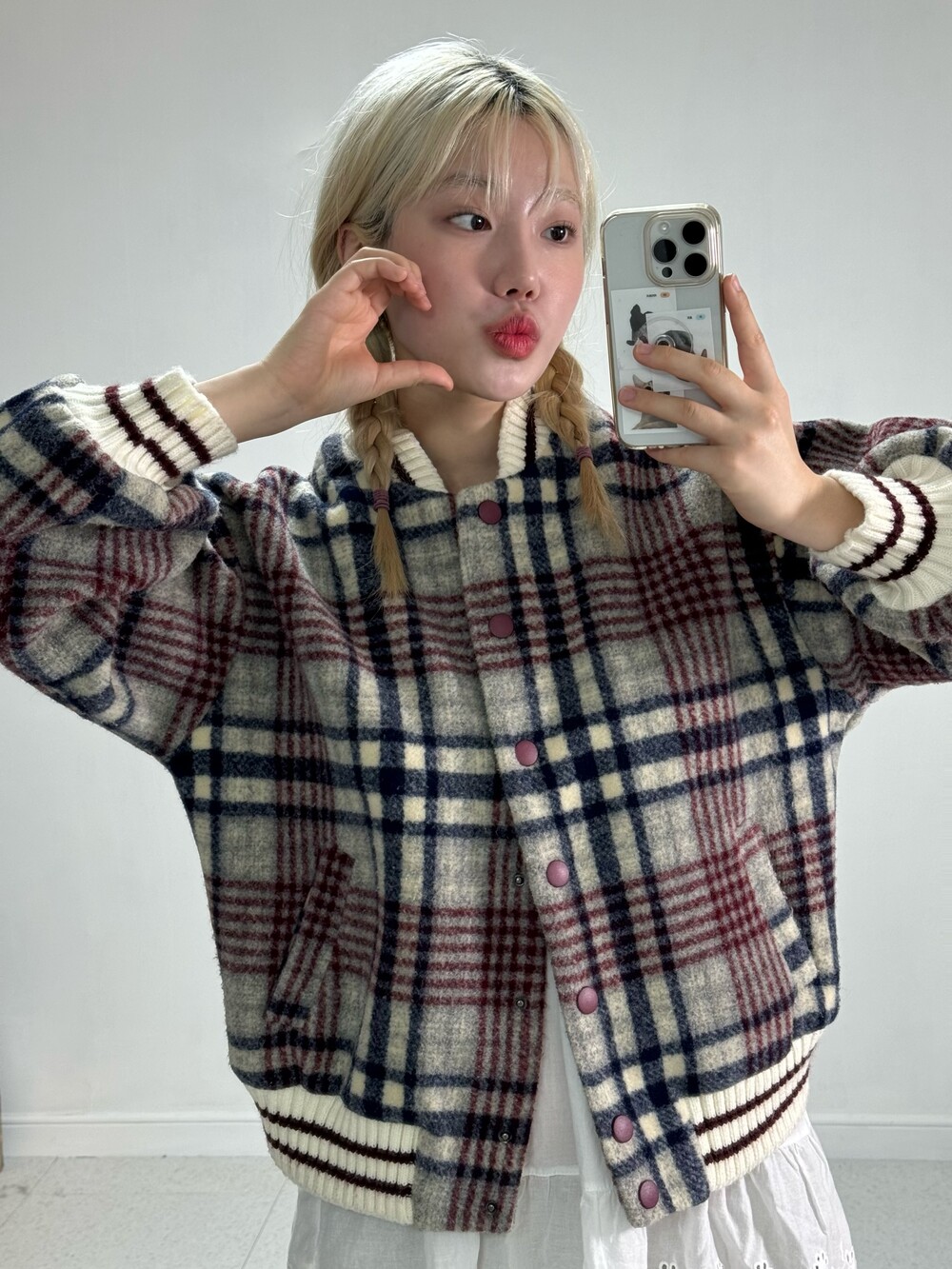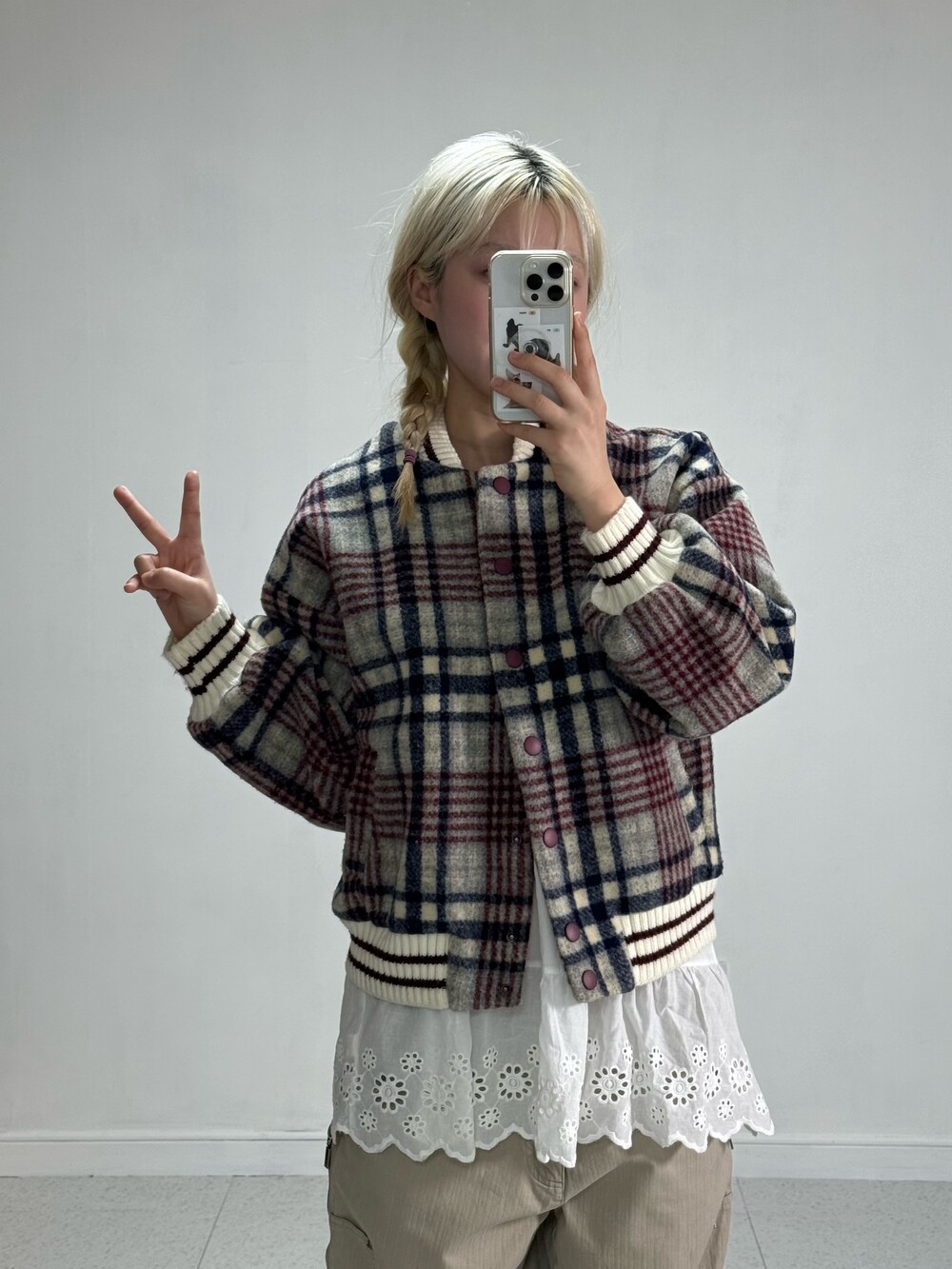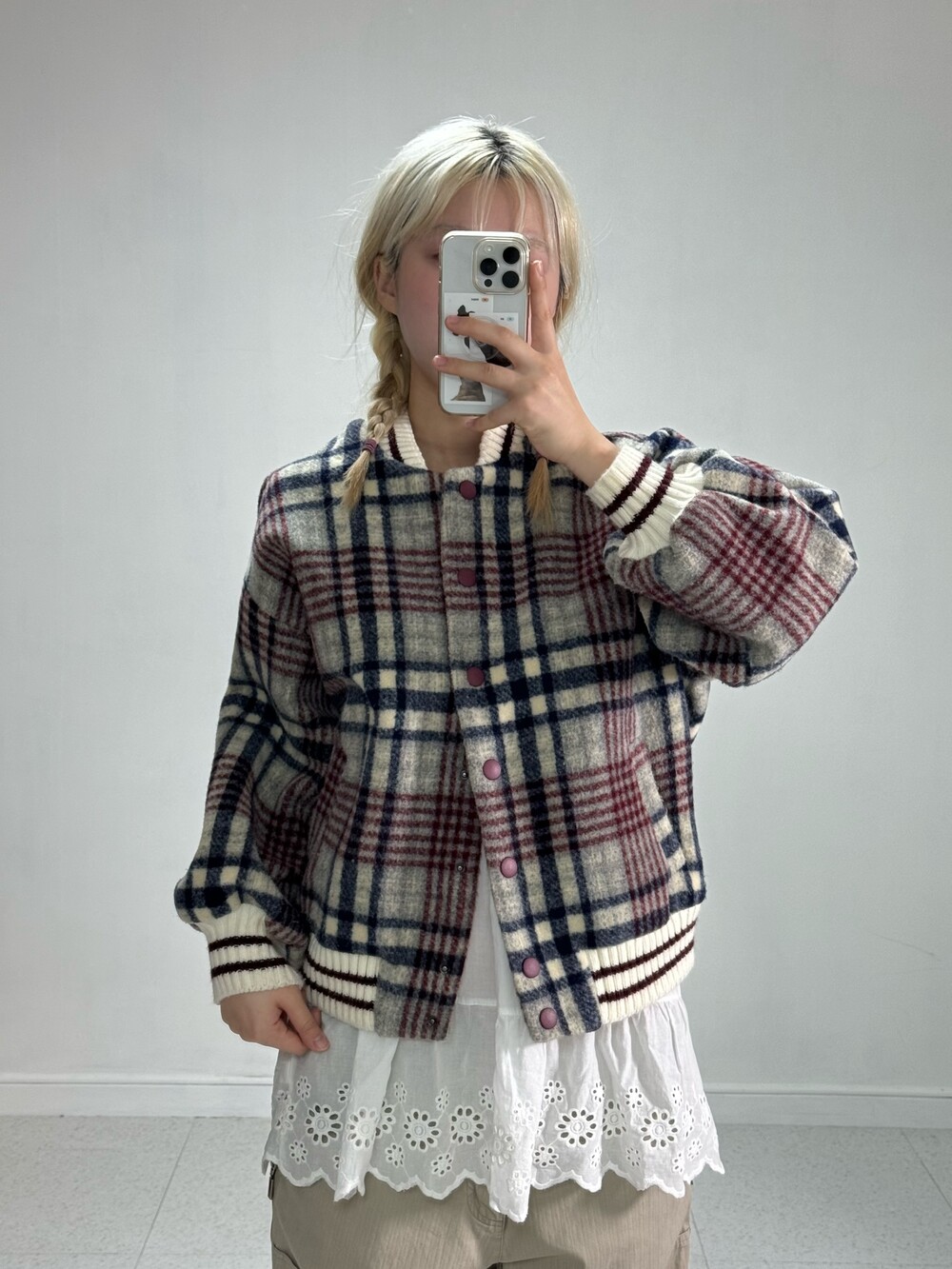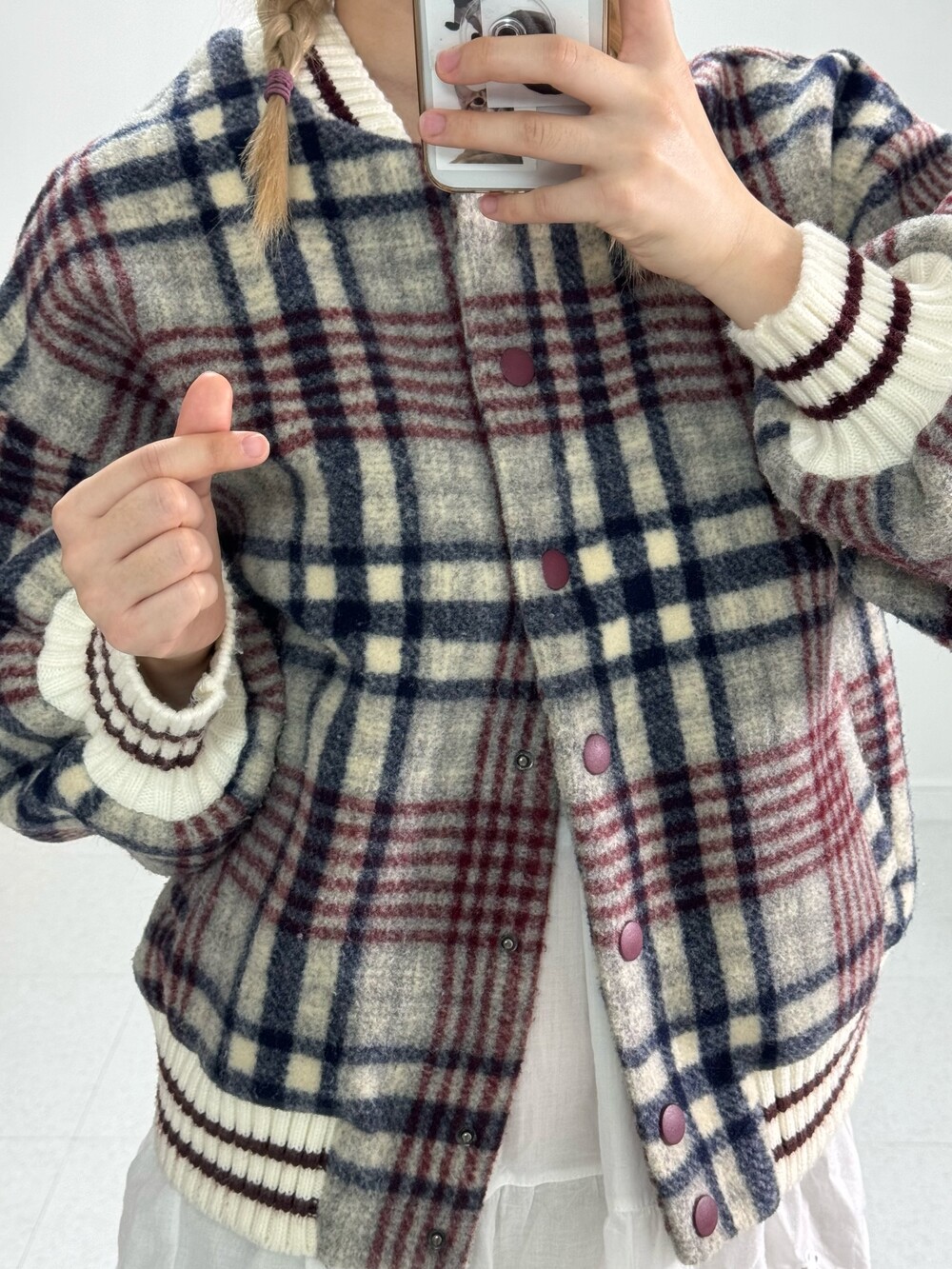 •모직 울 원단의 체커 점퍼입니다! 귀엽게 착용해주시기 좋은 아이템 ㅎ ㅎ 누빔 안감이라 따숩습니다