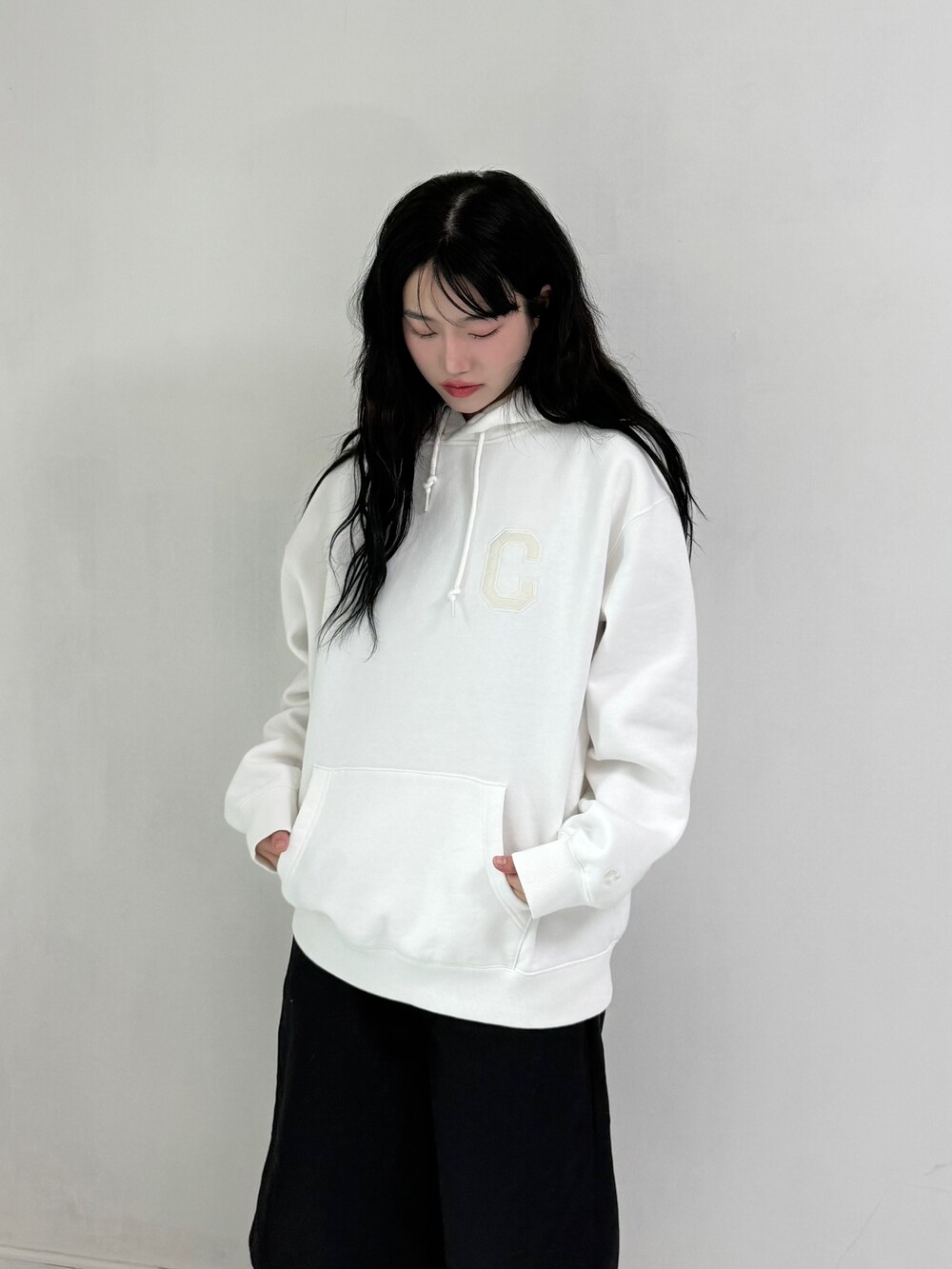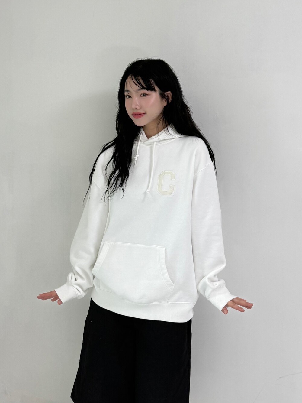 •커버낫 화이트 후드티 입니다! 도톰하니 핏 예쁜 휘뚤마뚤템 이랍니다🖤😎