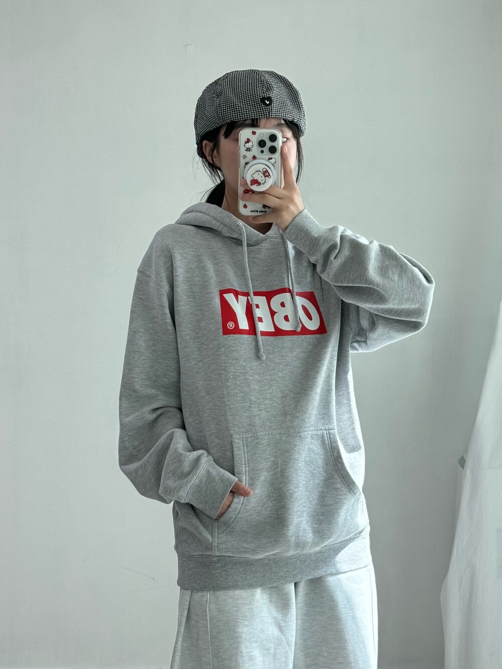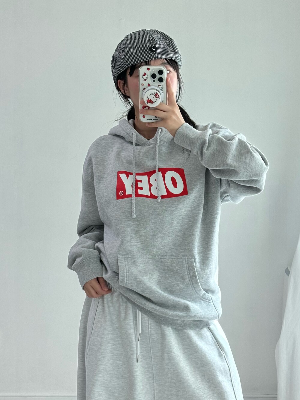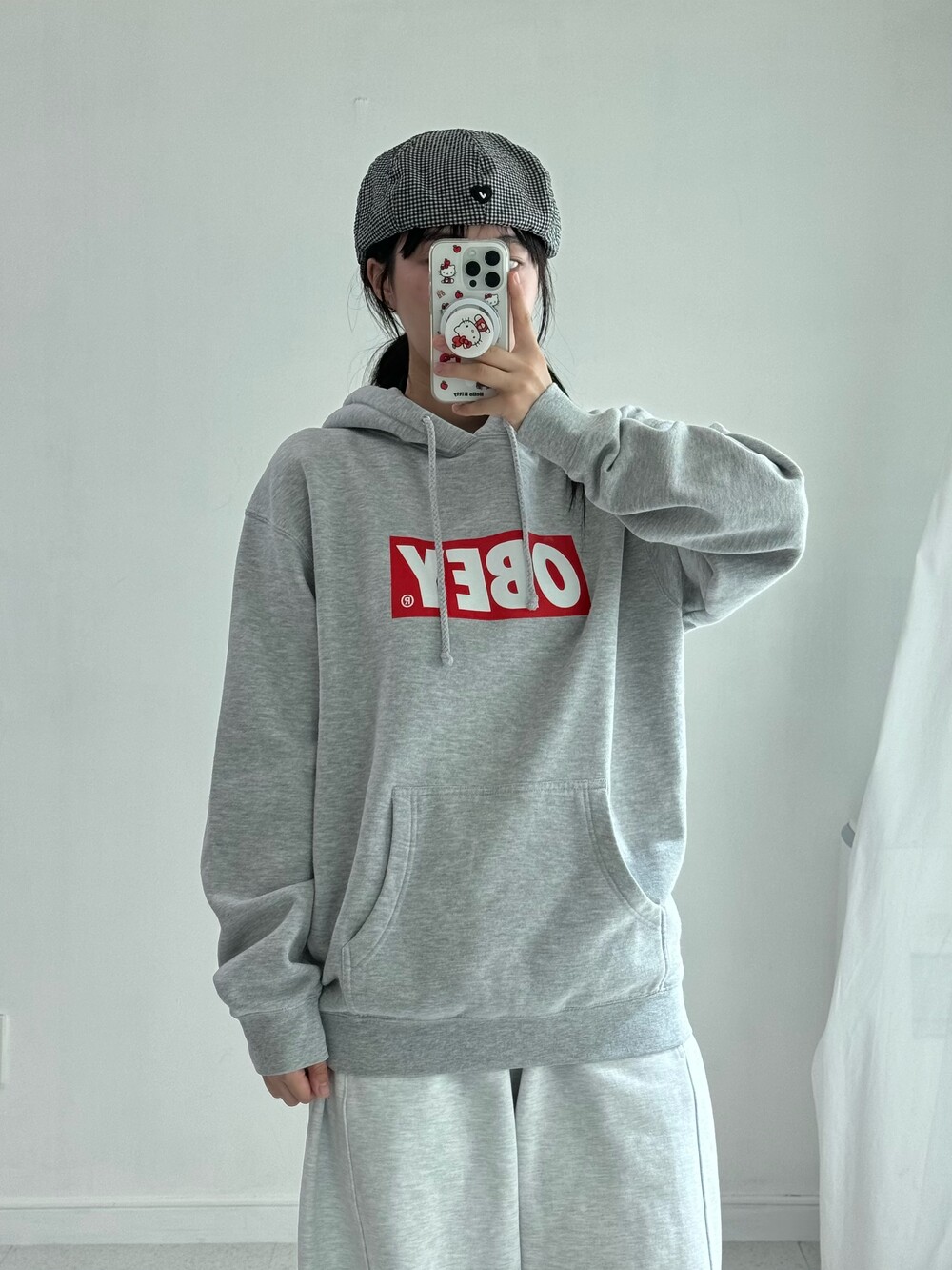 •아방루즈핏 오베이 그레이 후드티에요ㅎㅎ 꾸안꾸로 막 입어주시기 좋은 아이템이라 실용성 완전 굿 입니닷 ㅎㅎ