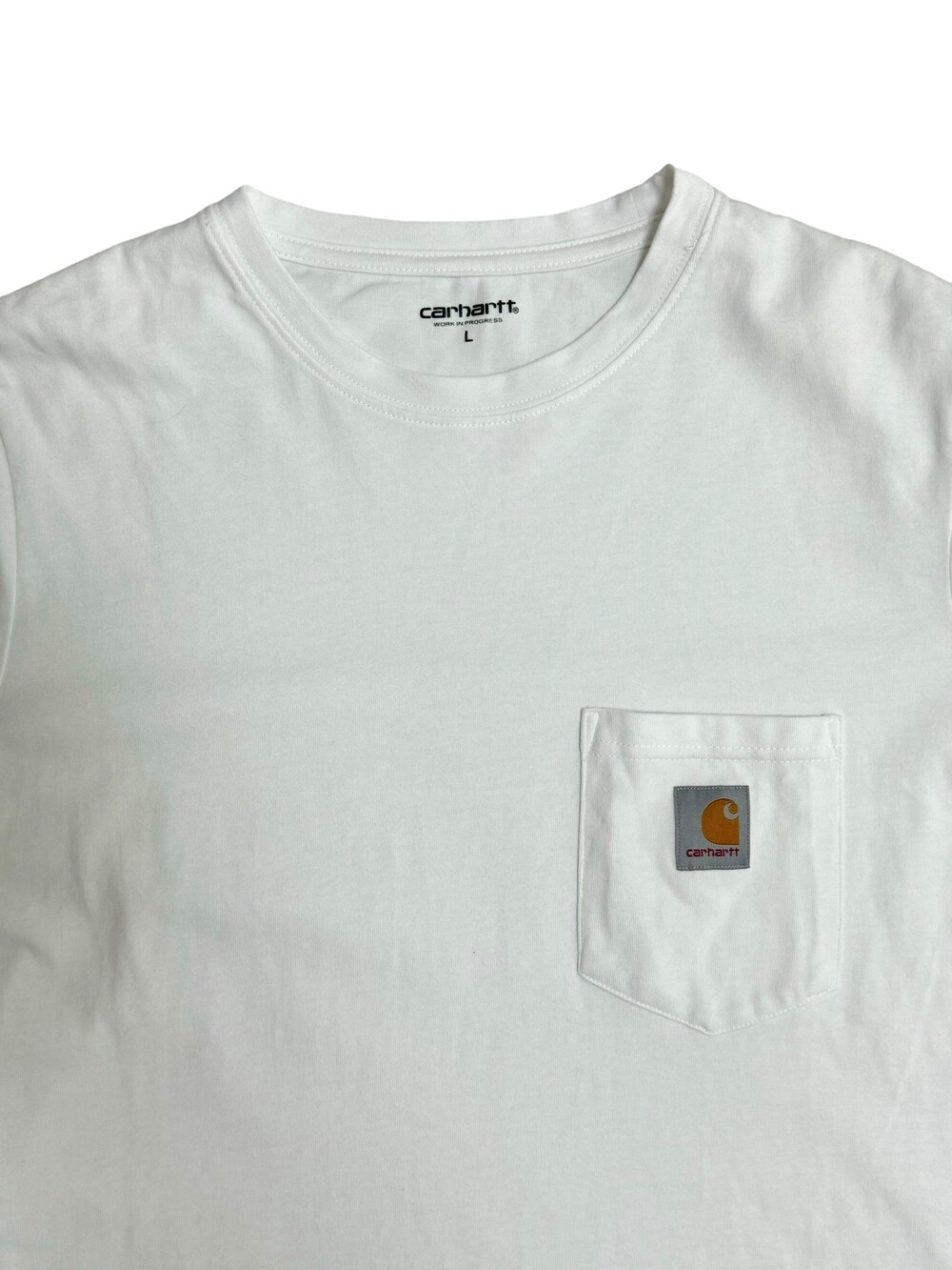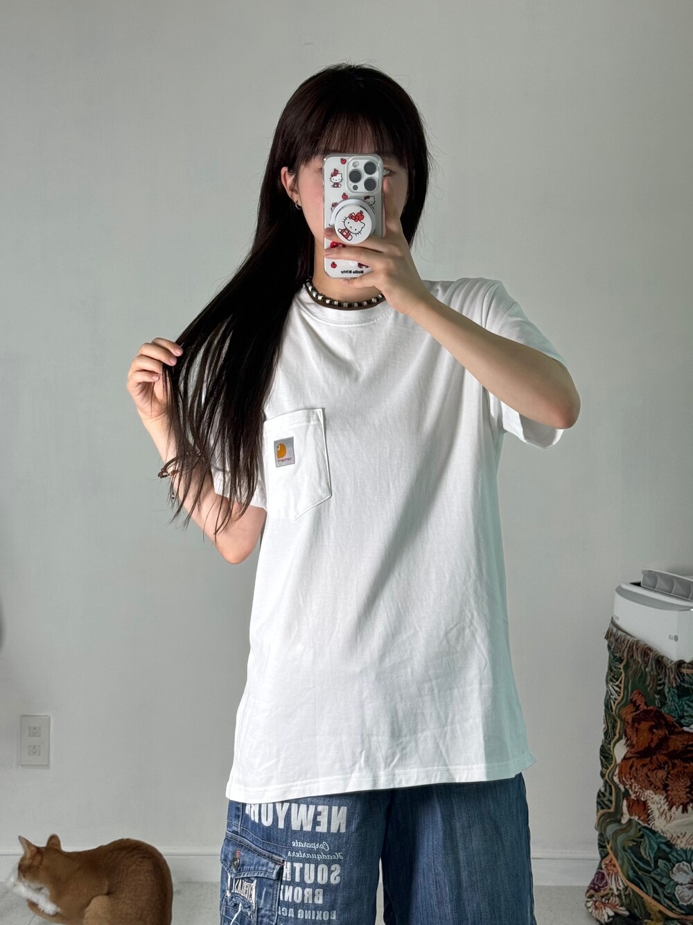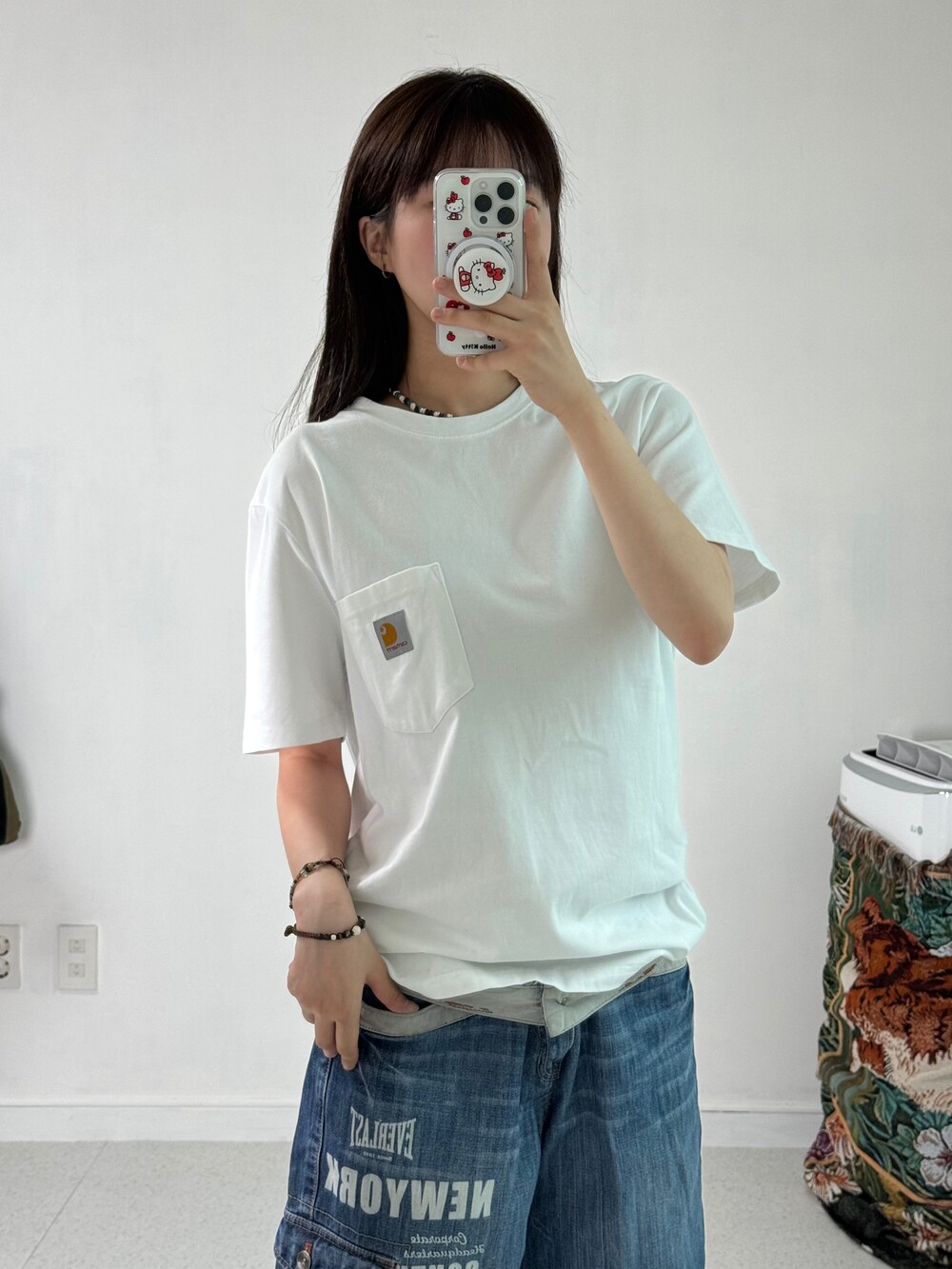 •칼하트 화이트 반팔이에요! 사이즈도 아방하고 화이트 인데 오염하자 하나도 없어요!! 완전 갓성비..><