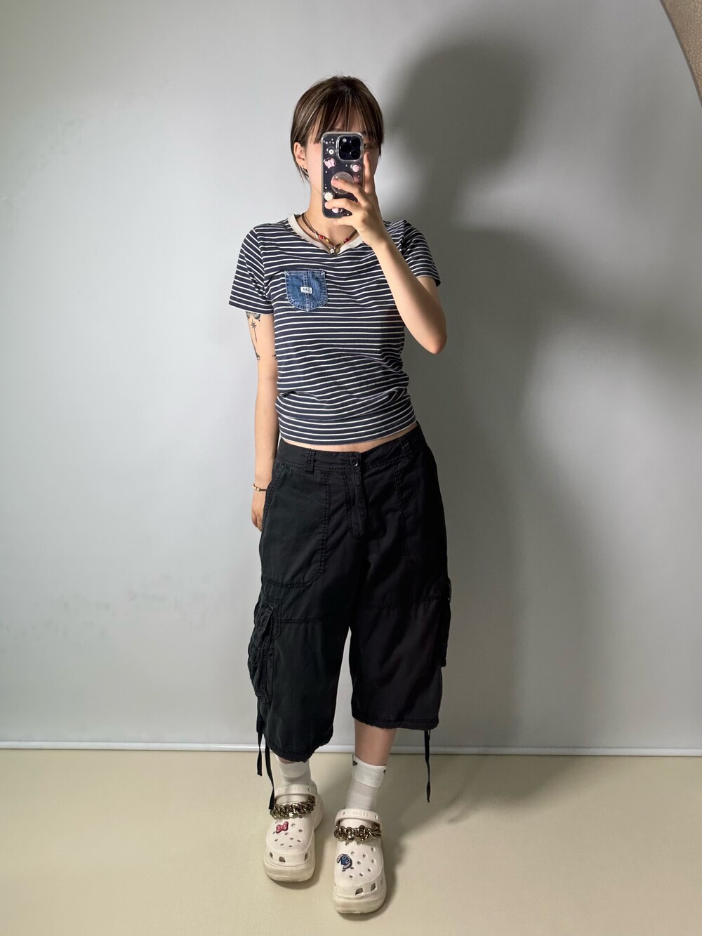 •무오데에서 가장 인기 좋은 블랙 루즈핏 반바지! 스티치 디테일과 사이드에 빅포켓 디자인이 빈티지무드를 돋보이게 만들어주는 제품입니다! 데일리로 착용하기 너무 좋아요:)