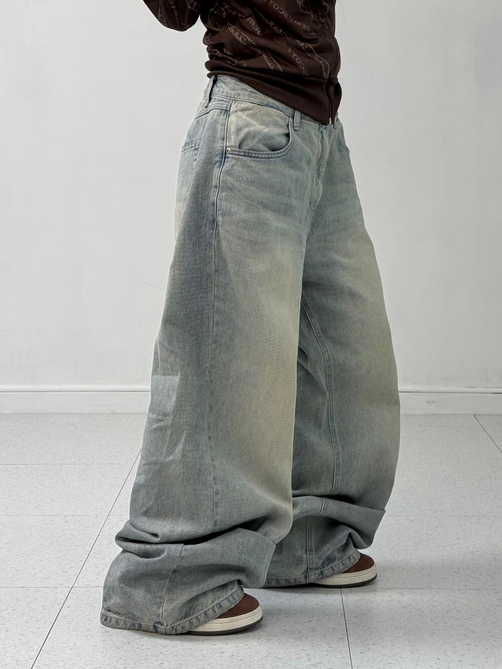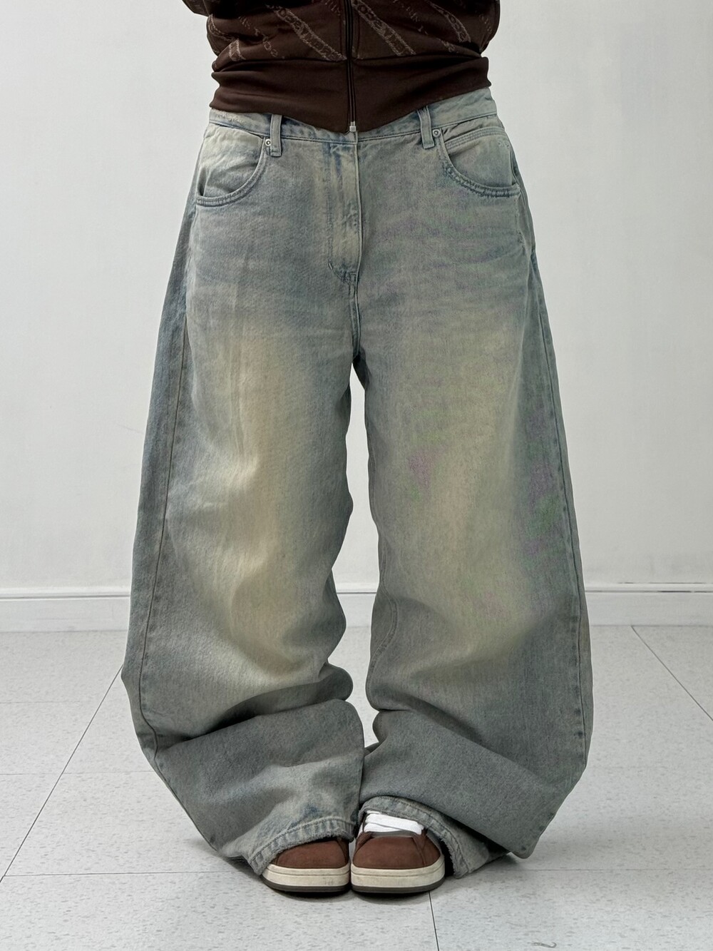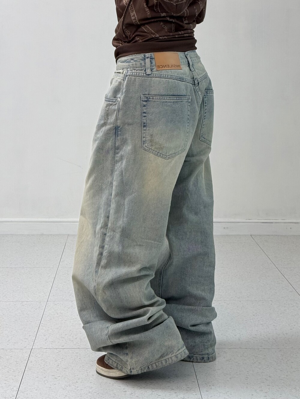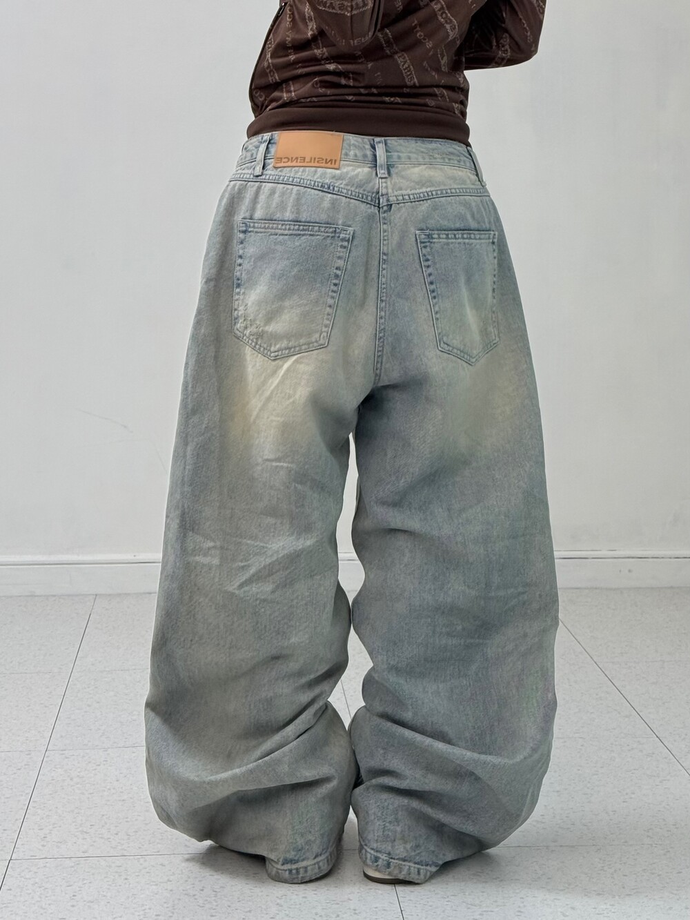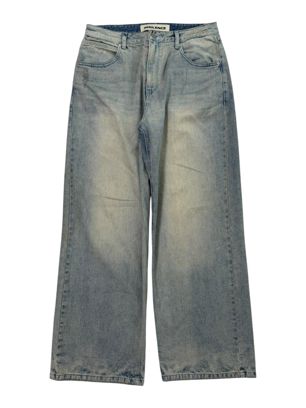 •인사일런스 워싱 데님 팬츠 입니다! 와이드함과 루즈함이 공존하는 팬츠라 더욱 힙한 무드를 즐기실 수 있으며 약간의 옐로우 워싱이 빈티지한 무드까지 낭낭하게 만들어주는 데일리 팬츠 랍니다<3