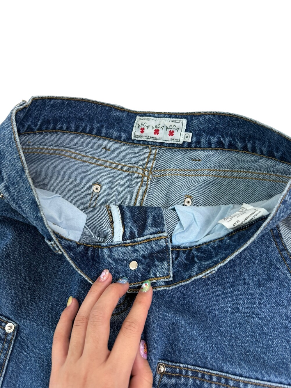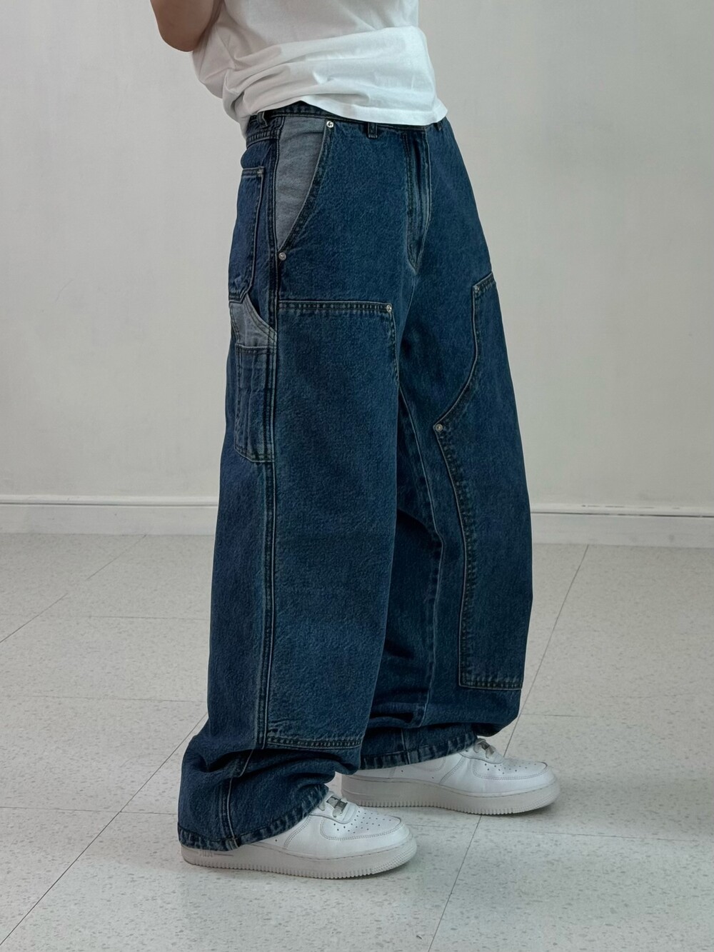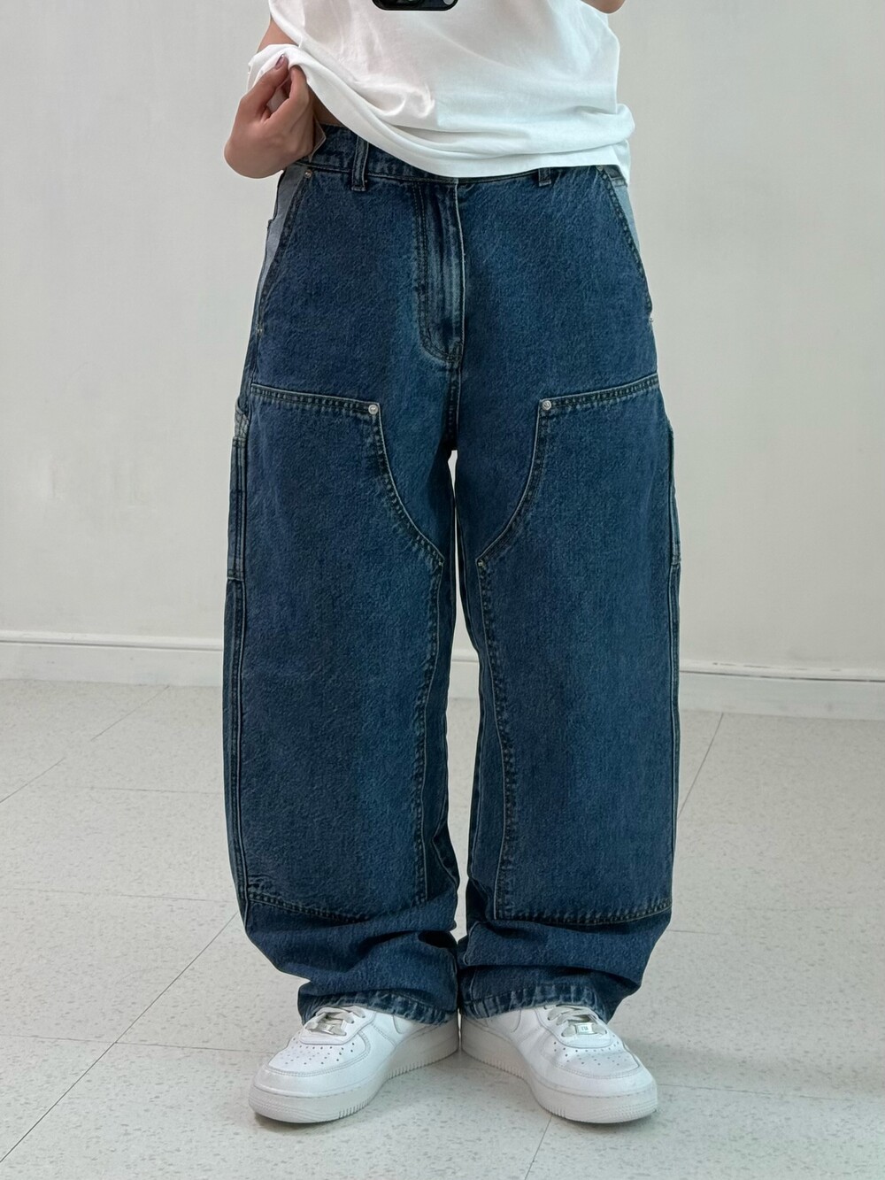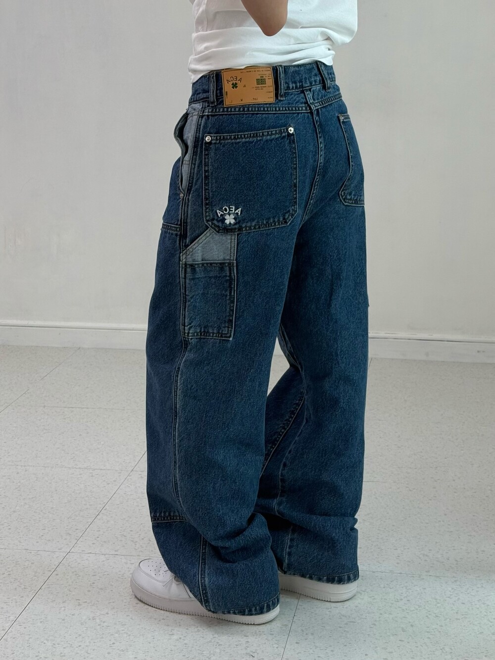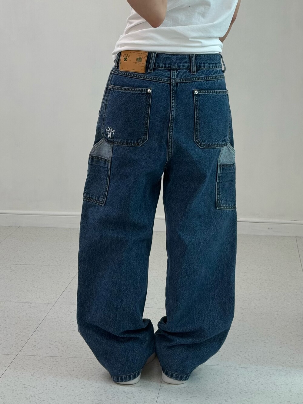 •에이카화이트의 더블니 데님카펜터 입니다! 데일리로 깔끔하게 착용해주시기에 좋고 엉덩이 클로버 로고가 포인트여요>,<