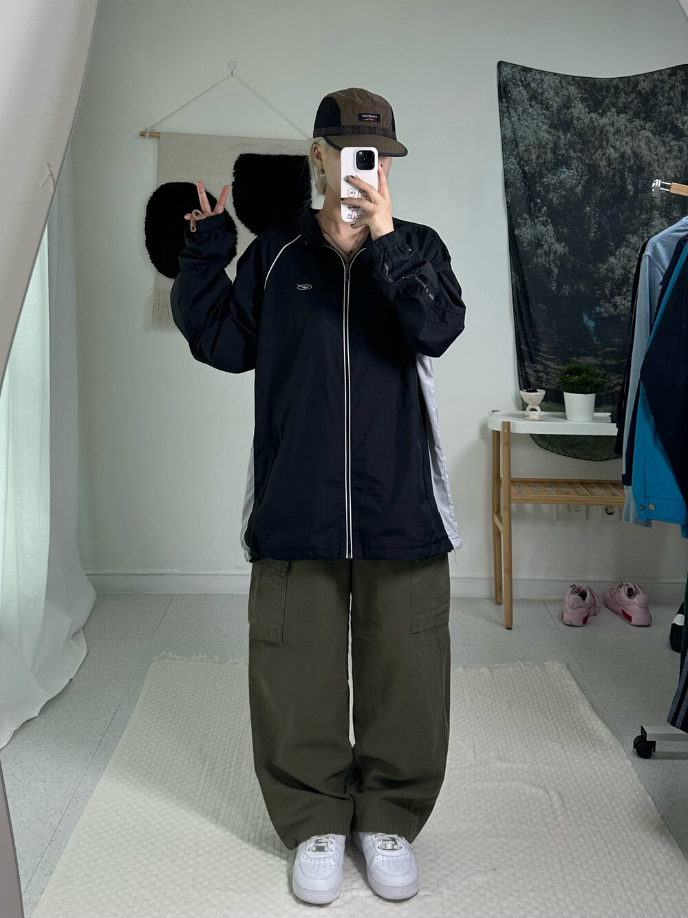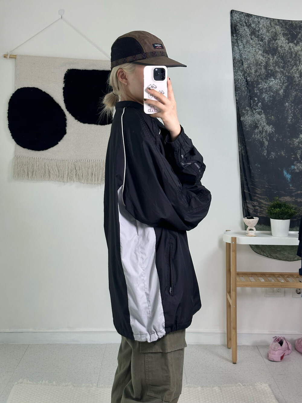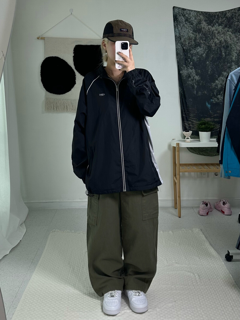 •무채색 러버는 모여라-!!! 루즈한 핏의 리복 집업 가지고 왔어요! 바스락 원단이라 가볍고 착용감도 좋아요ㅎㅎ밑단에 쭈리가 있어서 더욱 아방하게 착용할 수 있답니다:)
