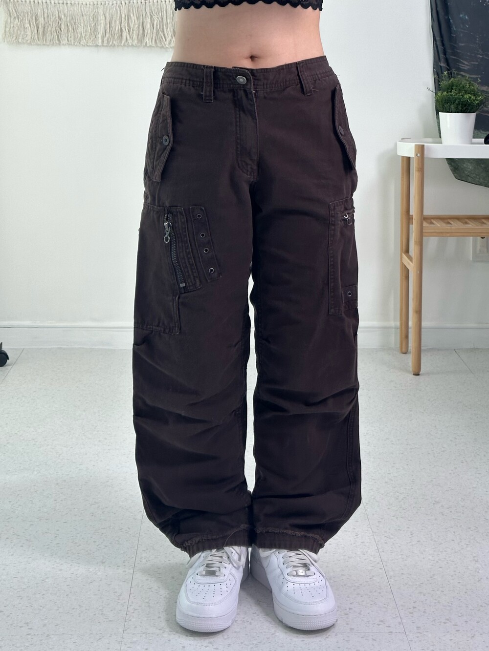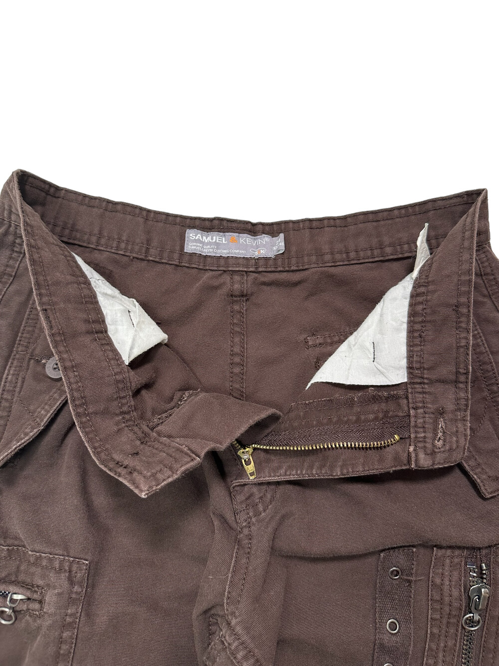 •브라운에 레드 한방울 떨어진 컬러의 카고팬츠에요! 지퍼와 포켓 디테일이 굉장히 멋스럽게 들어가있고 깔끔한 핏을 가지고 있는 팬츠랍니다ㅎㅎ 가을무드와 잘맞는 컬러라 더욱 추천 드리고 싶어요!