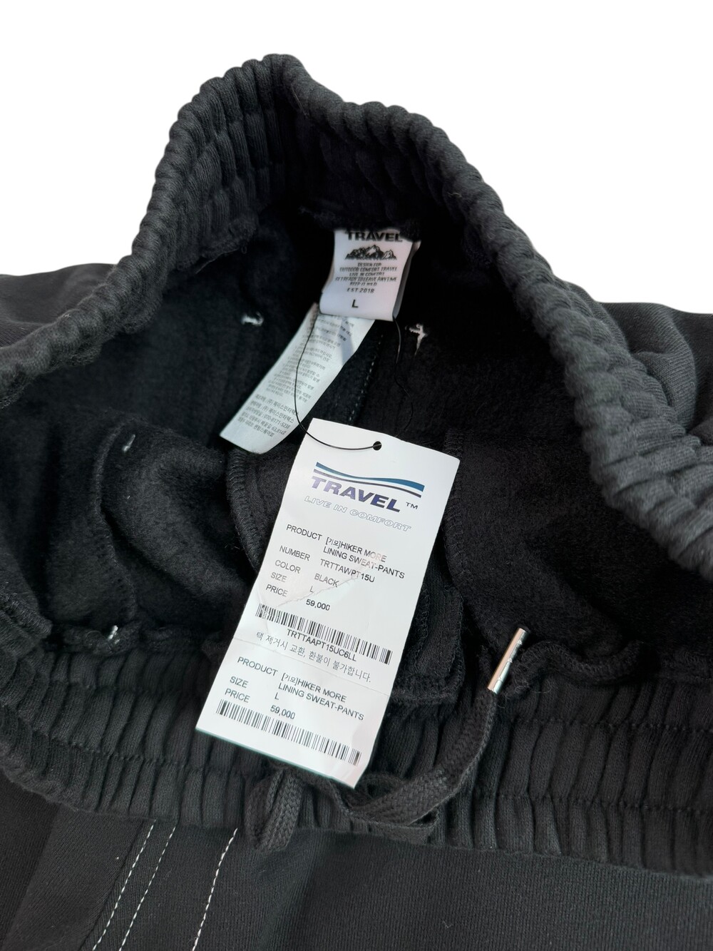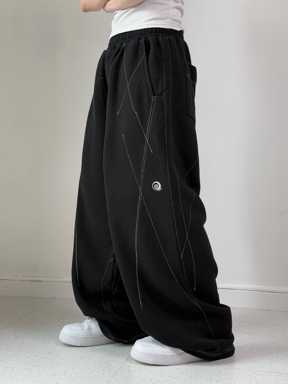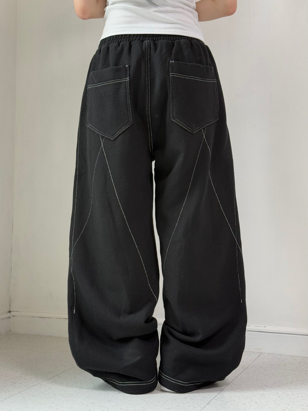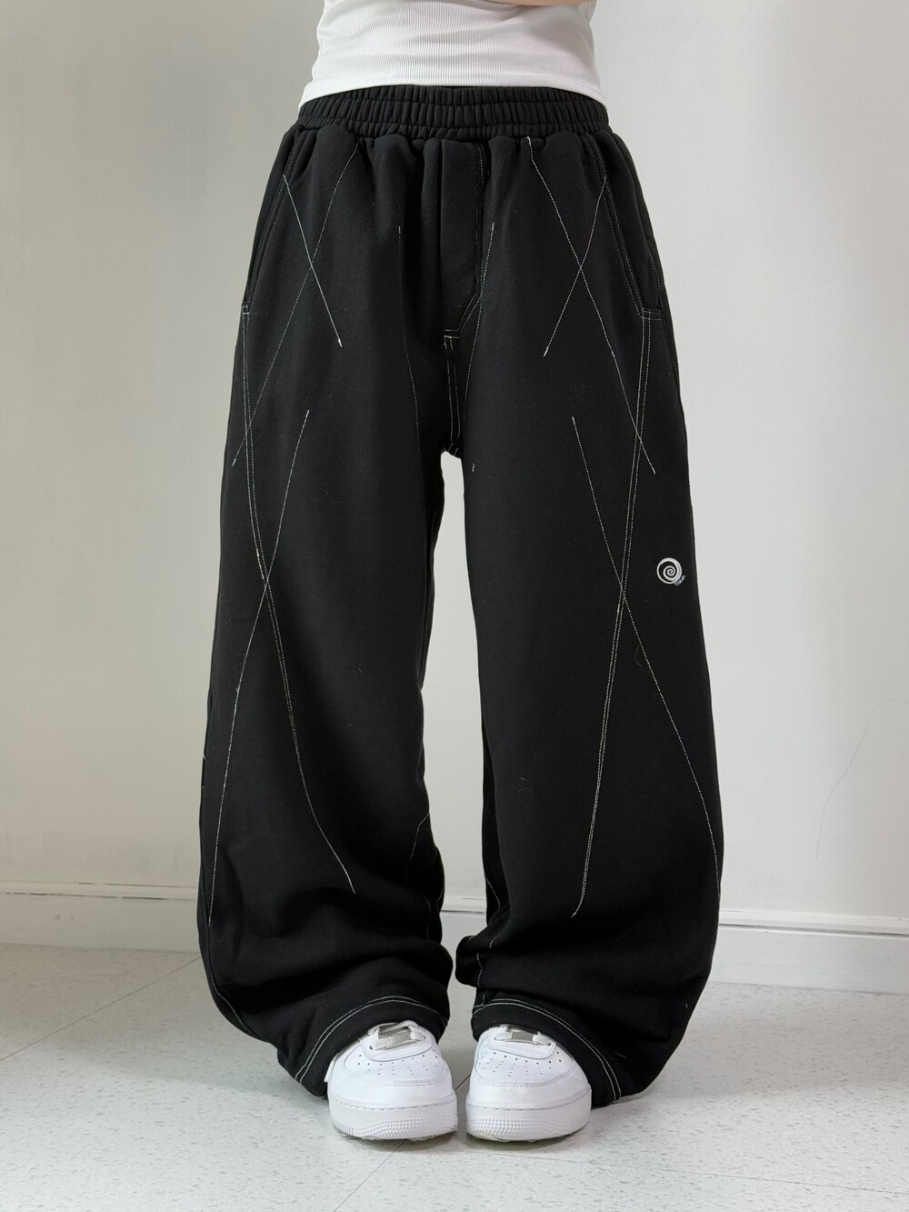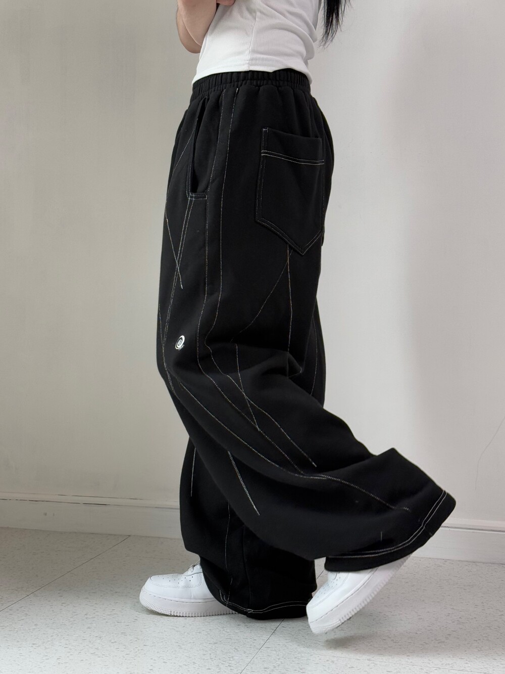 •트래블 트레이닝 팬츠 입니다! 블랙 컬러에 화이트 스티치 디자인이 유니크하고 꾸안꾸룩으로 입어주시기 좋습니다ㅎ.ㅎ