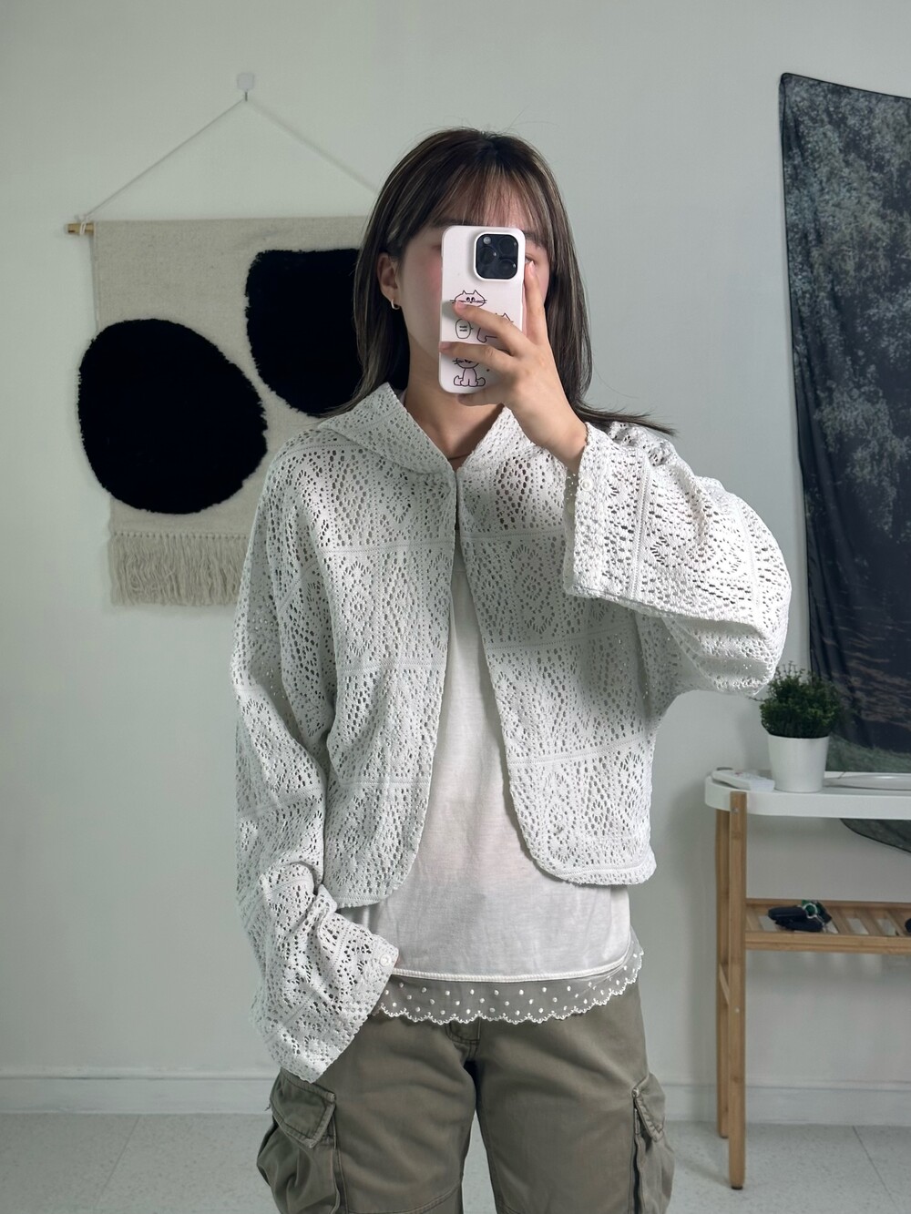 •모리한 느낌 낭낭한 후드 달린 가디건이에요! 아방한 느낌이라 더욱 귀여운 제품이랍니다>,<