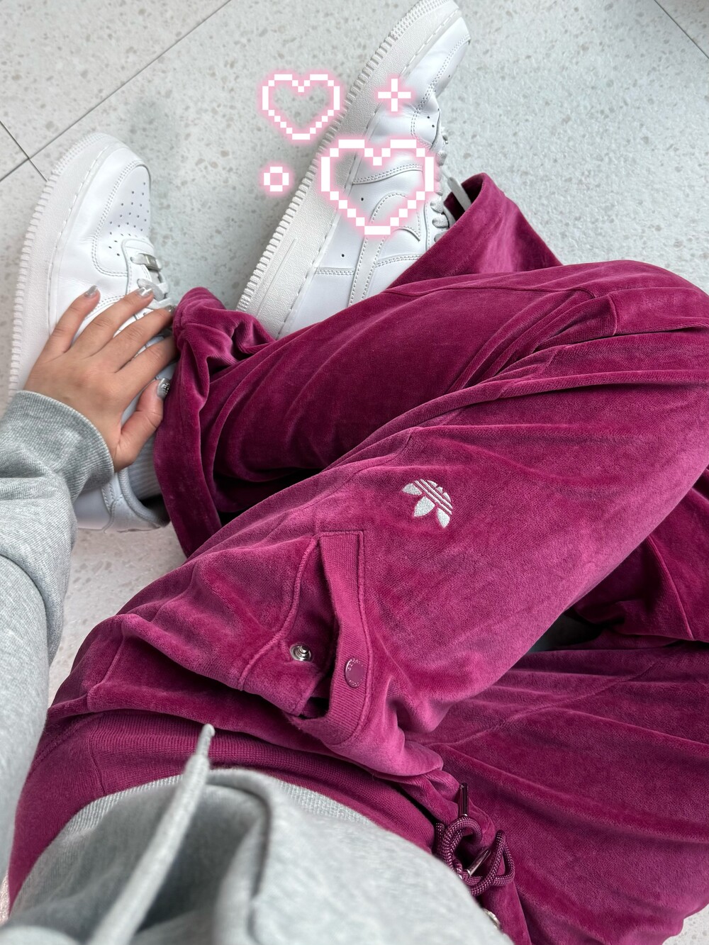 •아디다스 플럼 컬러 벨벳 츄바! 와투케 무드 낭낭하니 예쁘죠ㅎㅎ+실버 로고까지🤍