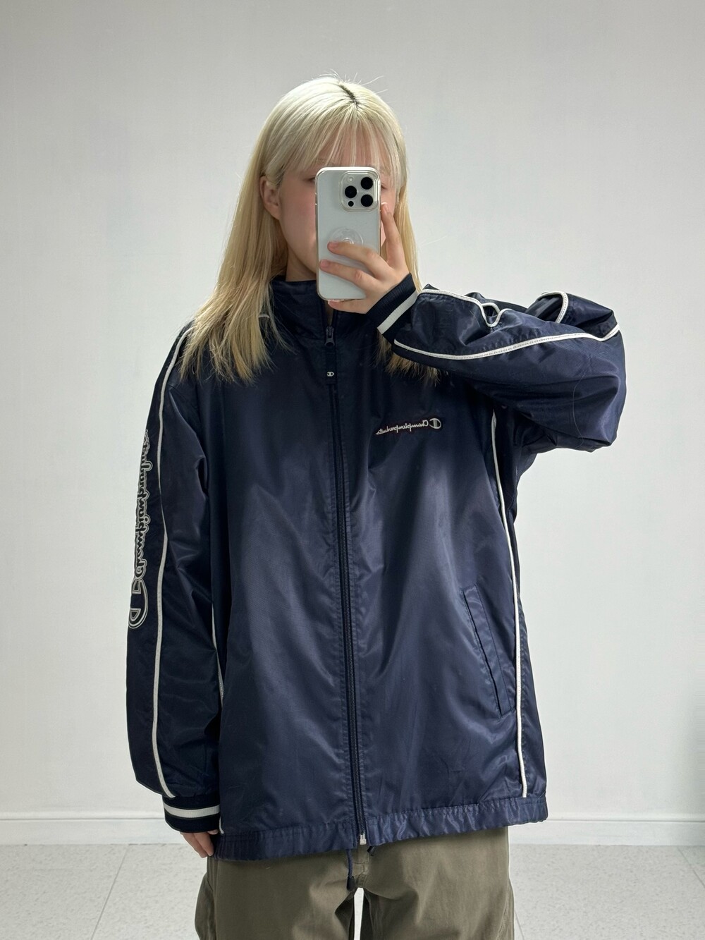 •올드스쿨 분위기 가득한 챔피온 점퍼에요! 안감이 얇은 기모로 되어있어 좋고, 폼이 널널해서 후드티와 함께 착용해주시기 좋습니다ㅎㅎ