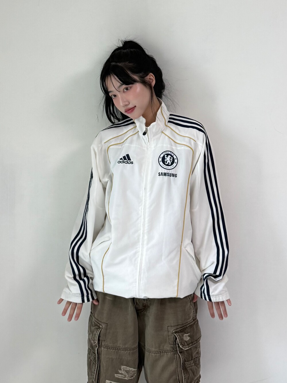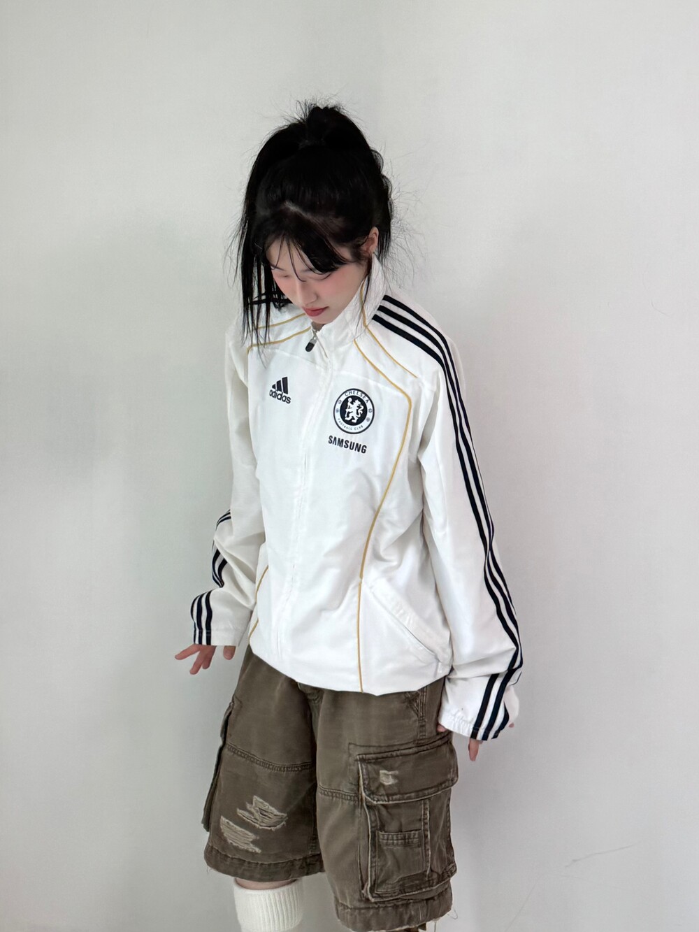 •2010-11 화이트 첼시 바람막이 입니다! 넉넉한 오버핏에 깔끔한 화이트+네이비 삼선이 말해뭐해 근본조합으로 넘 예쁜거 있죠-!