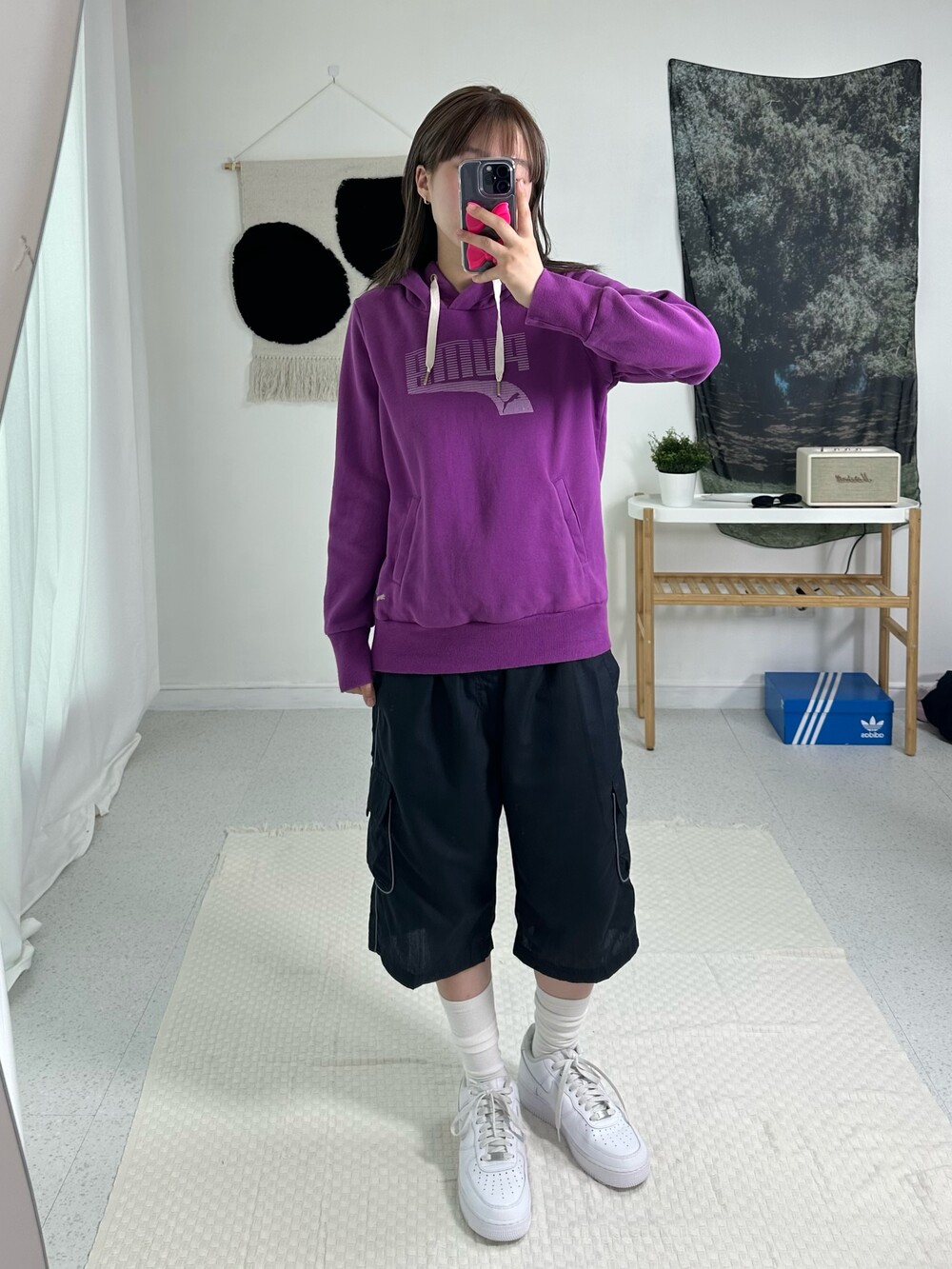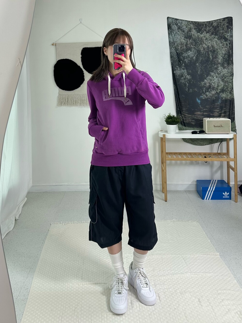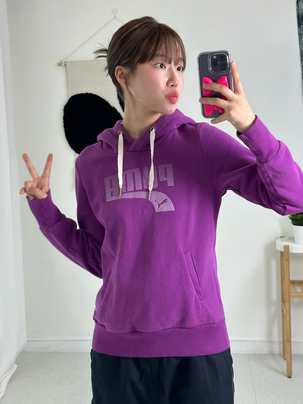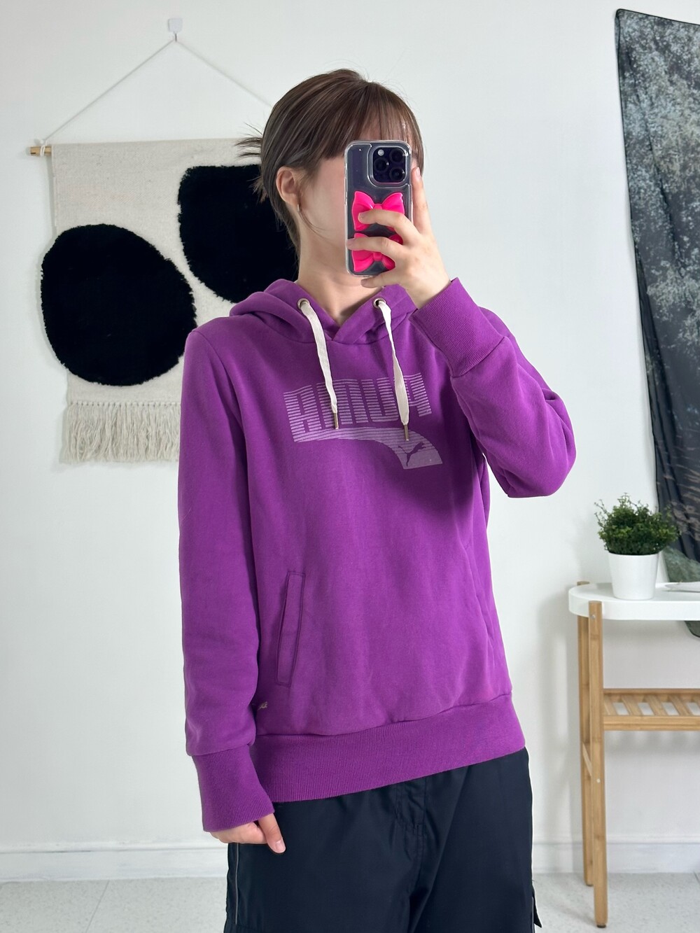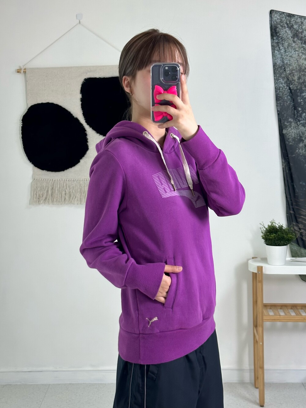 •정핏으로 떨어지는 퓨마 후드티에요! 보라색은 겨쿨이랑 완전 찰떡이라는데~~ 밑단쪽 미니퓨마 자수가 들어가 있어서 넘 귀여운거같아요👌🏻