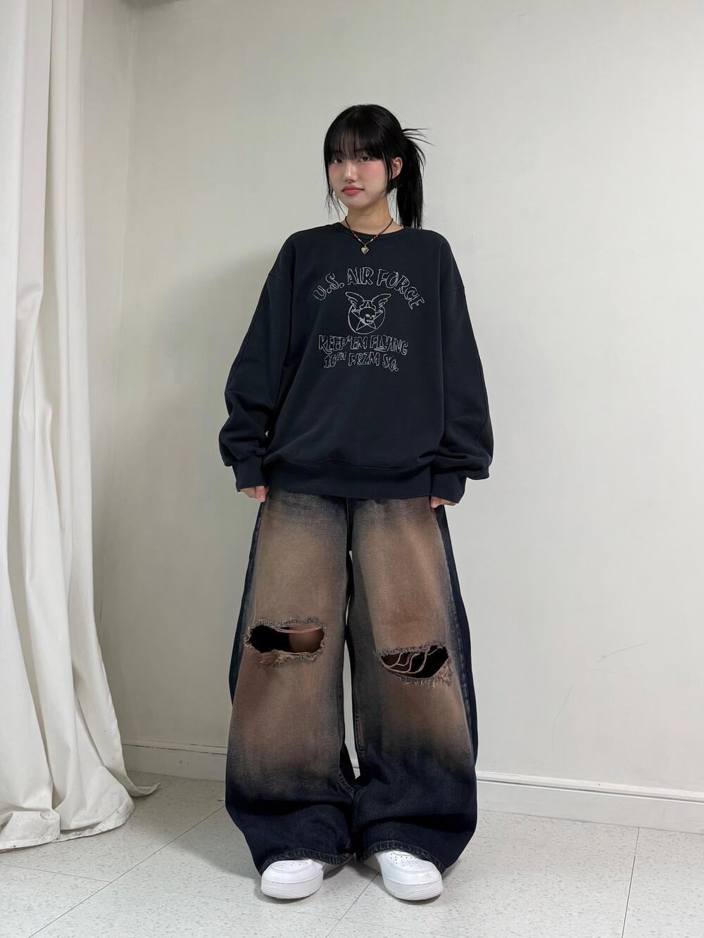 •완전 무오데깔 이잖아~~ 하면서 데리고 온 워싱 데미지 팬츠에요! 살짝 분홍빛의 워싱 덕에 더욱 빈티지스럽고, 핏은 말해뭐해 넘 예쁘죠❤️