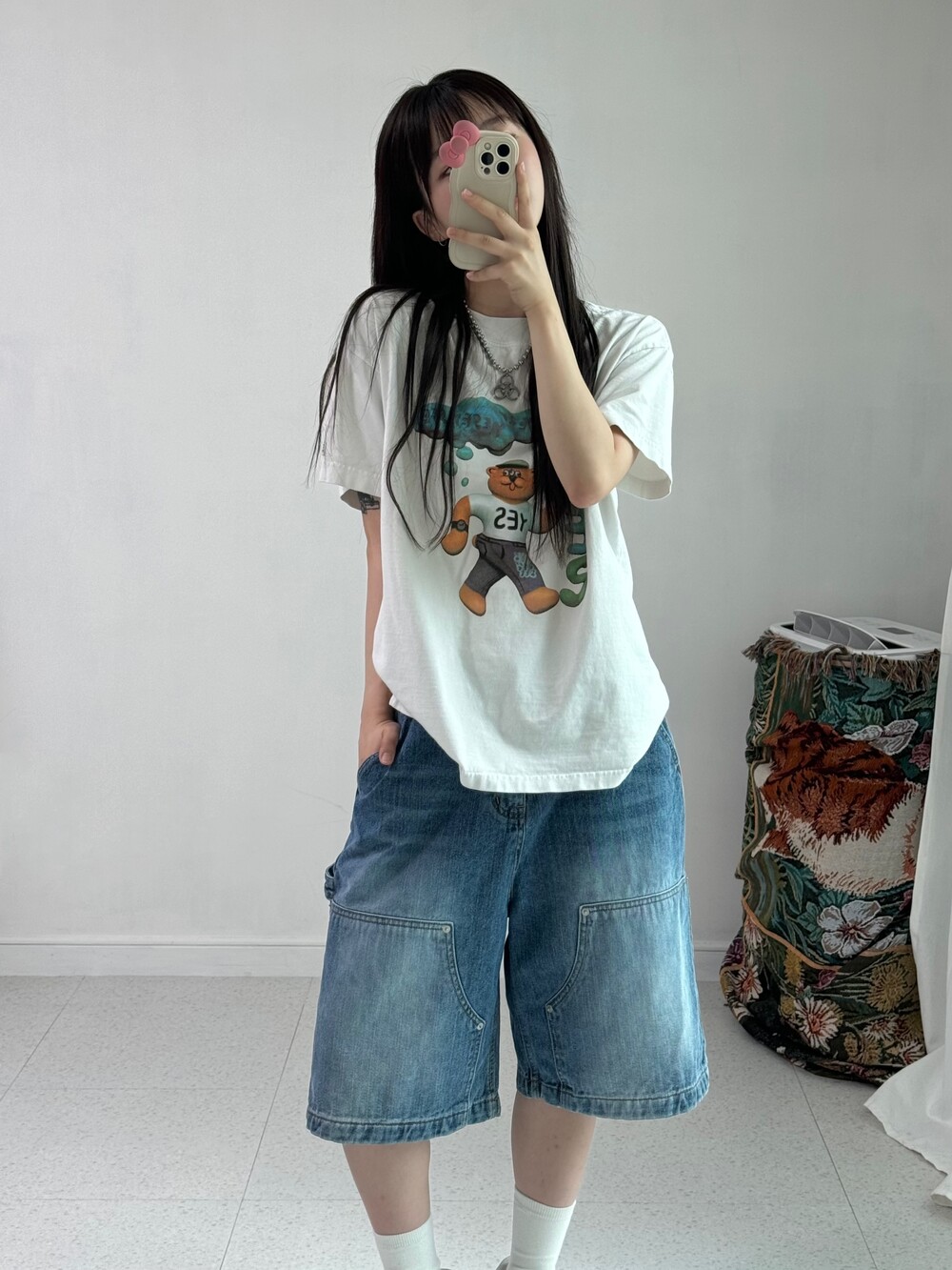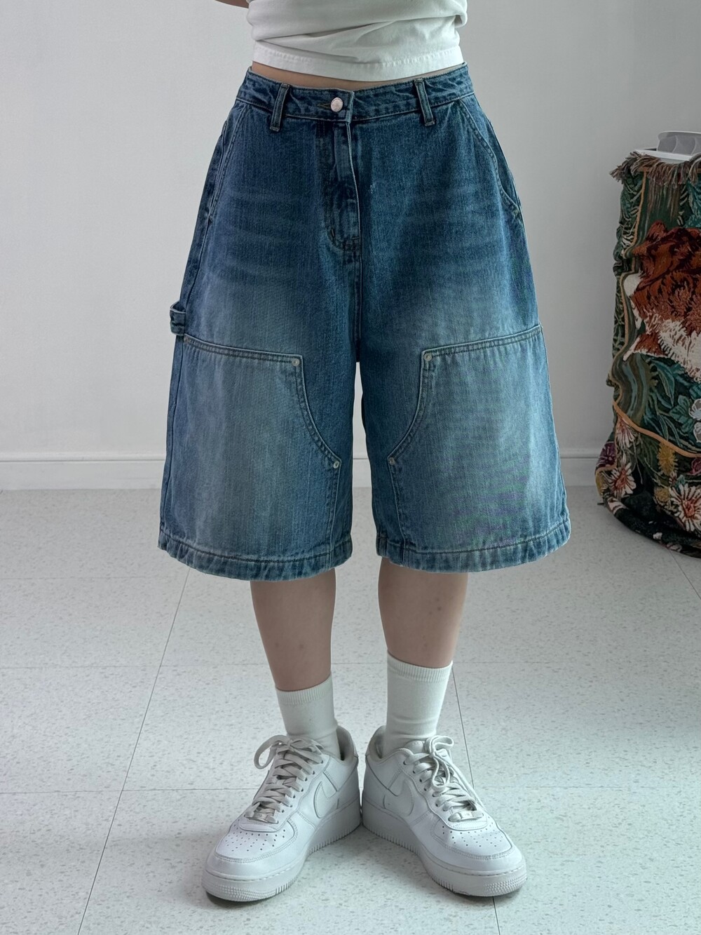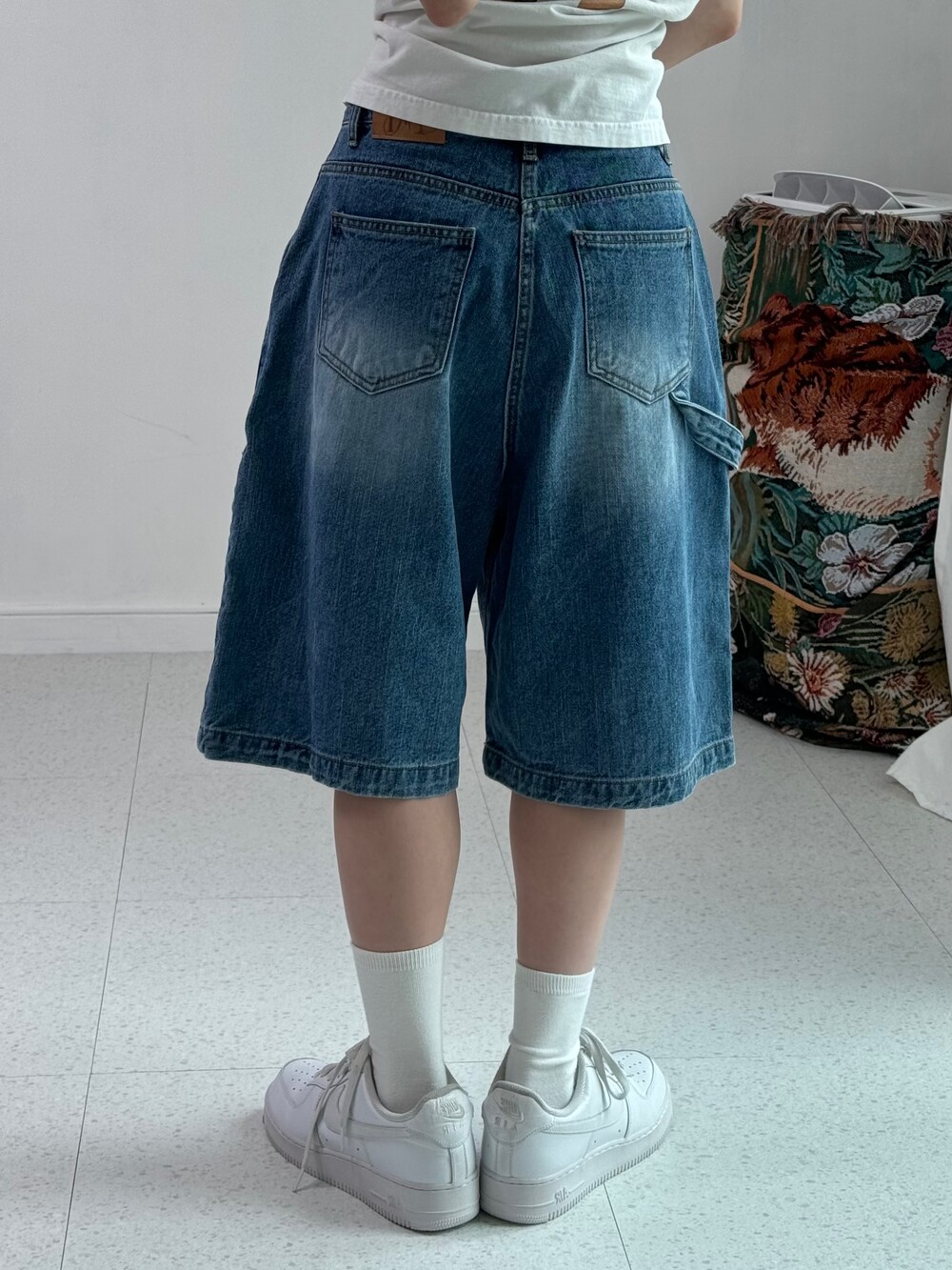 •데님원단에 워싱이 살짝 들어가 더 예쁜 버뮤다팬츠-! 카펜터 디자인이라 더 귀여워요🖤