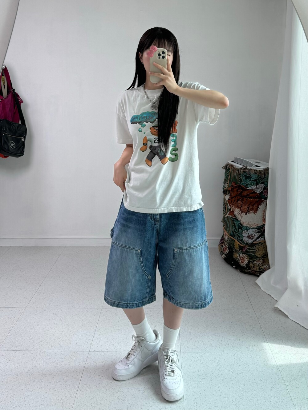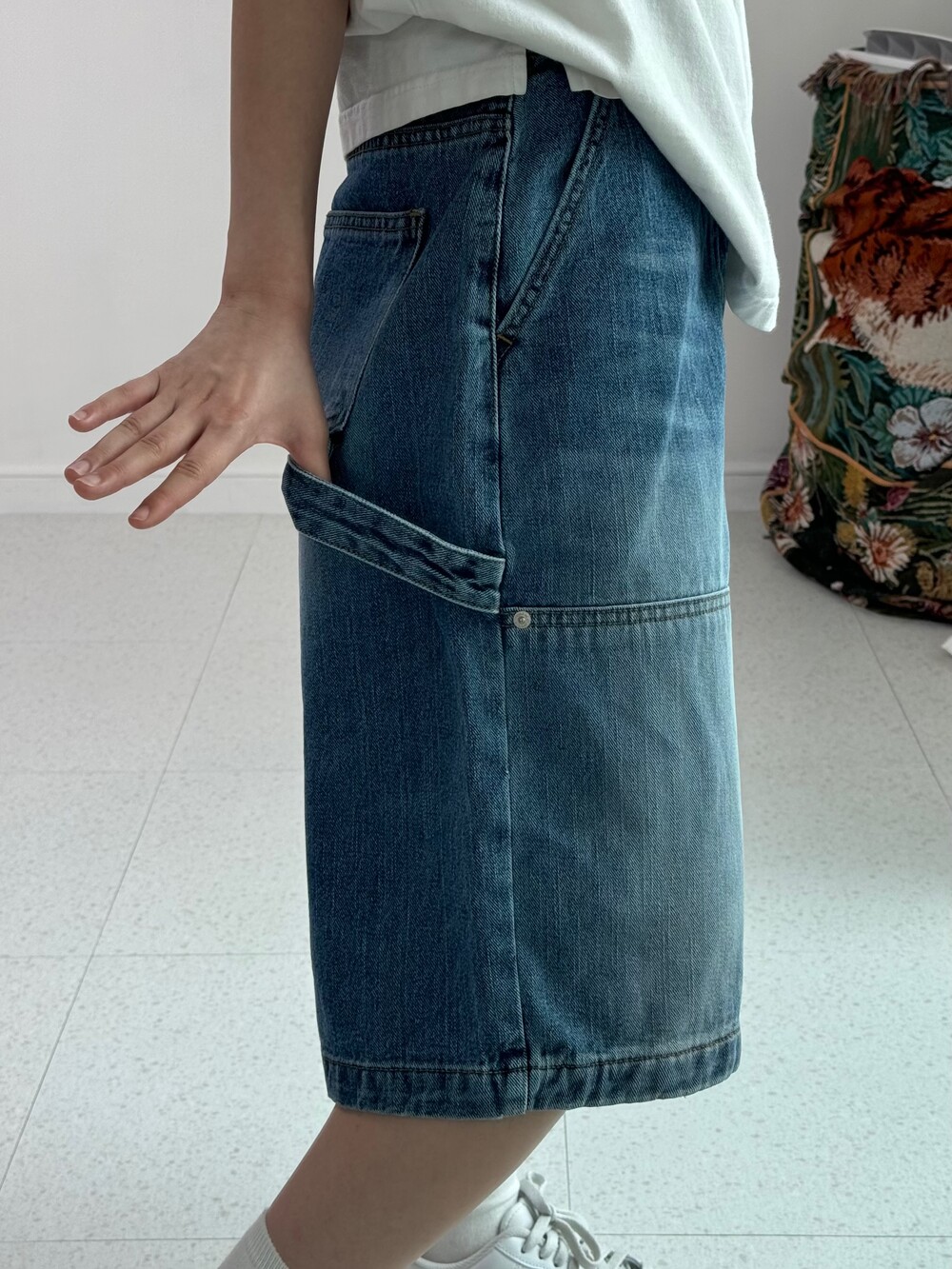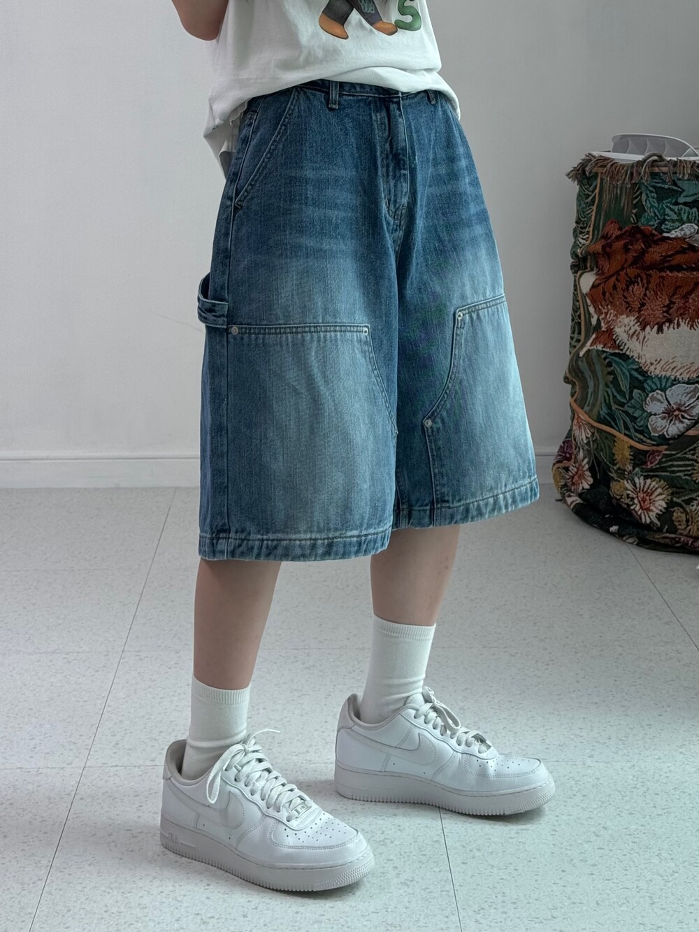 •데님원단에 워싱이 살짝 들어가 더 예쁜 버뮤다팬츠-! 카펜터 디자인이라 더 귀여워요🖤
