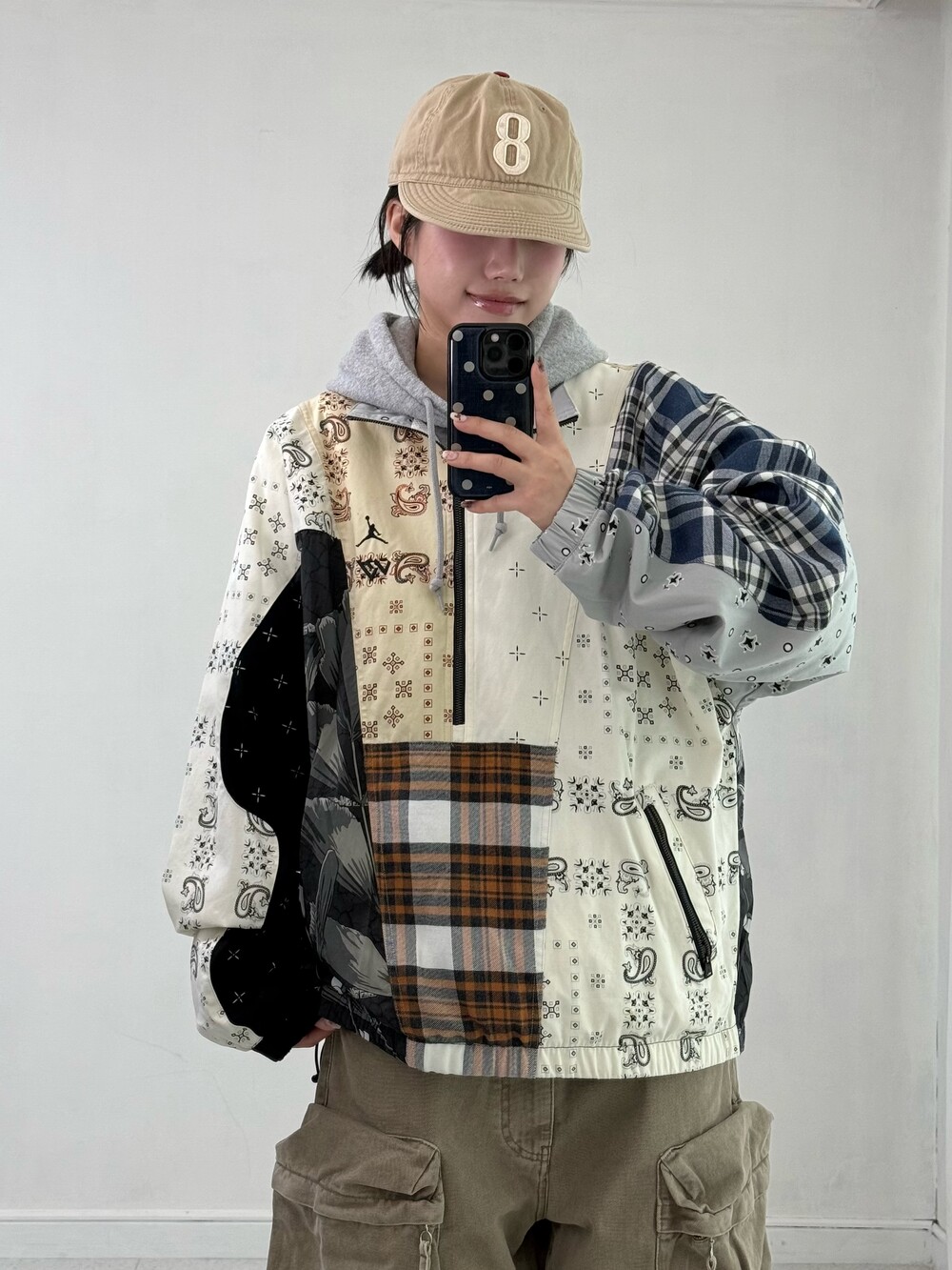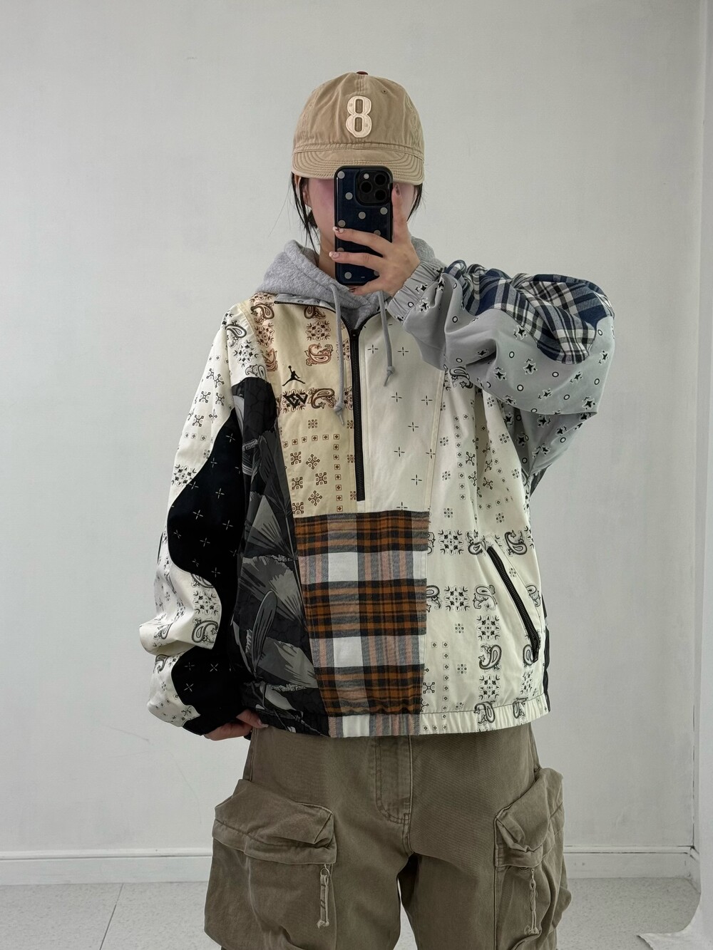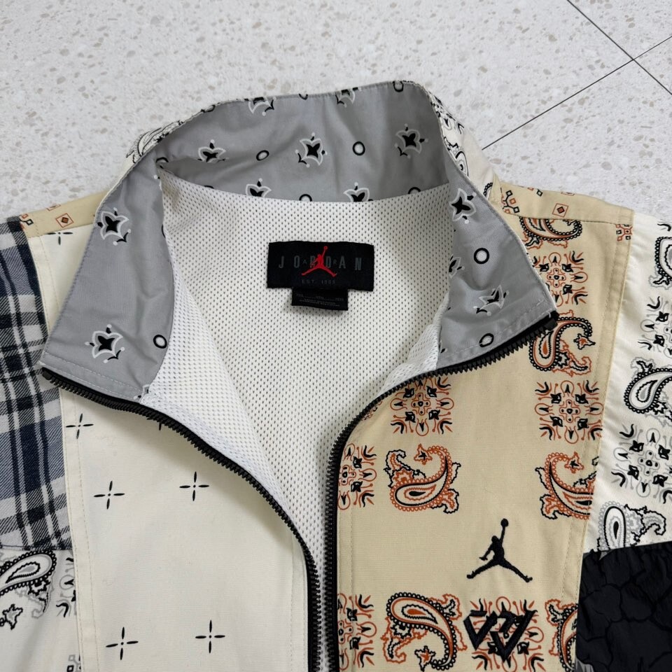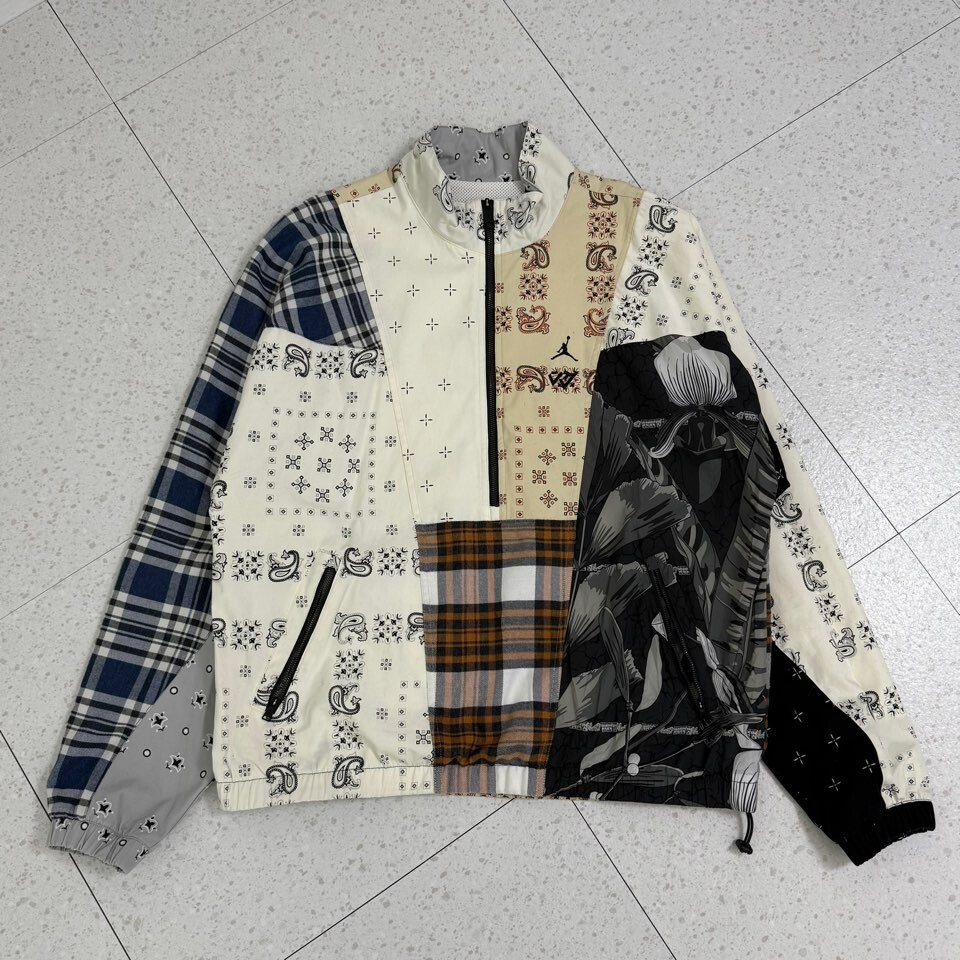 •조던x러셀 콜라보 패치워크 반집업 입니다. 현재 크림에서 리샐가로 판매되고 있는 아이템이에요! 상태 최상급,,입니다🖤