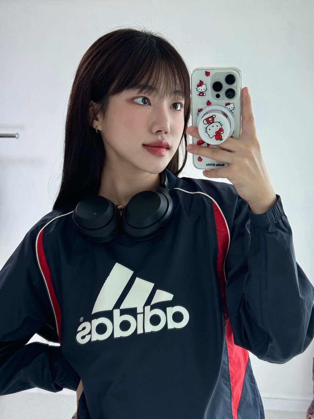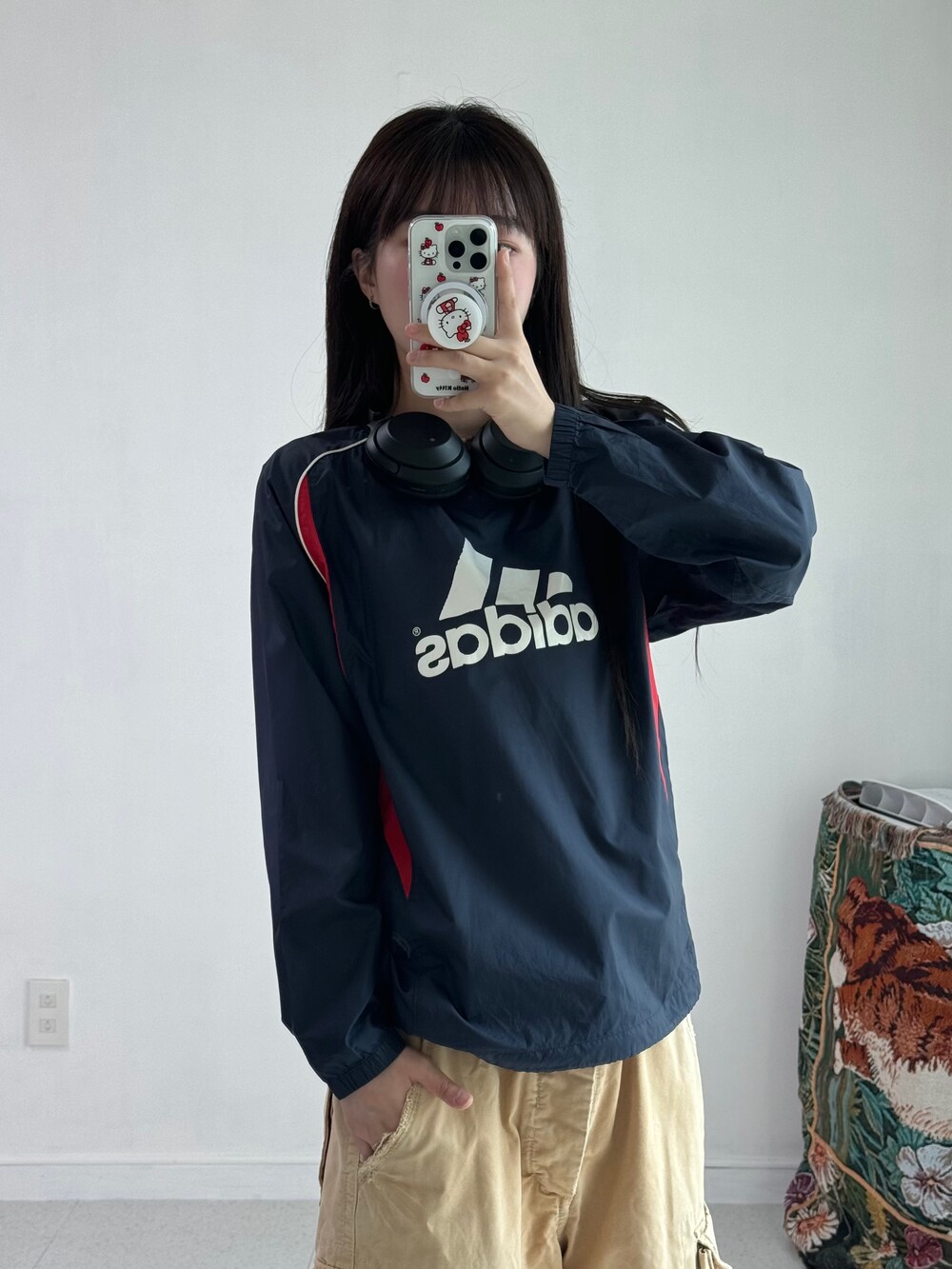 •밑단 스트링이 있어 더 크롭해서 착용할 수 있어요ㅎㅎ 큰 에센셜 로고가 넘 귀엽숩니닷