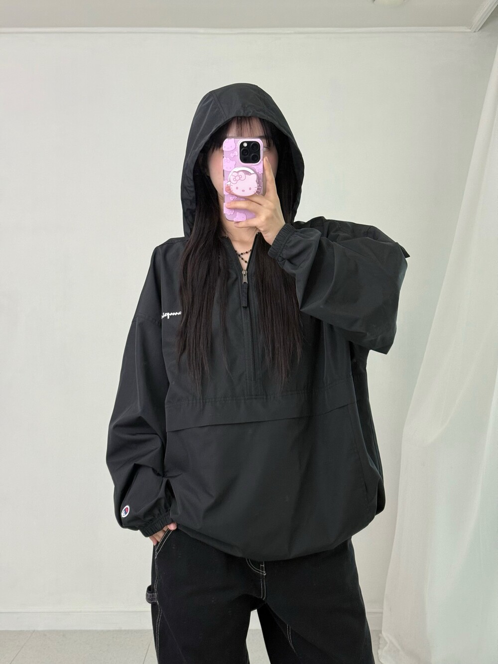 •후들후들한 핏의 챔피온 반집업이에요! 밑단 조절도 가능해서 원하시는대로 연출도 가능하구 휘뚤마뚤 입어주시기 좋은 기본템이랍니다<3