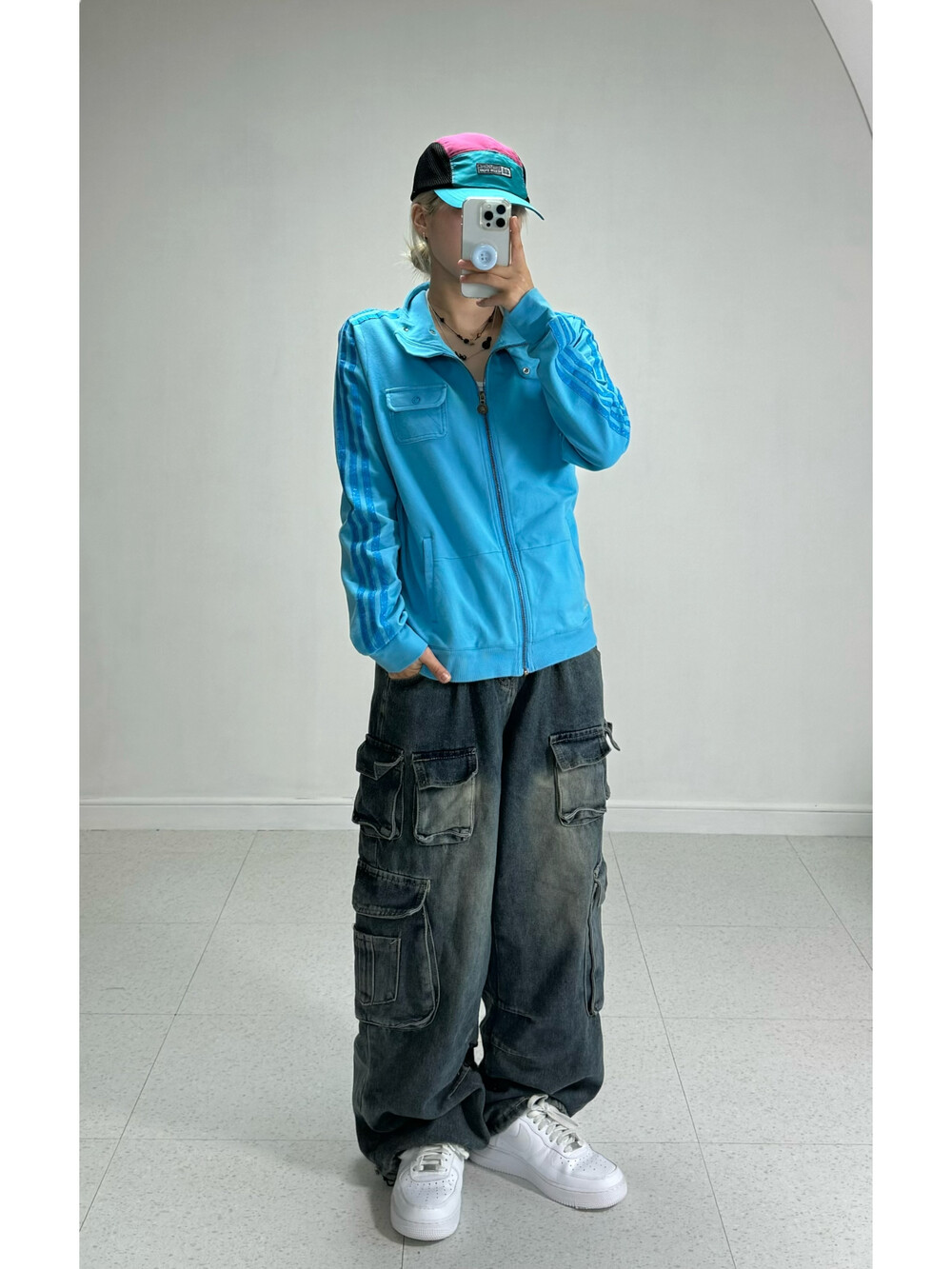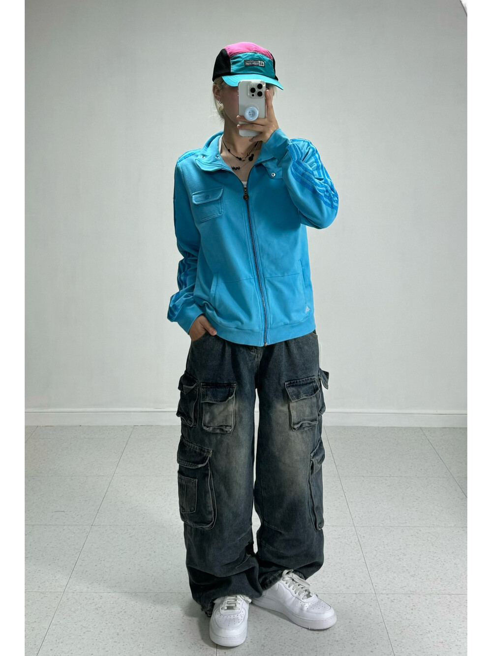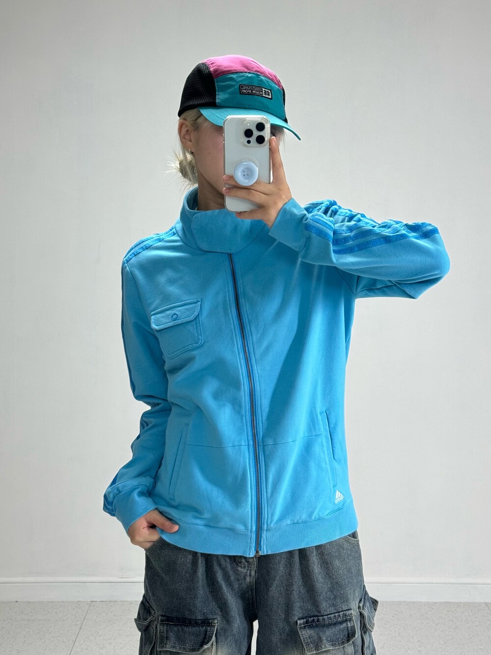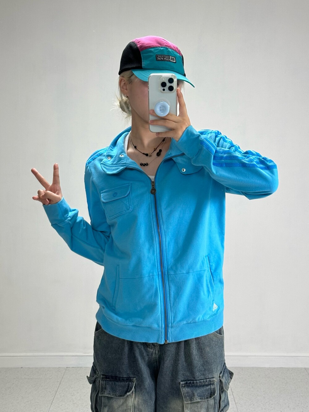•지인짜 너무 예쁜 스카이블루 아디 집업이에요! 폭닥한 컬러감과 말라걸로 만들어주는 핏감👍🏻