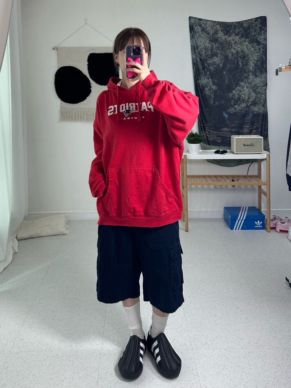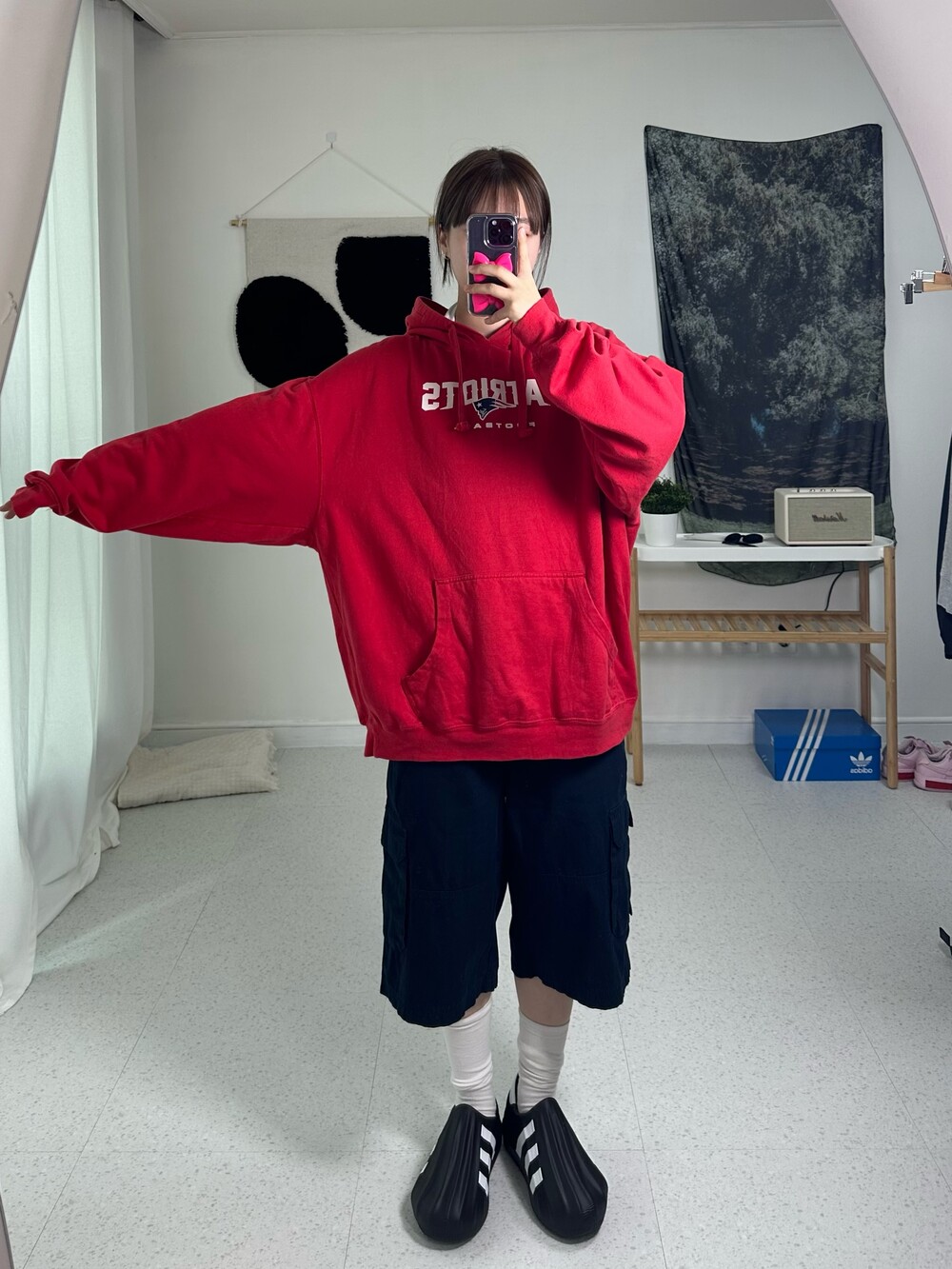 레드하면 무조건 블랙이랑 입어야지 했습니다만,, 다크한 네이비랑 입어주는게 더 잘어울리는 느낌은 무엇일까요?.. ❤️ 릴스에도 올라온 요 제품 ! 제가 그만큼 자신있는 후드에요>,<