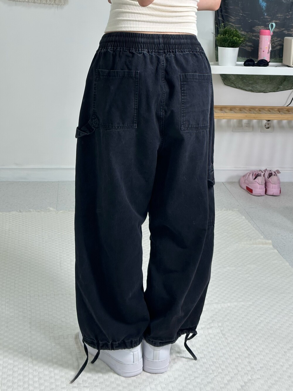 •흑청 벌룬팬츠 라고 보시면 됩니다! 길이감이 짧게 나와 요정 식구님께서 겟 하시는게 좋을것같아요! 바지 자체는 넘 예쁜데 저에게 짧아서 어화둥둥(?) 느낌으로 떨어지는데 원래 굉장히 예쁜 벌룬핏으로 떨어지는 제품이고, 카펜터 디자인으로 나와서 더 유니크 하답니다! 히히