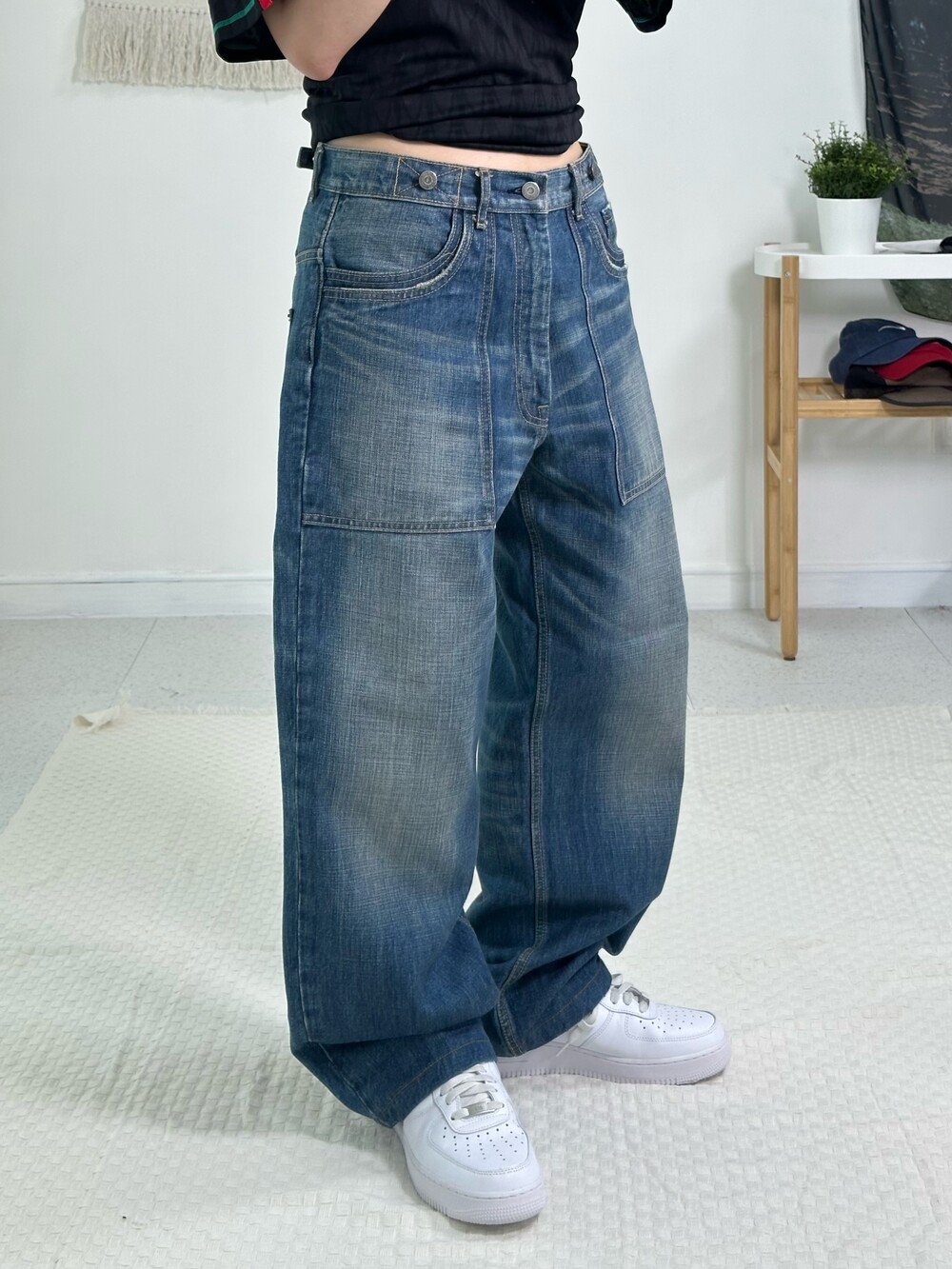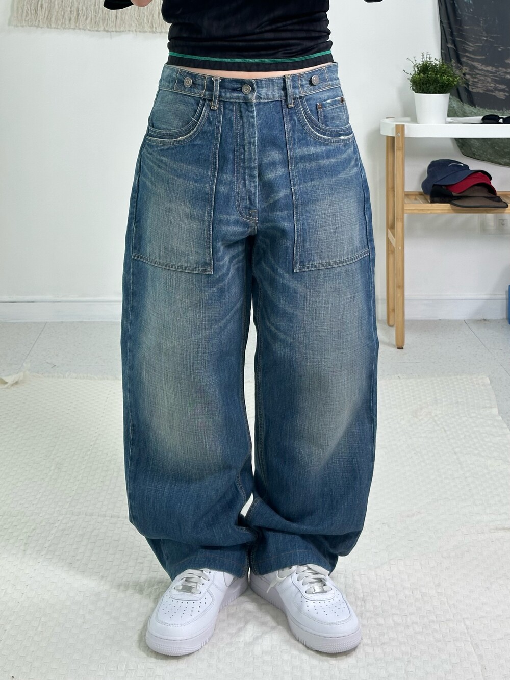 •묵직하면서 와이드 아방방한 데님 찾으시는분,?., 무조건 자신있게 강추드리는 제품이에요! 처음보는 디자인과 디테일, 무오데에서 너무나 사랑하는 핏까지! 사계절 내내 착용하셔도 되구요:) 상의로 살짝 핏한거 입어주시면 조금 더 러블리힙st 으로 착용하기 좋아요!