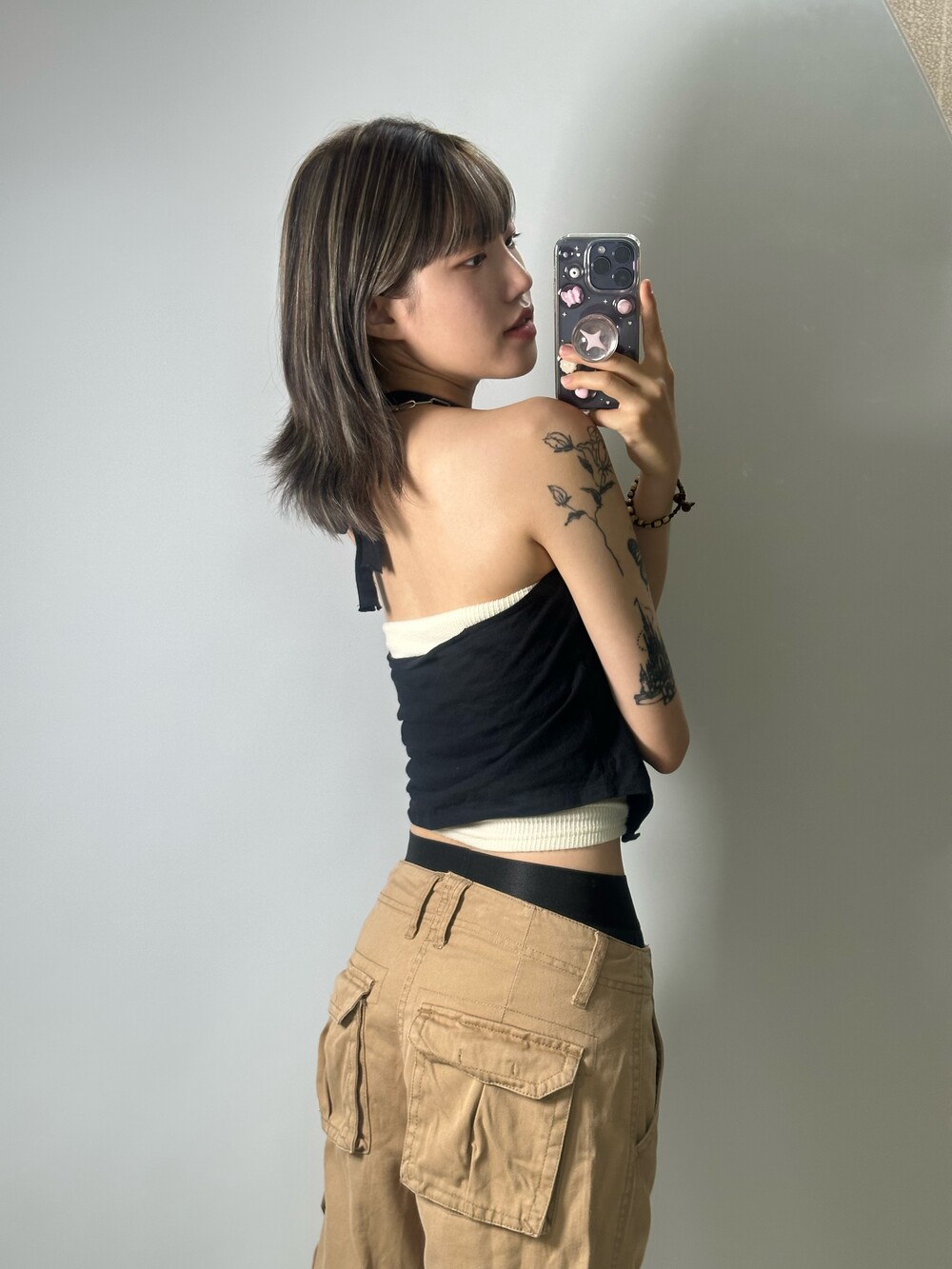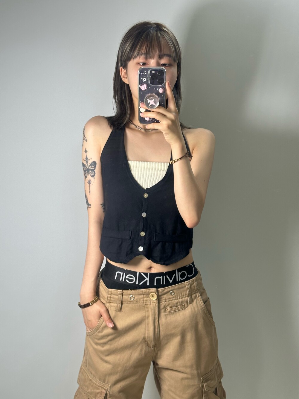 •레이어드 하기 좋은 아이템🖤 홀터넥 디자인이라 유니크하고 훨씬 고급스러운 느낌이에요! 여름엔 단독으로 가을 겨울엔 레이어드로 착용해주기 좋은 사계절용 제품 입니다아🤤🖤