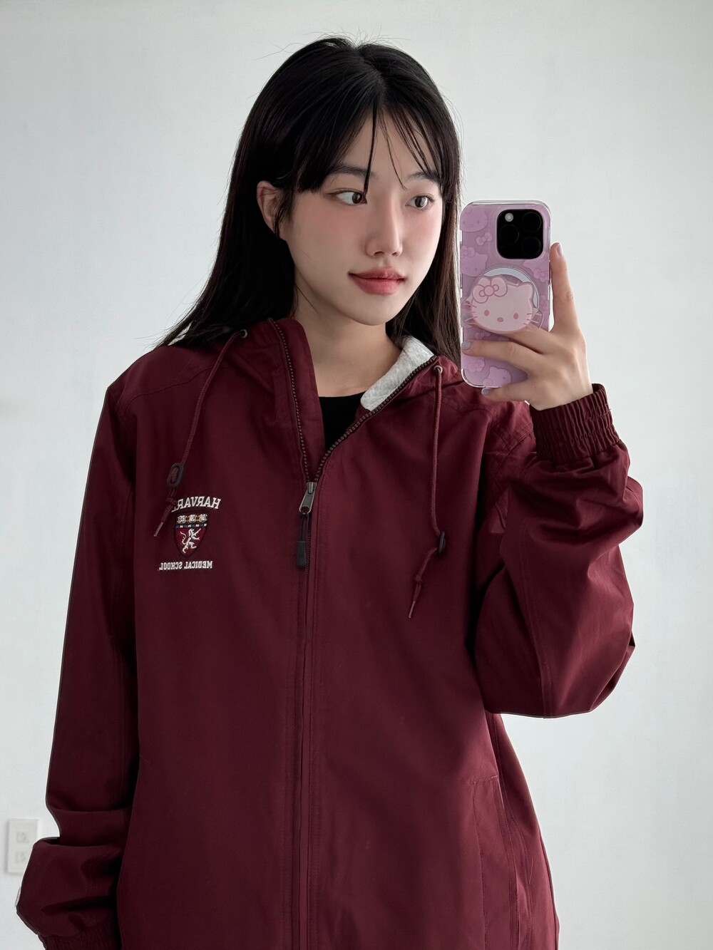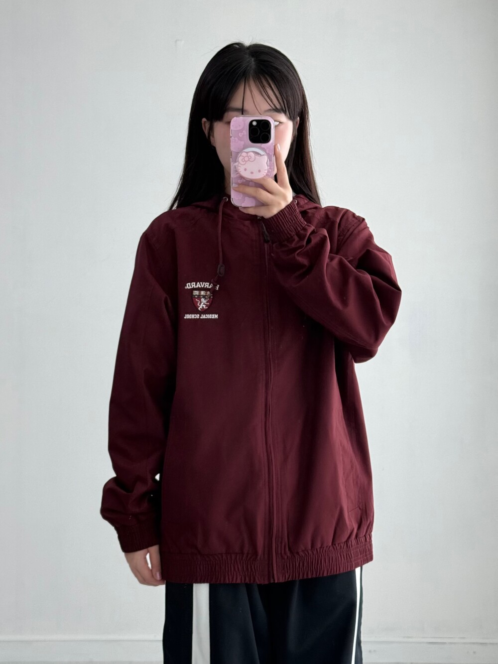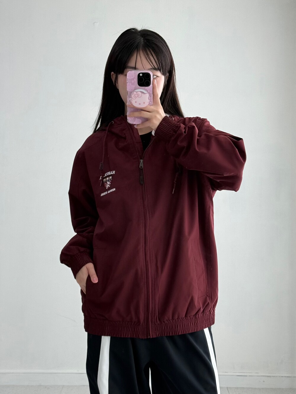 •챔피온 버건디 후드자켓 이에요! 가볍게 걸쳐주시기 좋은 두께감에 아방루즈하게 입어주시기 좋은 아우터에요. 평소 귀여운룩을 연출하시는 분들께 추천드려봅니다>,<