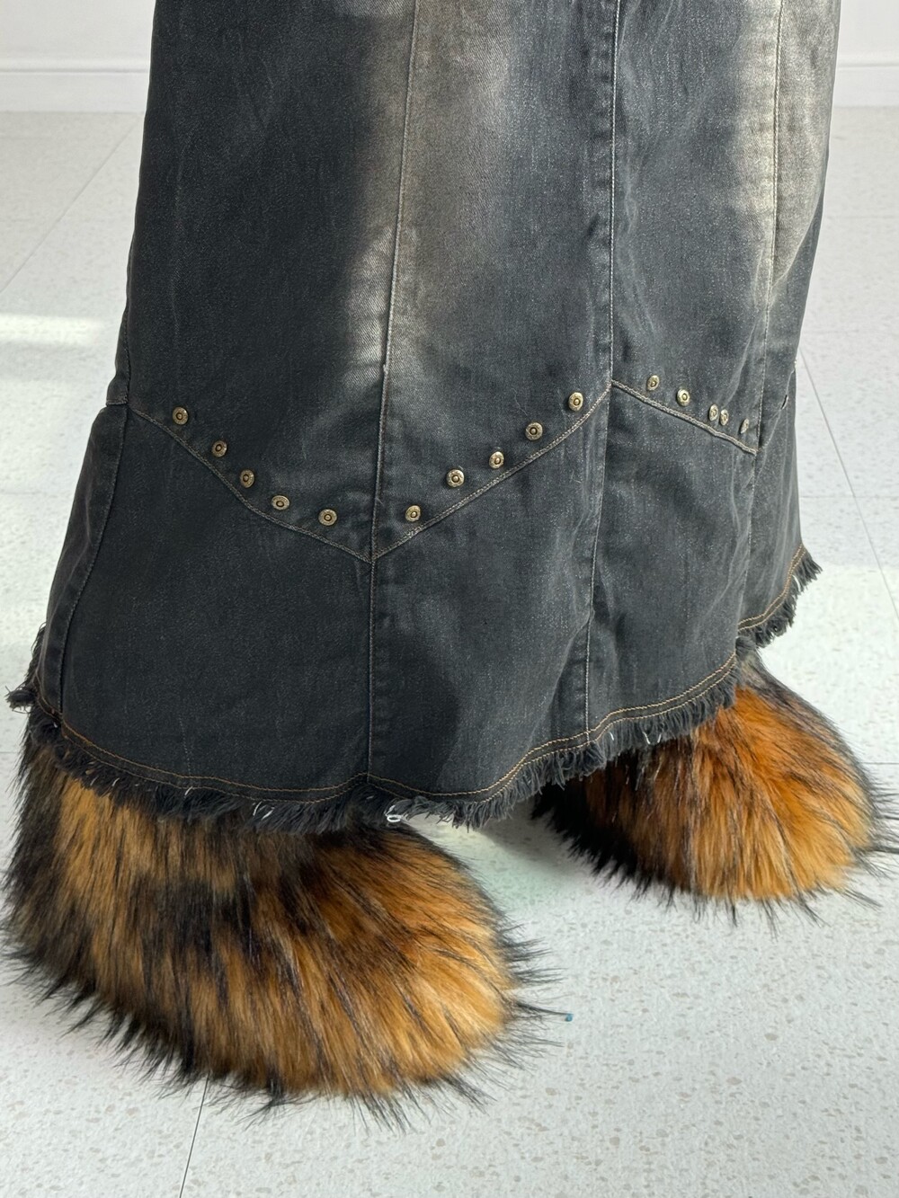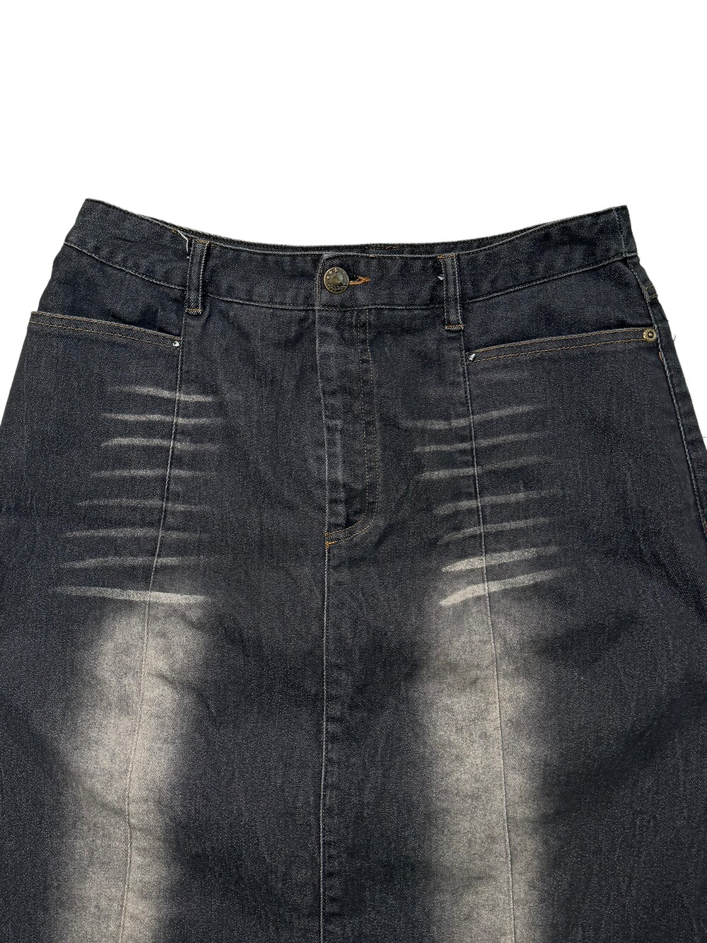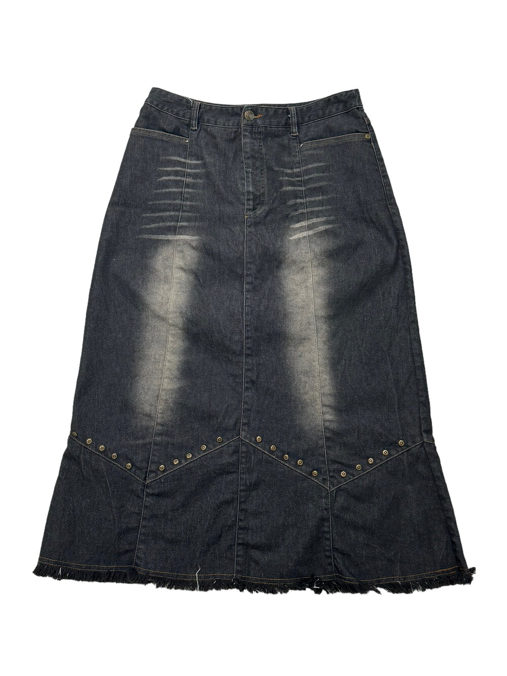 •전체적인 색감은 블랙에 워싱이 들어간 빈티지 스커트 라고 생각해주시면 됩니다! 밑단쪽에 디테일과 빈티지한 찡이 박혀있어 더욱 멋스러운 스커트에요 🖤