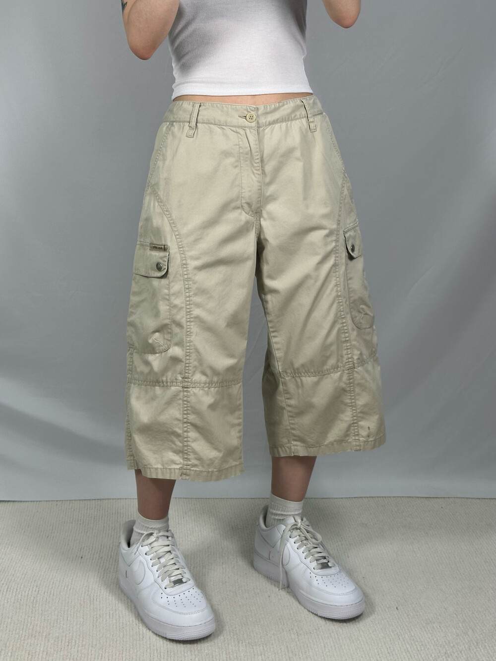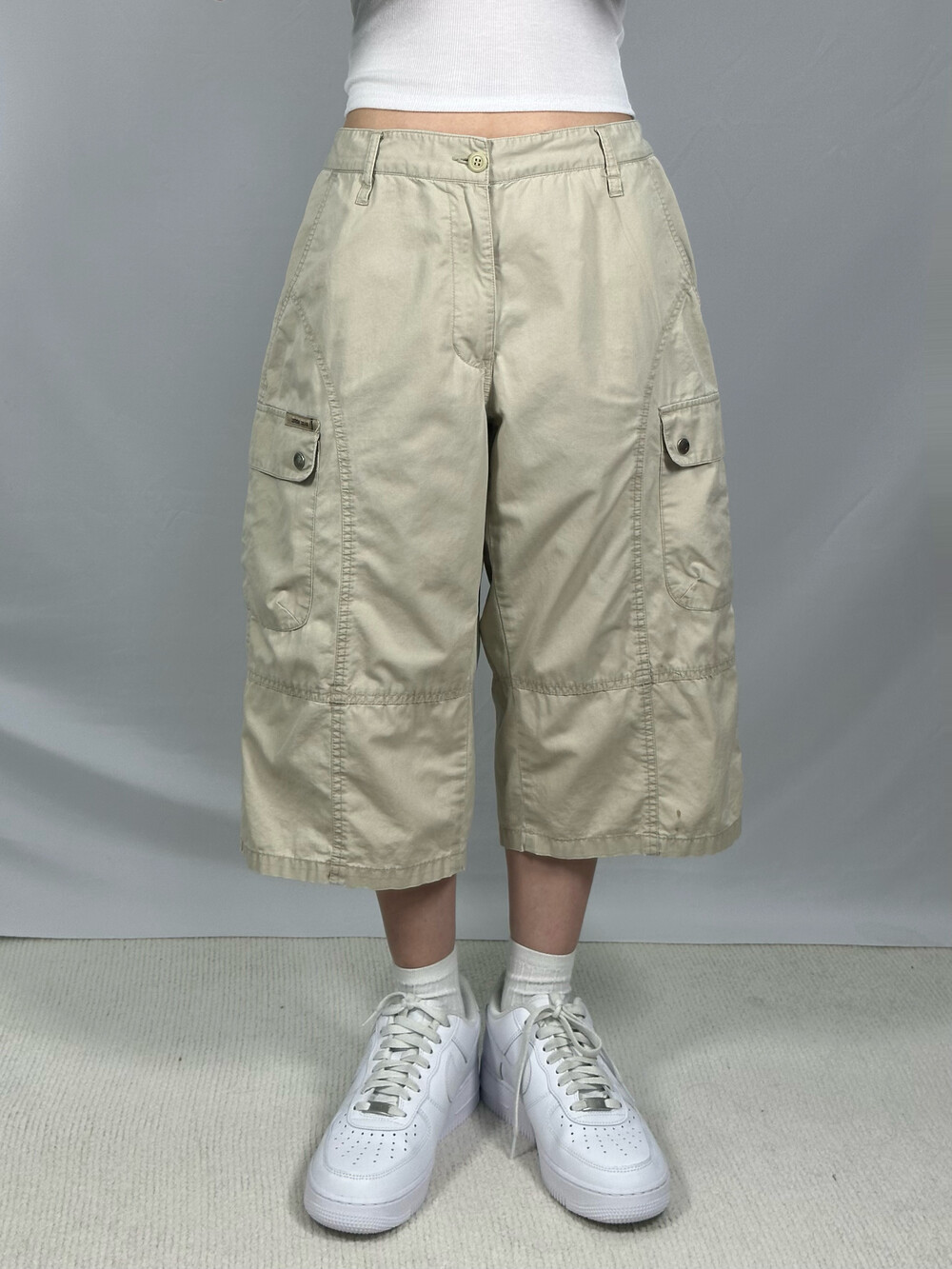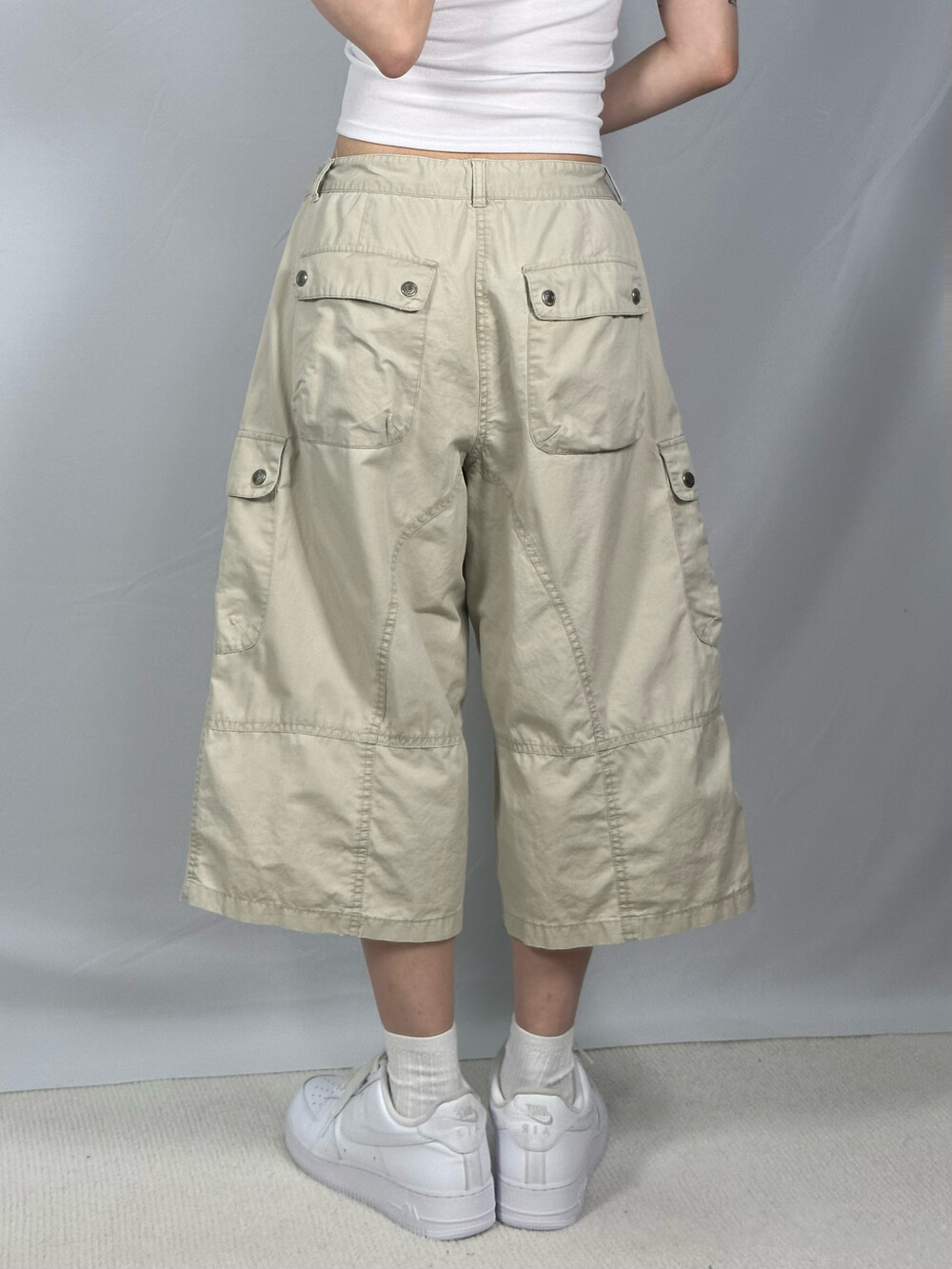 •아이보리 컬러의 루즈핏 반바지에요!스티치 디테일이 들어가 있는 디자인이 너무 예쁜거 있죠!