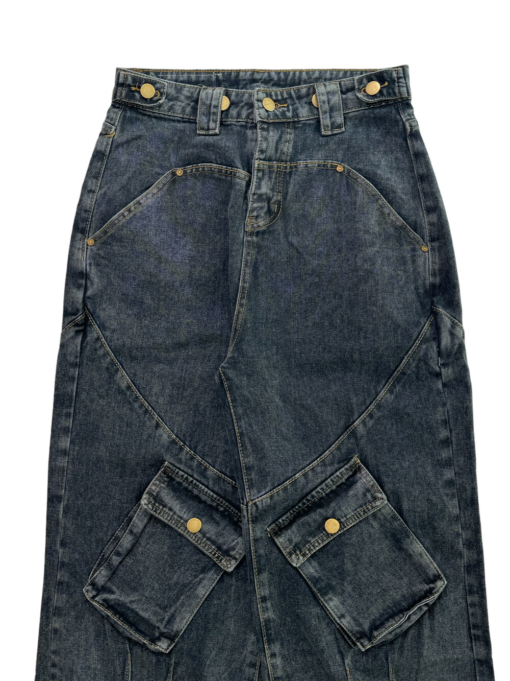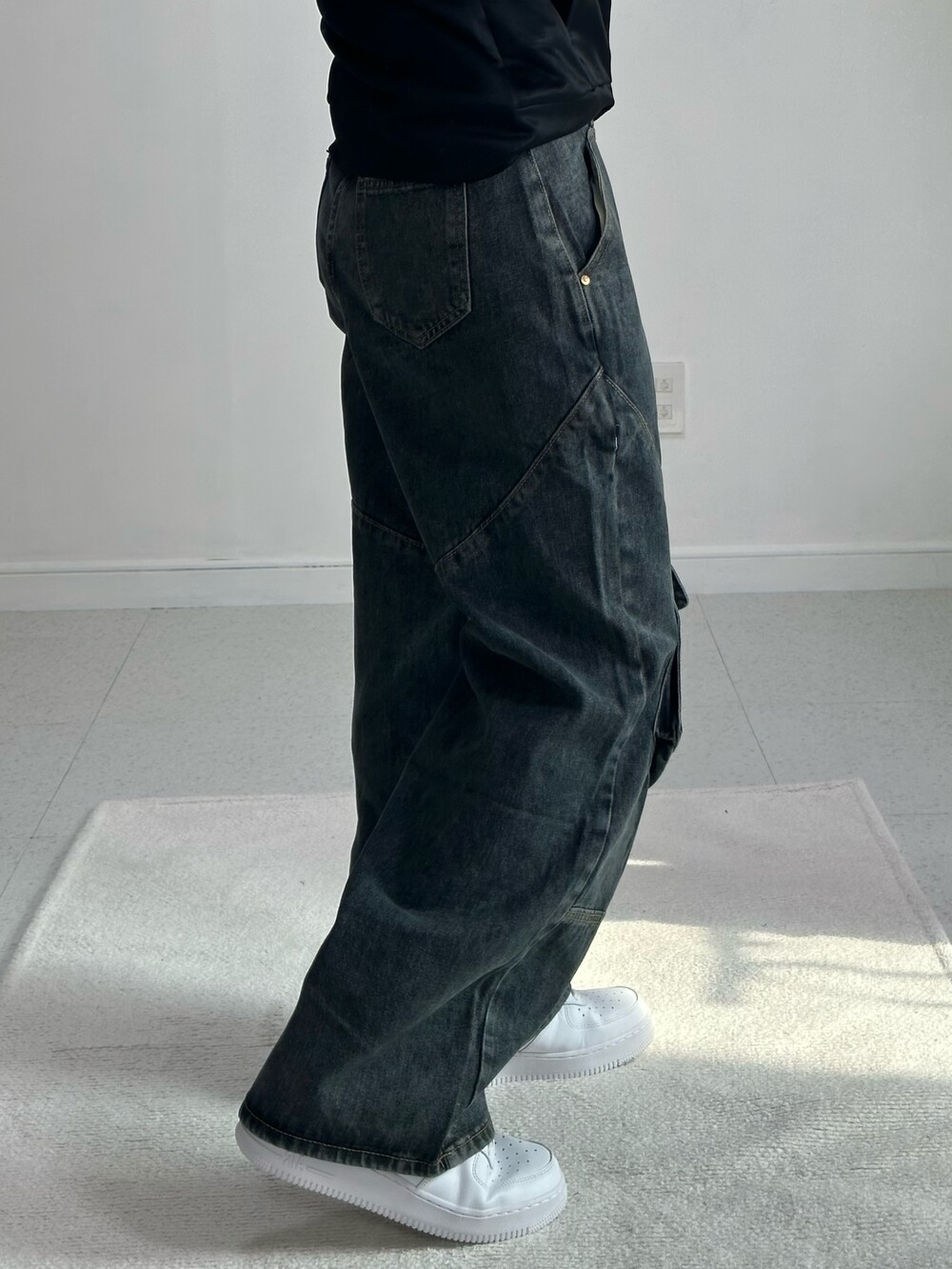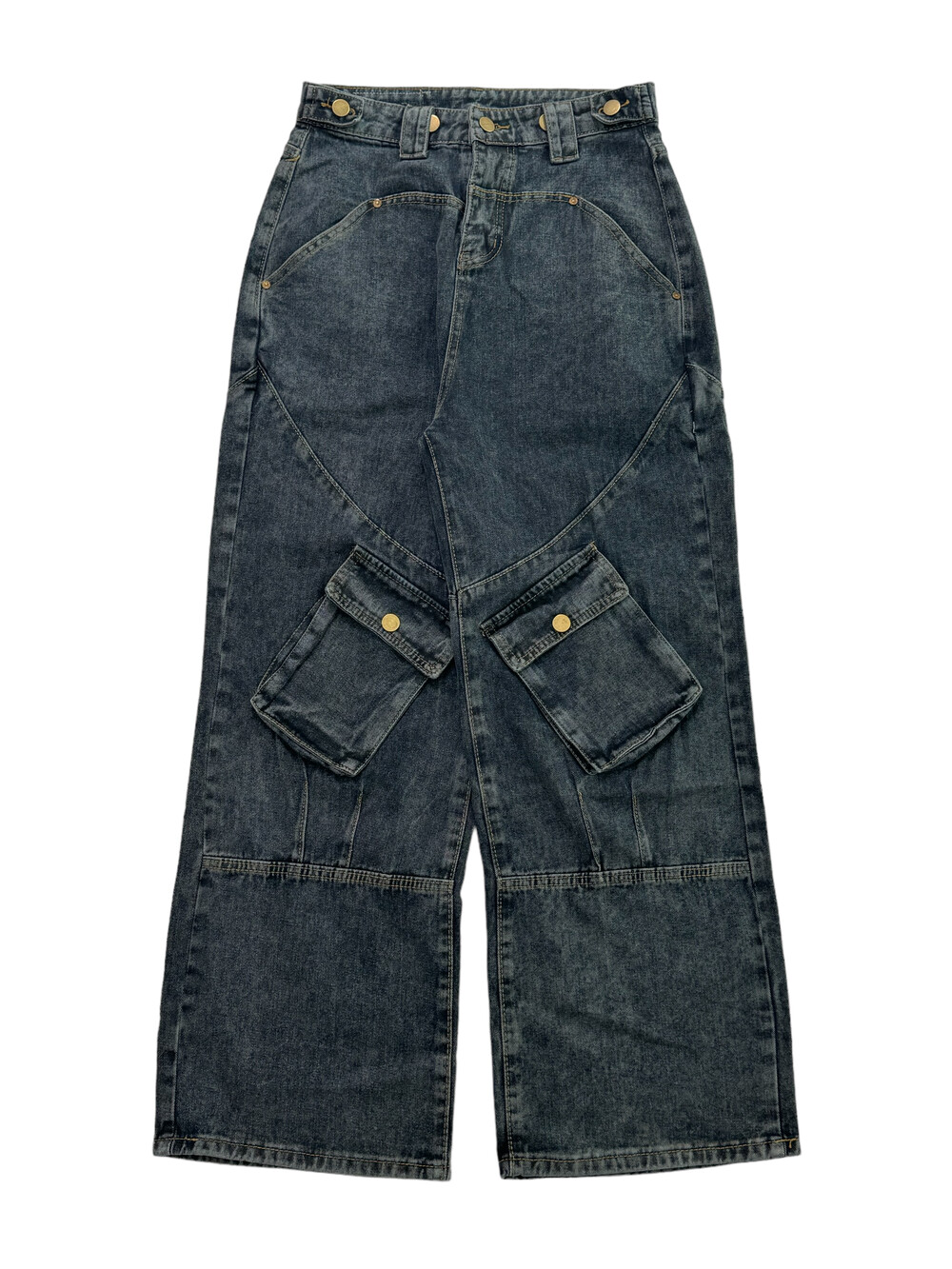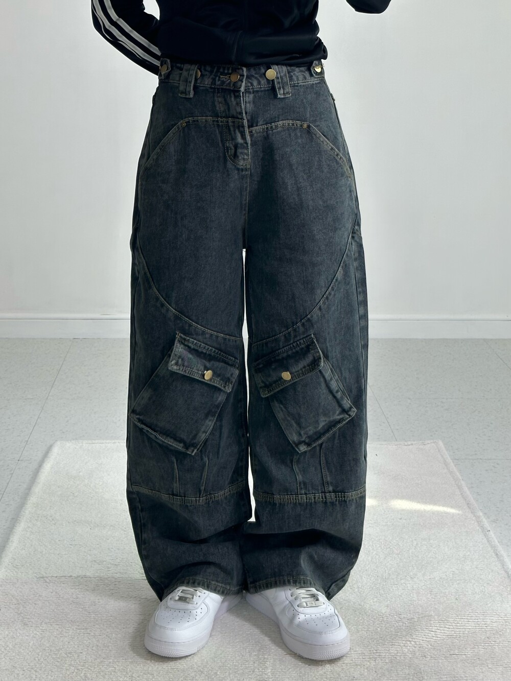 •흑청 미니포켓 포인트 카고에요! 무릎쪽에 포켓이 들어가있어 독특하고 포인트로 착용해주기 좋습니닷