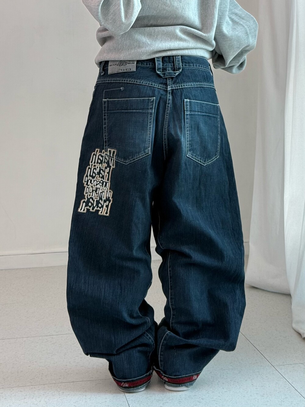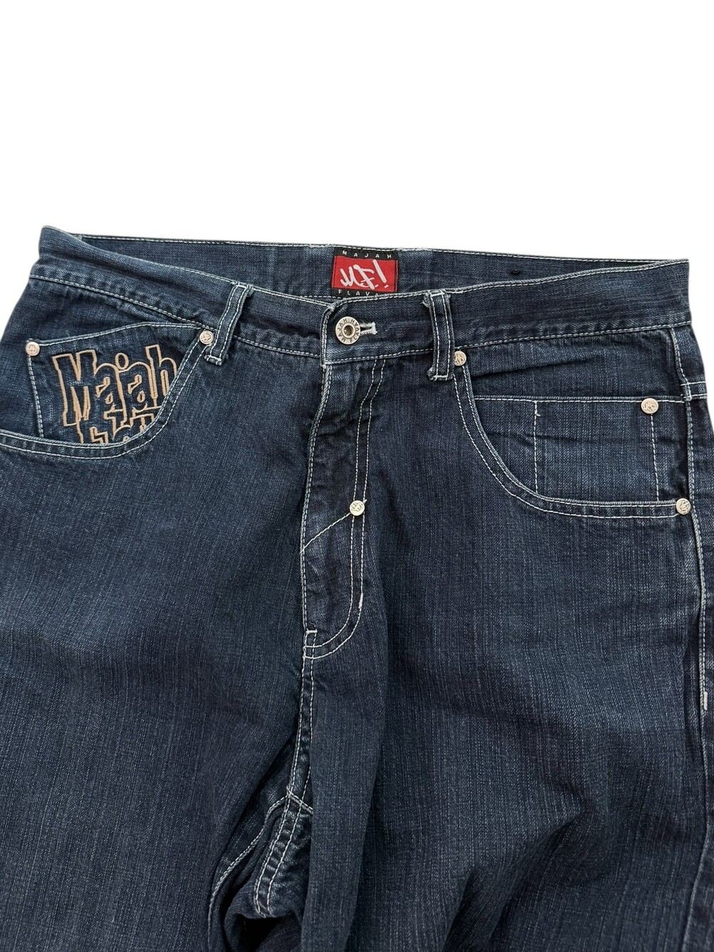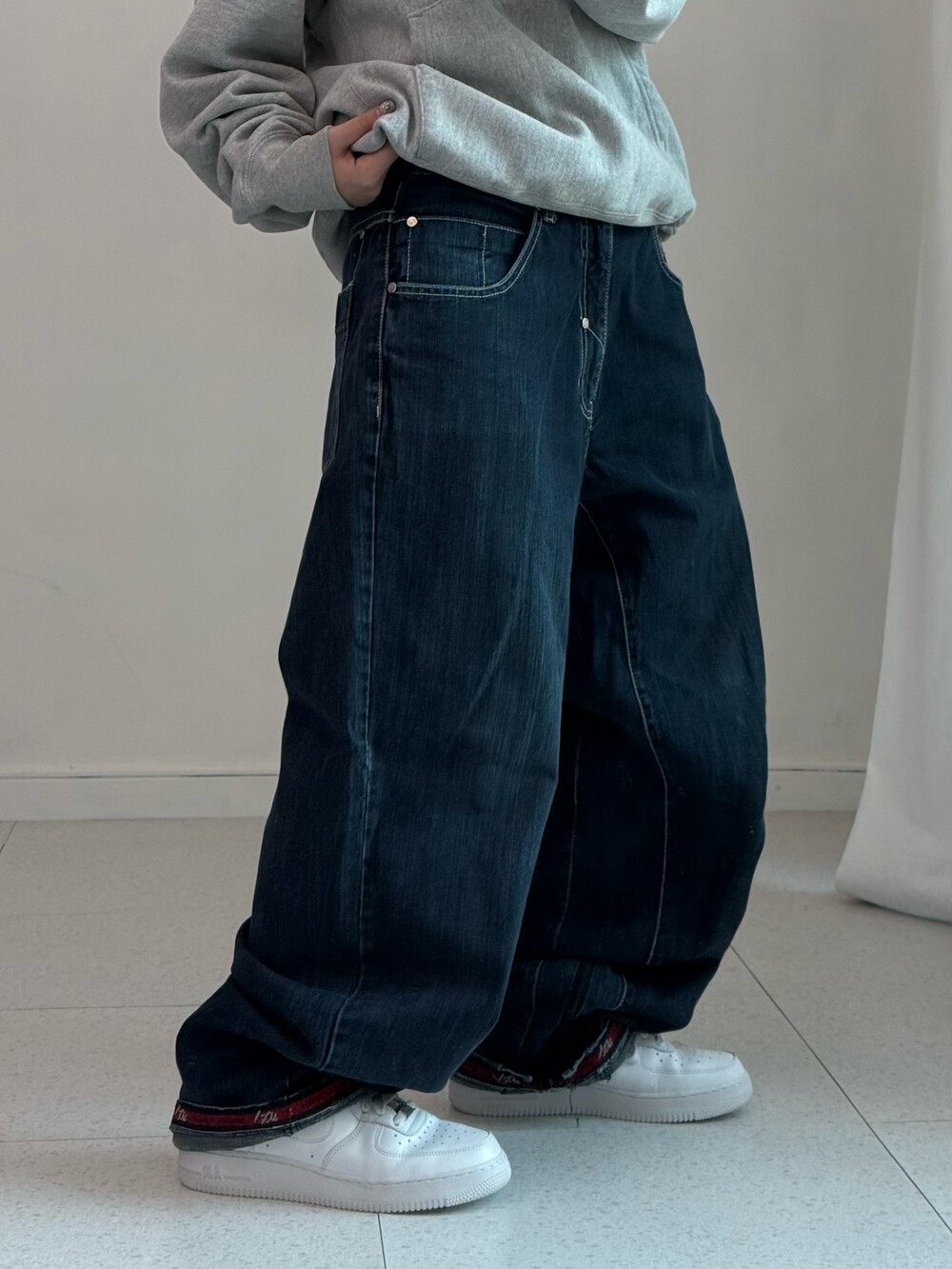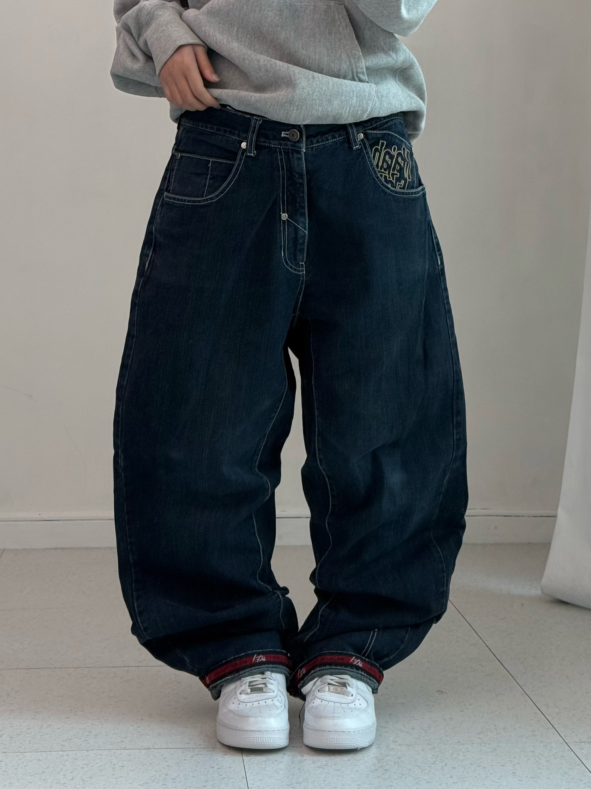 •마자플라바 데님팬츠 입니다! 앞 주머니와 엉덩이 자수 디자인 봐주세요, 넘 귀엽져!!! 밑단 살짝 접어주시면 귀여운 포인트가 들어가있어서 더욱 추천!