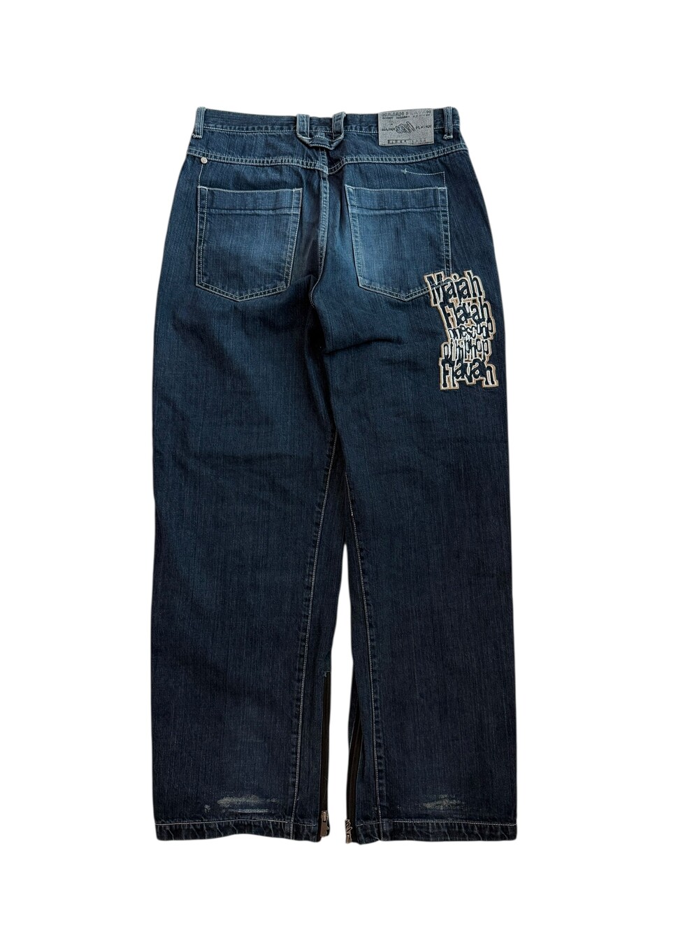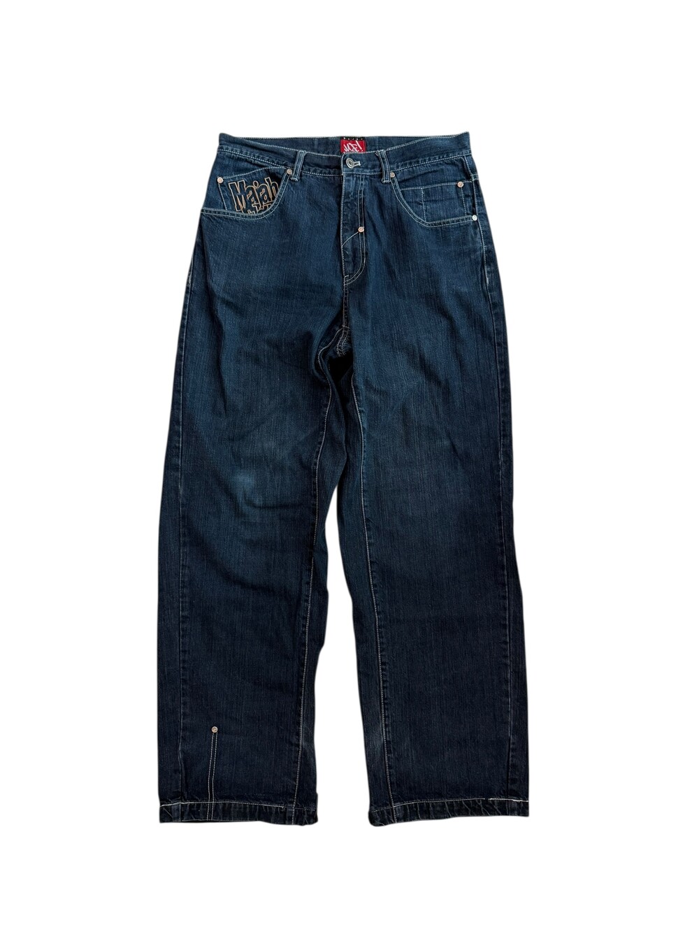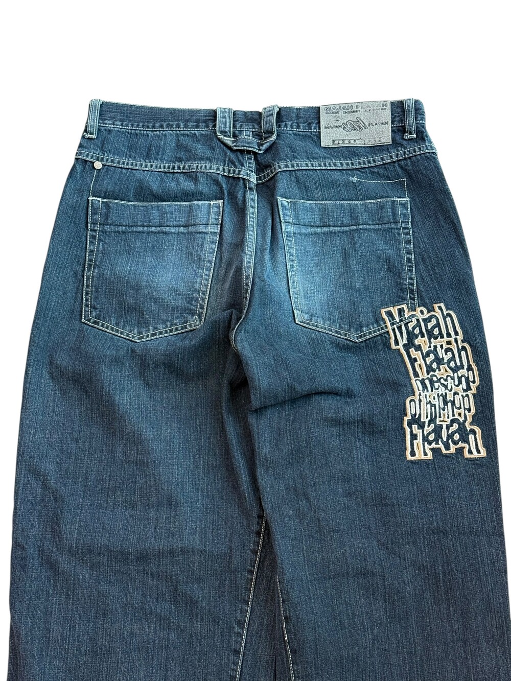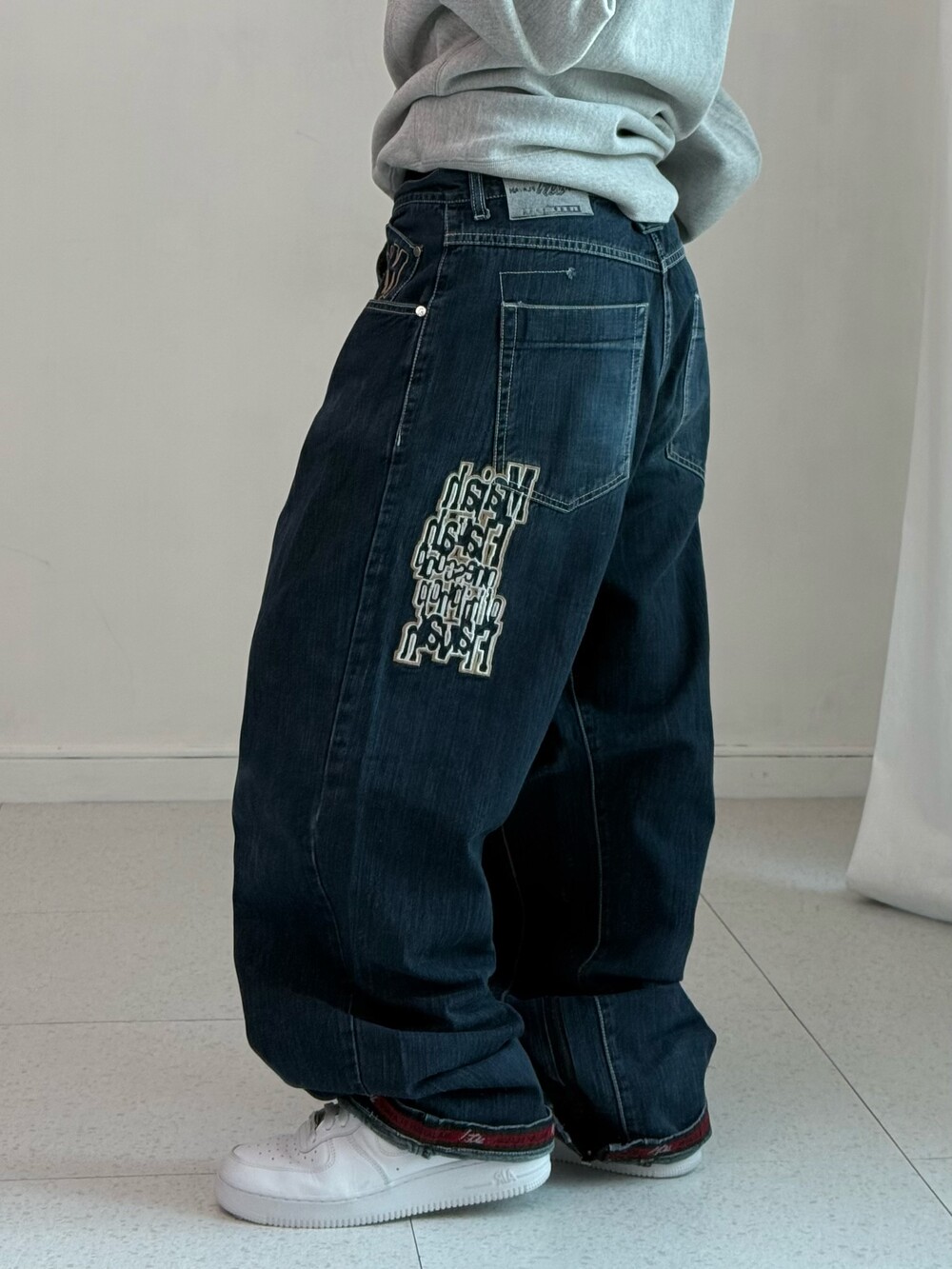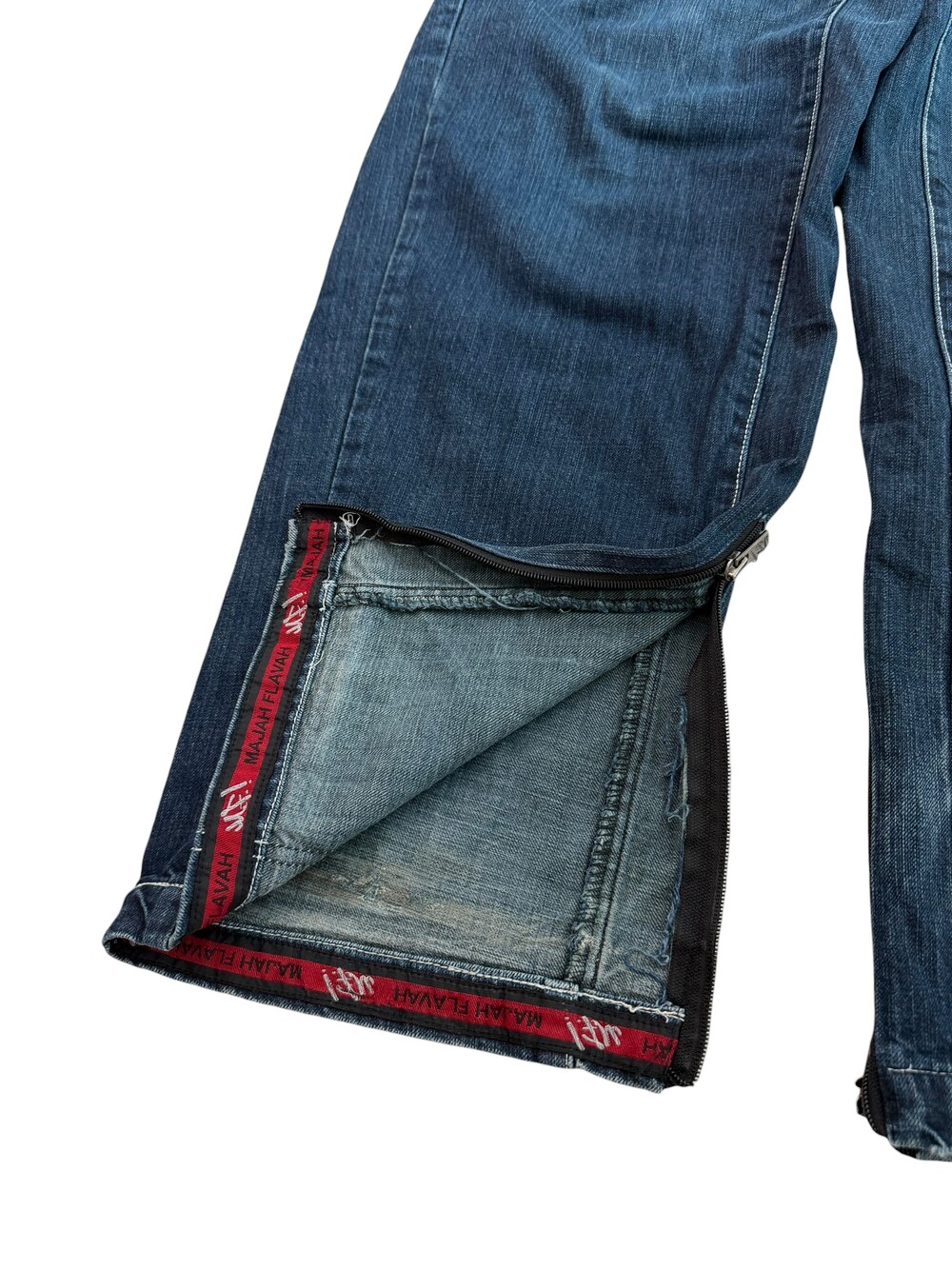 •마자플라바 데님팬츠 입니다! 앞 주머니와 엉덩이 자수 디자인 봐주세요, 넘 귀엽져!!! 밑단 살짝 접어주시면 귀여운 포인트가 들어가있어서 더욱 추천!