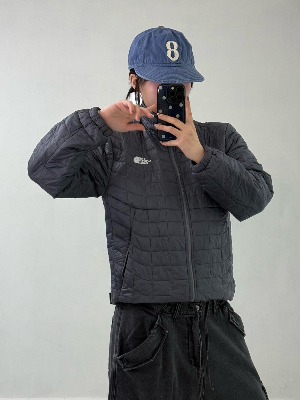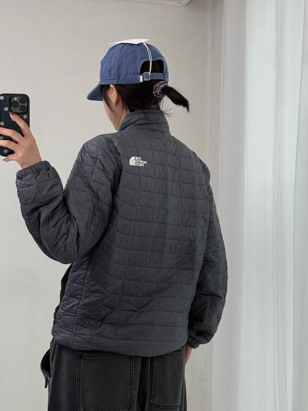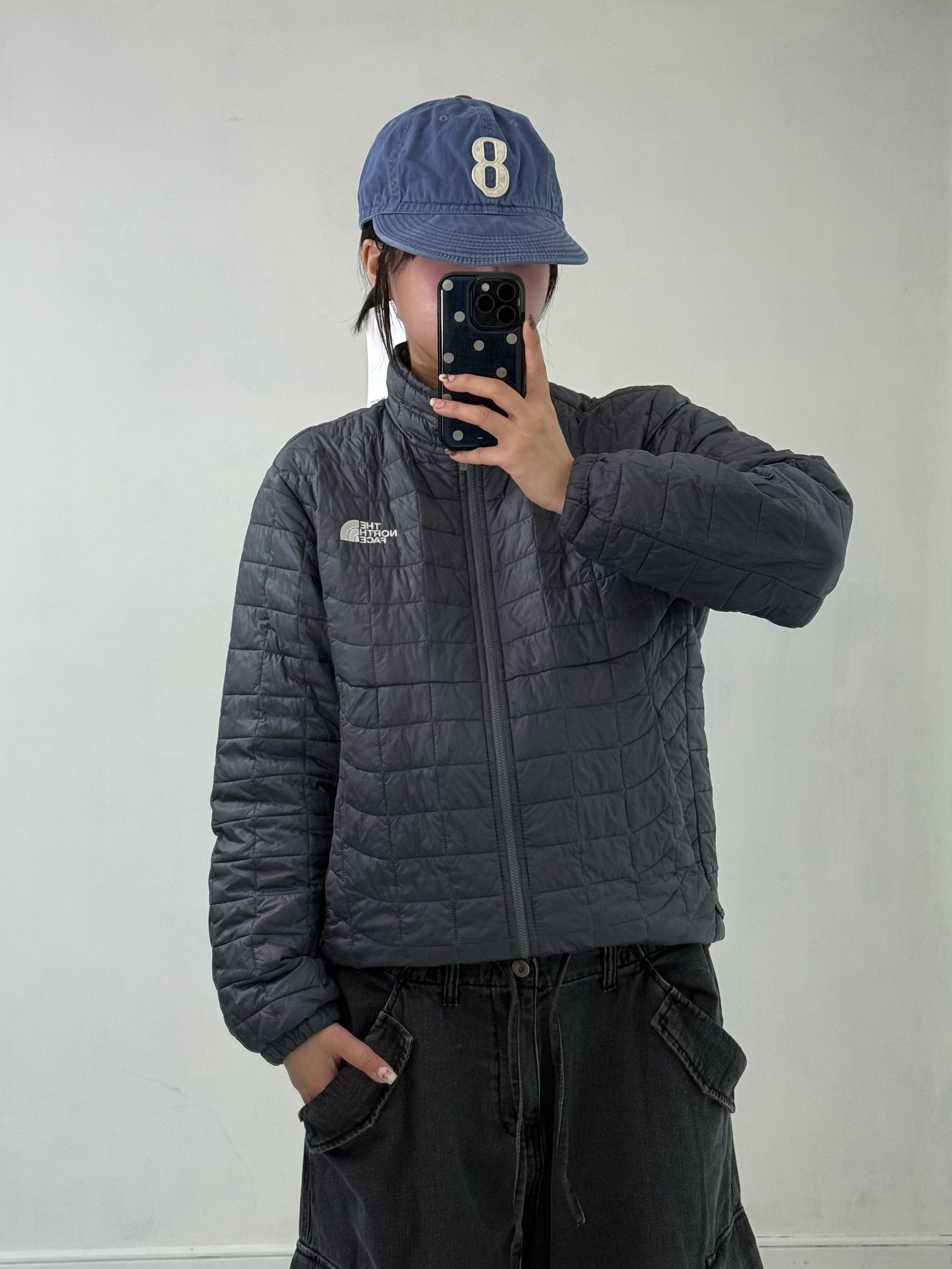 •노스페이스 써모볼 에코 경량패딩 입니다. 흔하지 않은 스퀘어 디자인이 귀여운 아이템이에요!