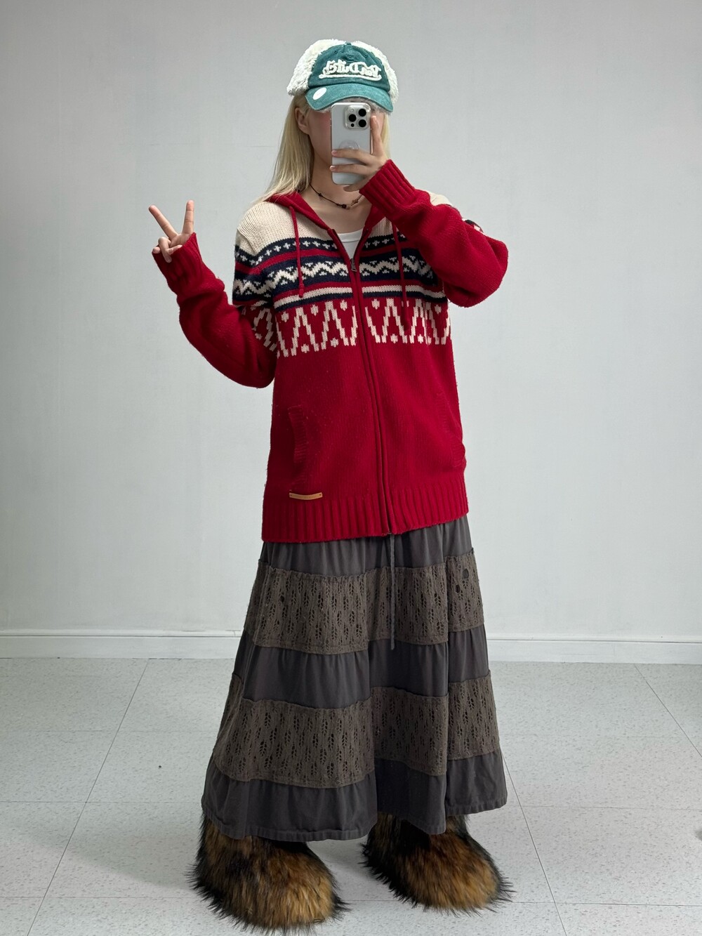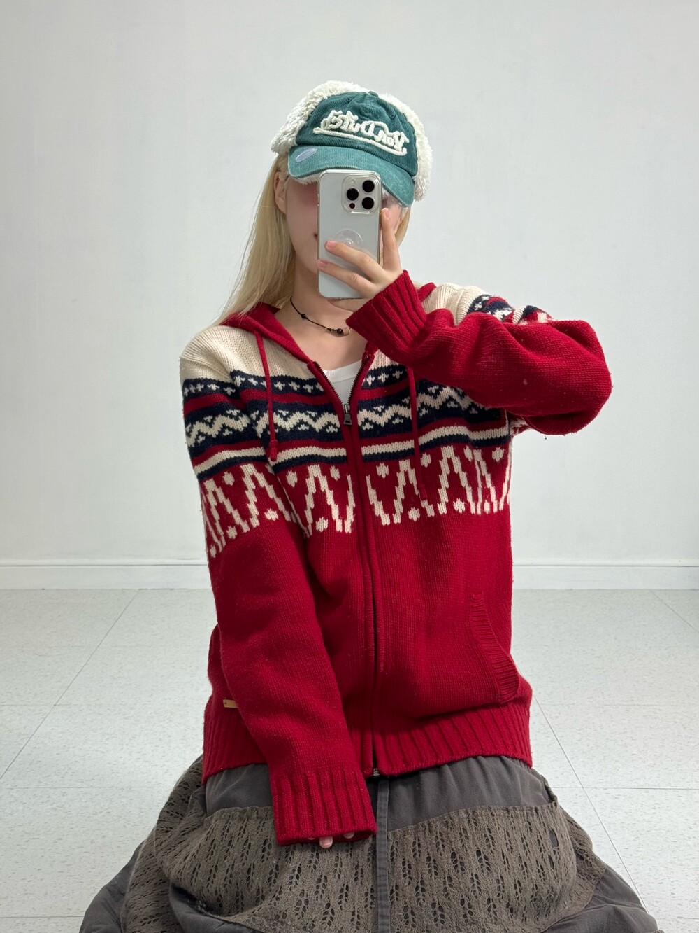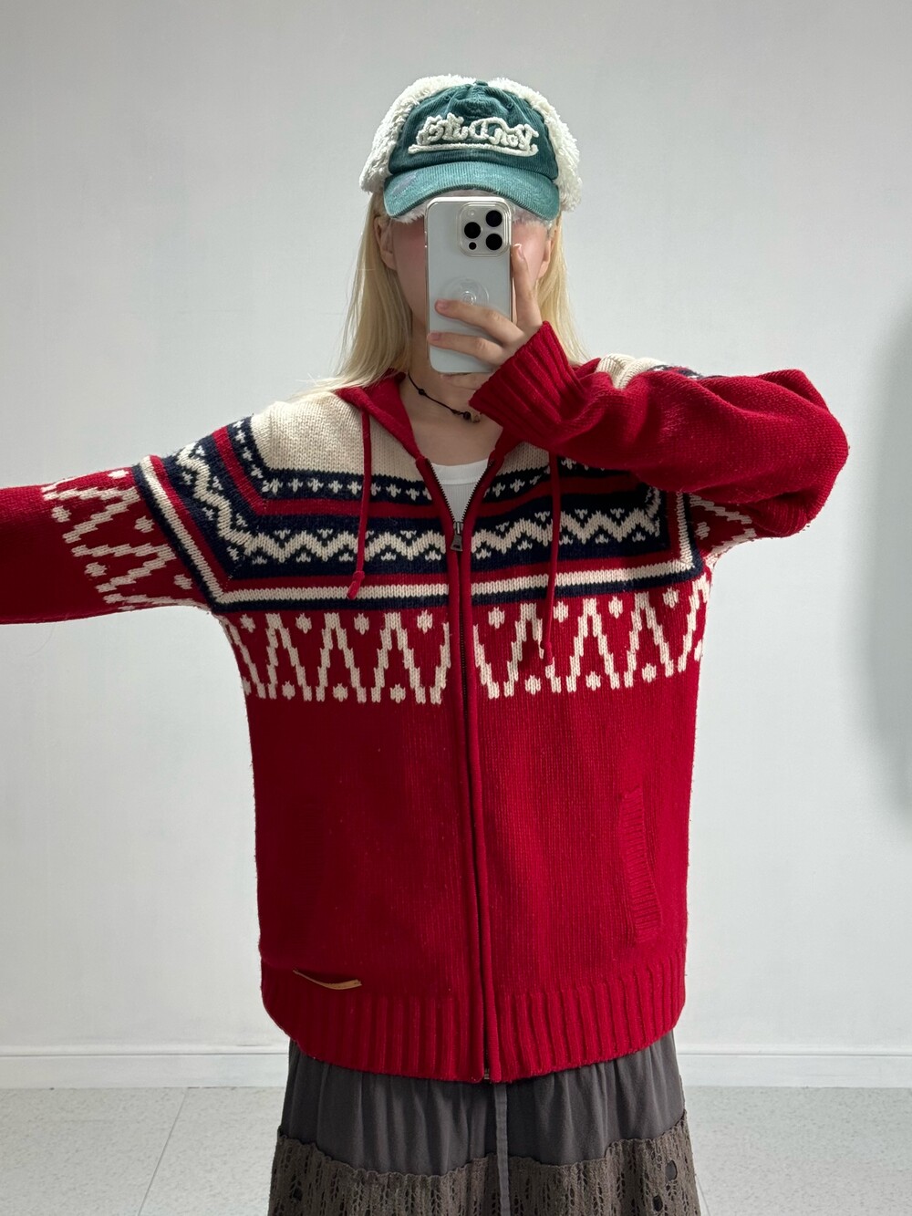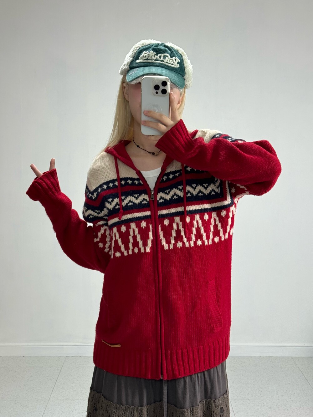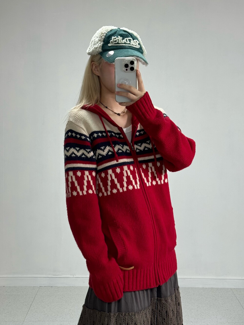 •노르딕 니트 후드집업이에요! 게스 제품이며 부드러운 원단이라 착용감도 좋고 핏감 도라방스 ㅠ