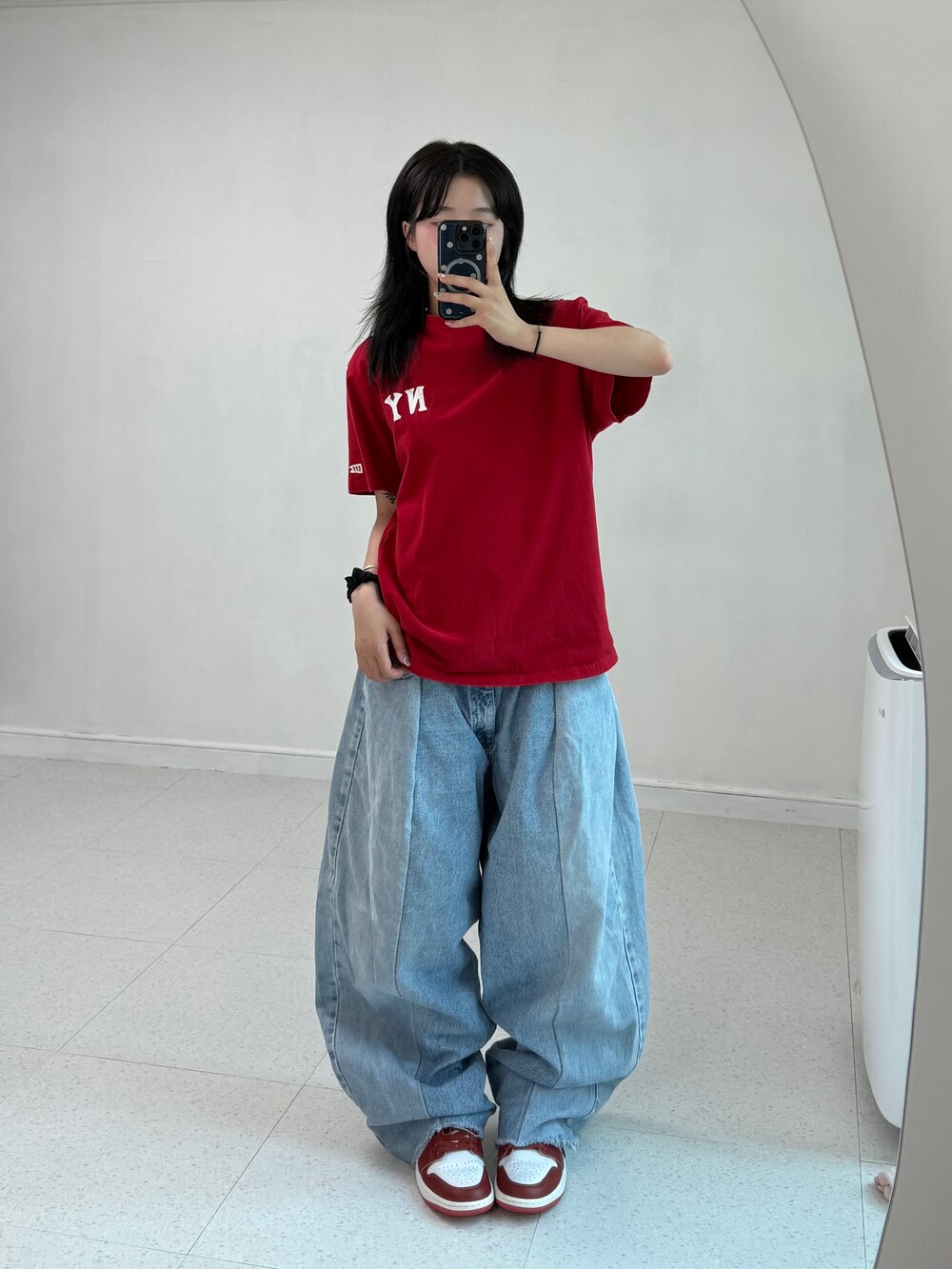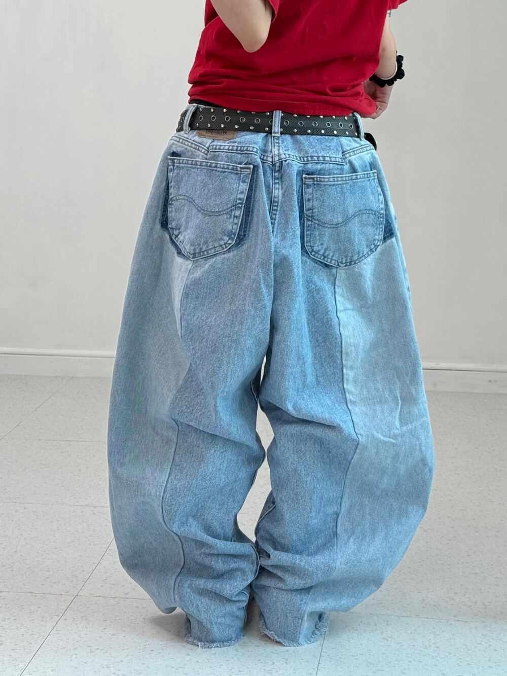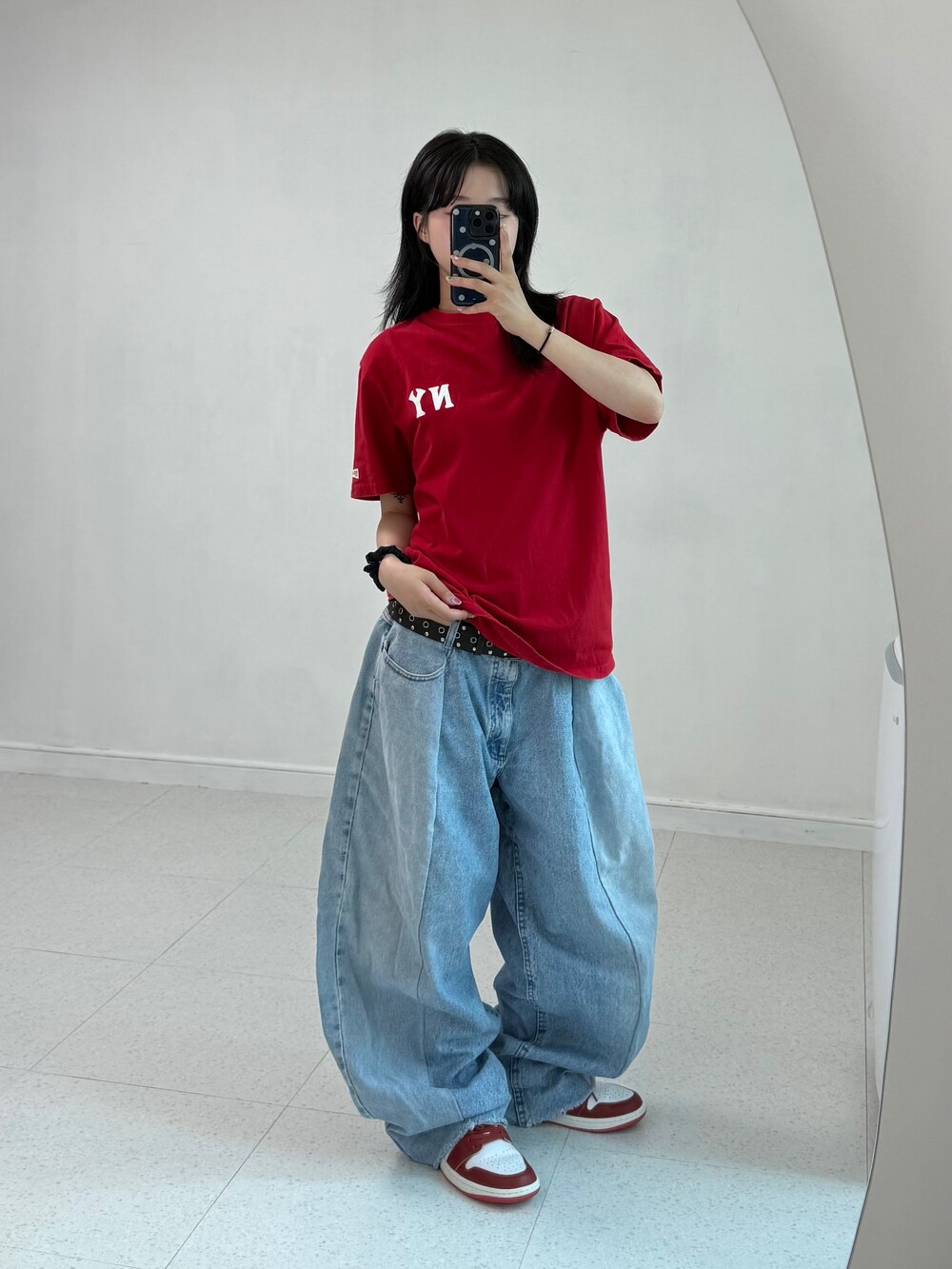 •랭글러 패치 디자인 연청벌룬팬츠 입니다! 펑퍼짐한 핏과 엉덩이가 너무 예쁜 아이템이에요..><