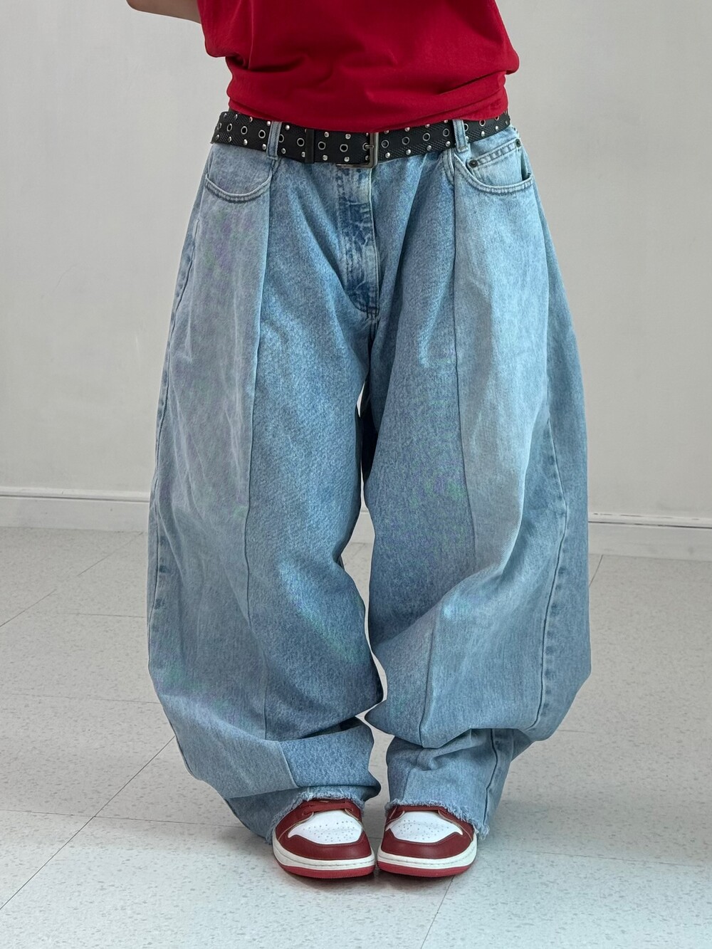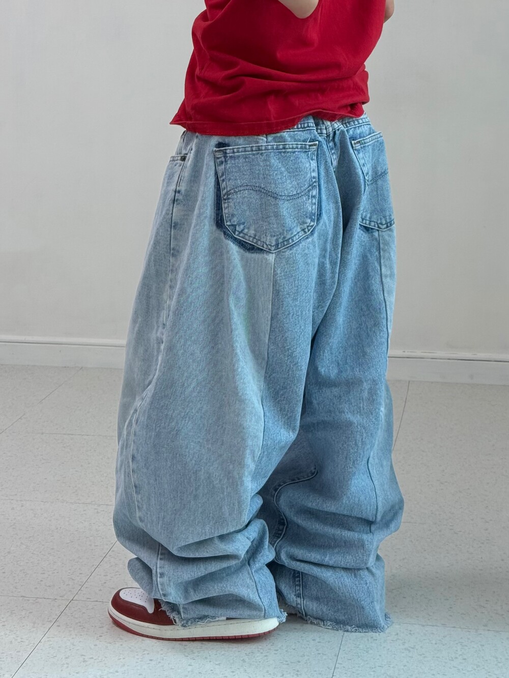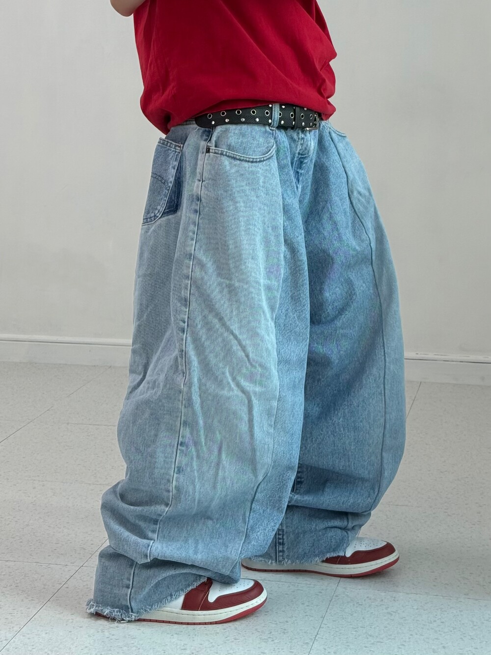 •랭글러 패치 디자인 연청벌룬팬츠 입니다! 펑퍼짐한 핏과 엉덩이가 너무 예쁜 아이템이에요..><