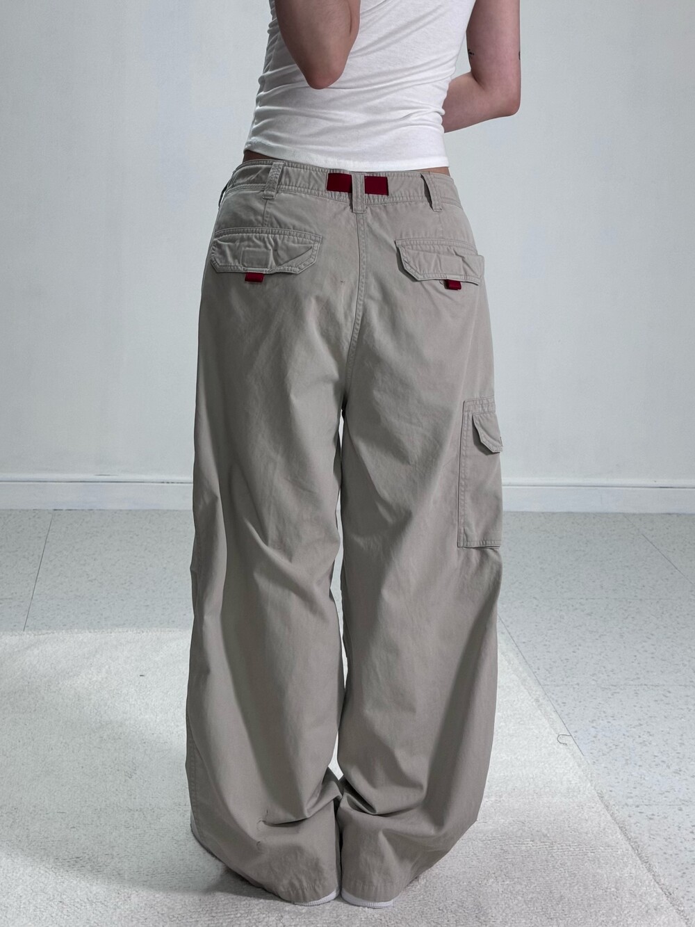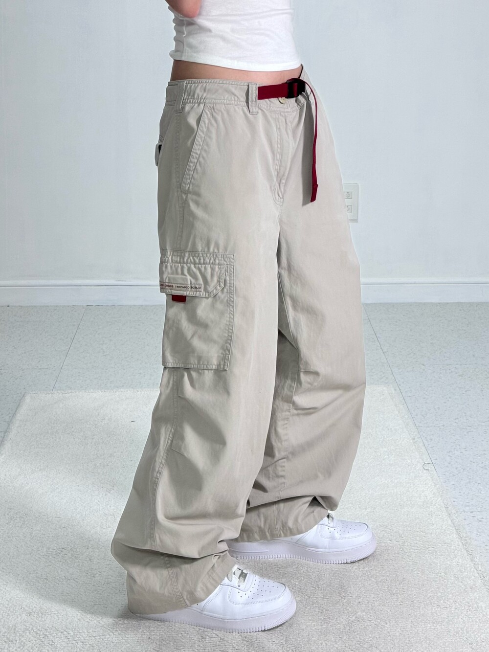 •살짝 톤다운된 아이보리 컬러감이라고 할까요? 마지막 착샷과 색상이 동일하니 참고해주시구요>,< 레드 벨트가 포인트로 들어가있어 귀엽게 착용하기 좋고 와이드 루즈핏이라 사이즈도 아주 좋은 데일리팬츠 입니다 ㅎㅎ